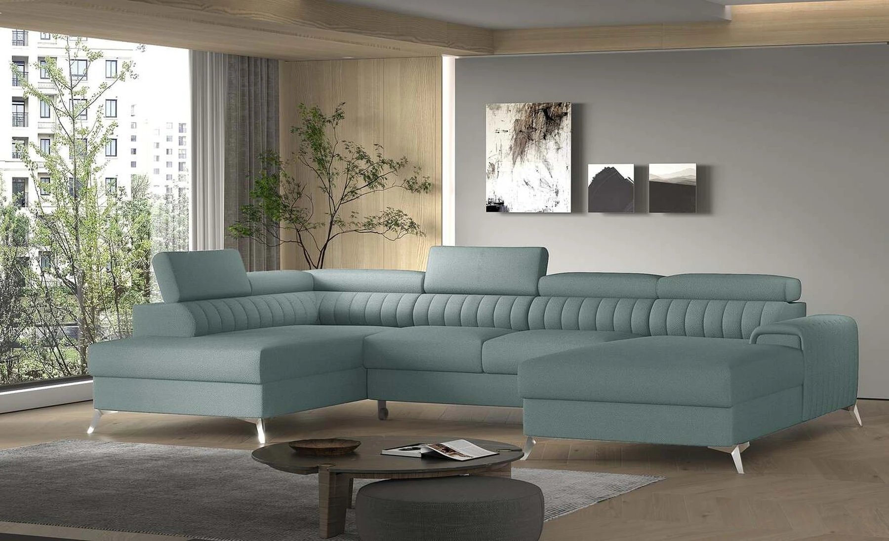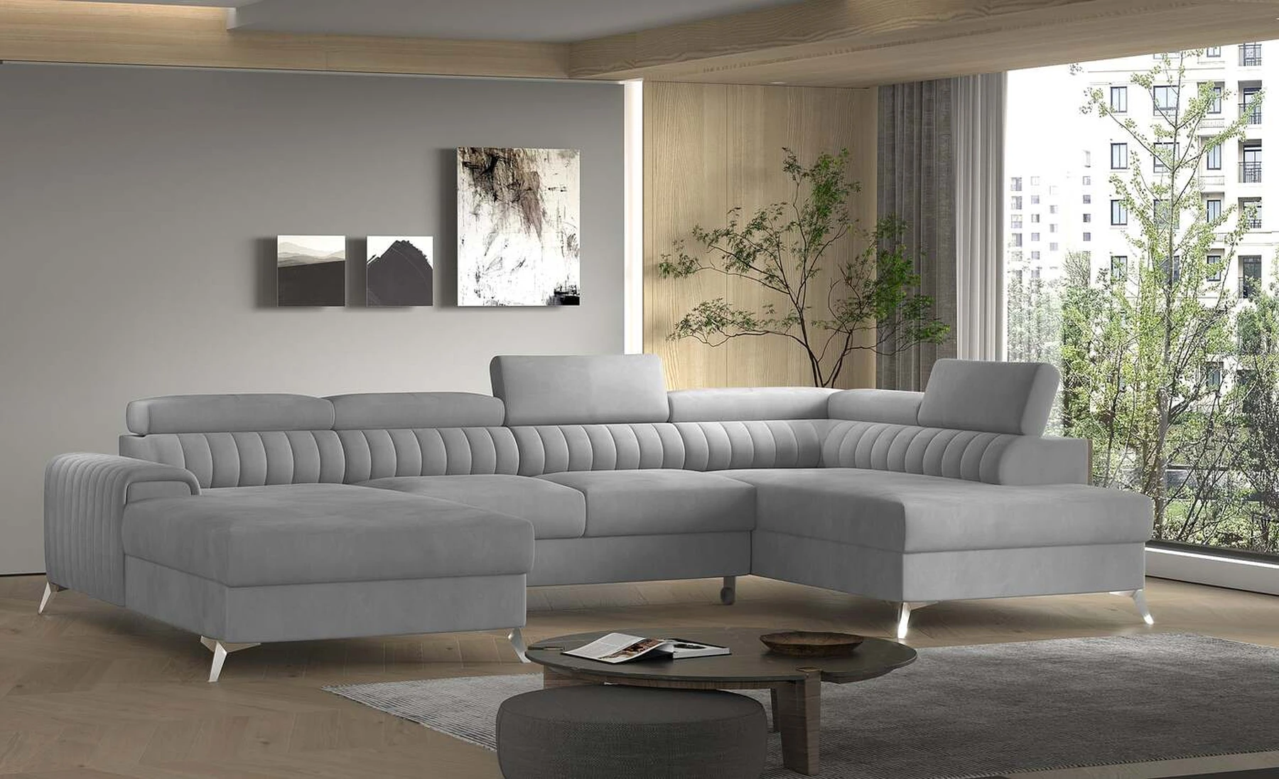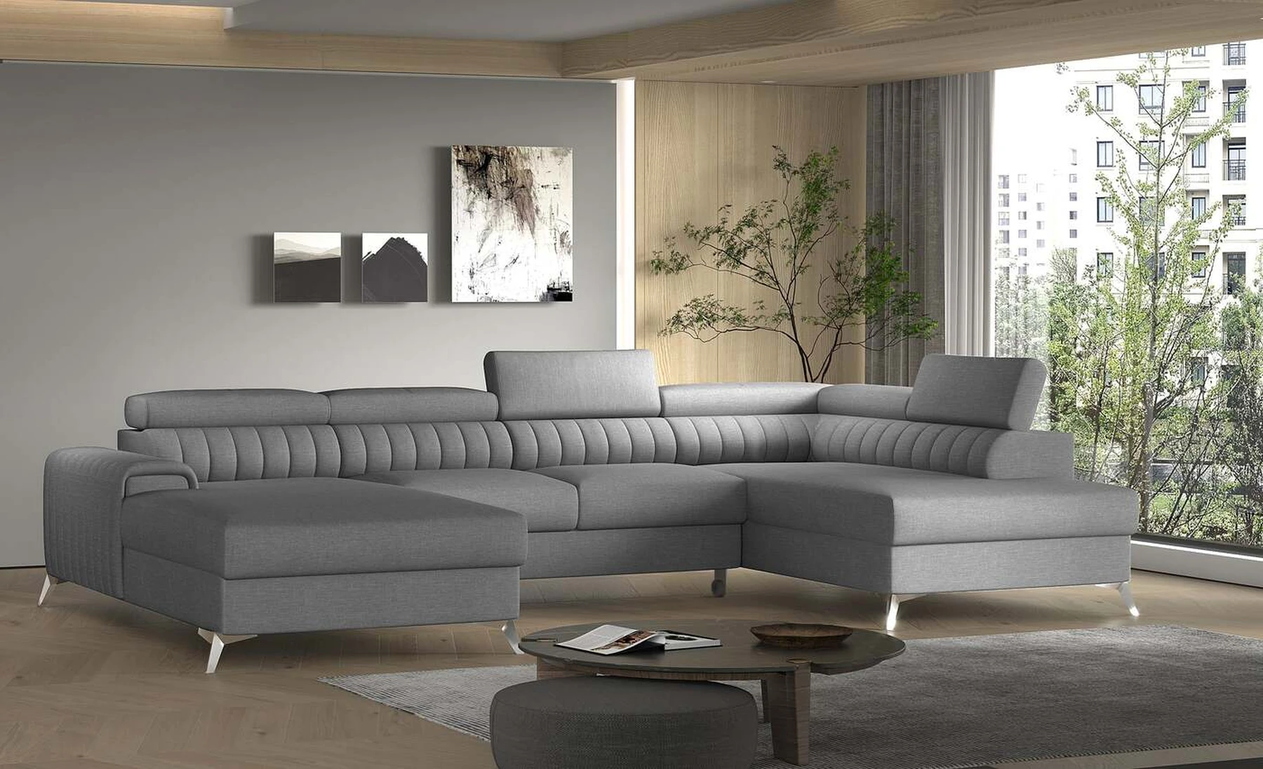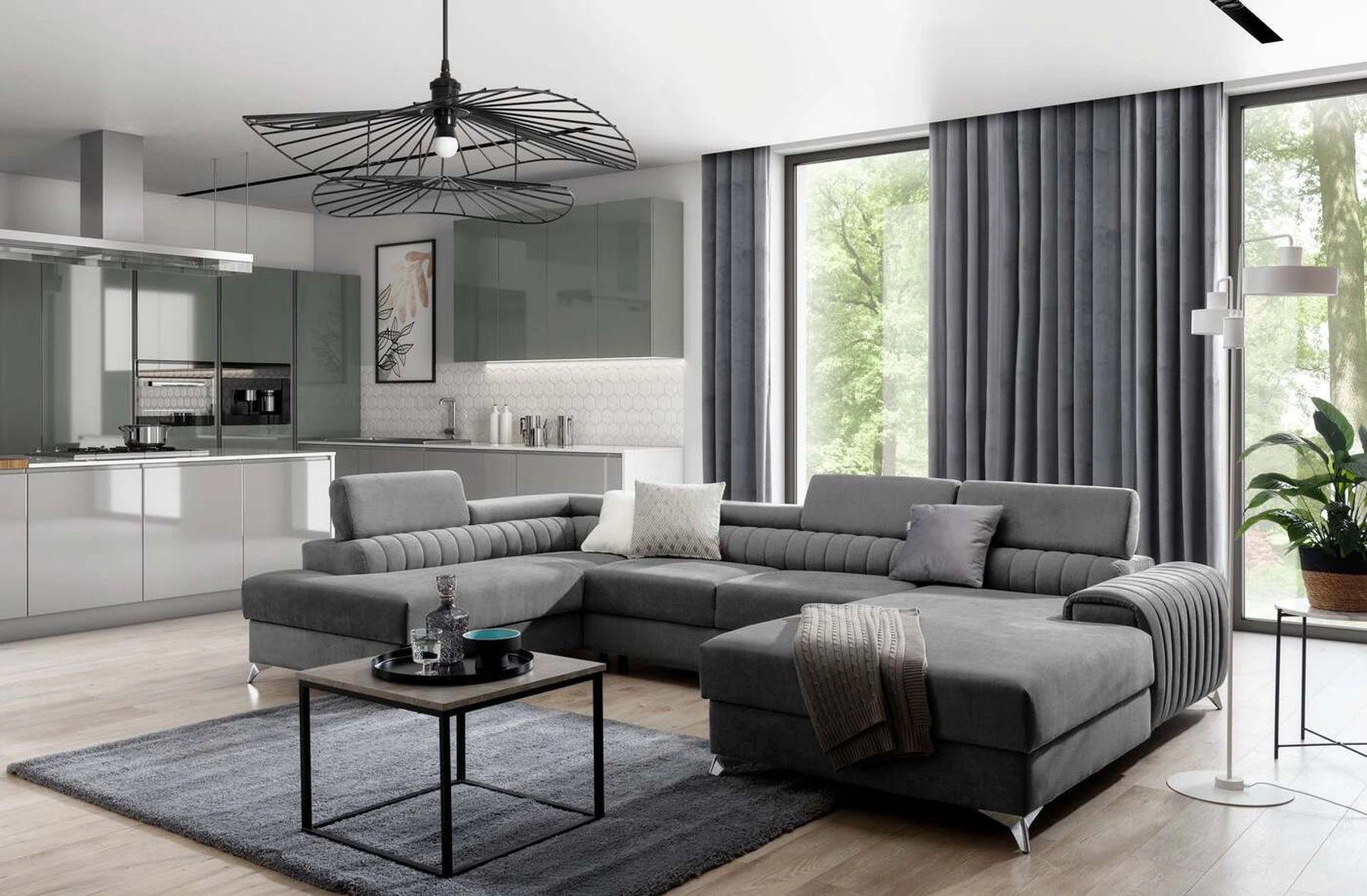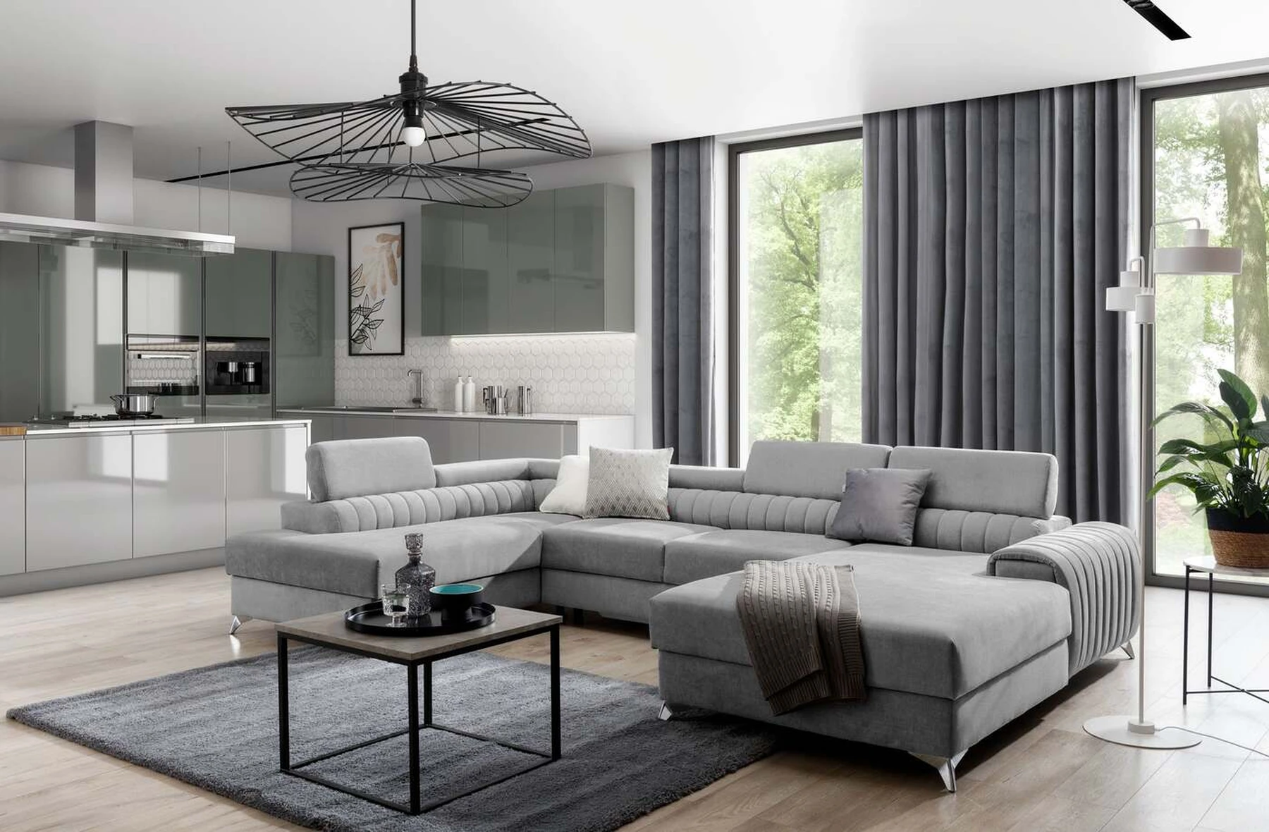 Kampinė sofa EL8964 kviečia atsipalaiduoti ir akimirką pailsėti, o tuo pačiu puikiai atrodo. Be to, jis pakelia modernią gyvenamąją erdvę savo įdomiu korpusu, taip pat dizainerių sukurtomis plieninėmis chromuotomis kojomis, kurių aukštis siekia 9 centimetrus. EL8964 taip pat galima rinktis iš jaukių apmušalų, o kaip minkštų baldų gamintojas naudojame tik aukščiausios kokybės audinius. Baldo sėdynė užpildyta HR ir T30 putų deriniu, kuris suteikia tikrą komfortą. Kampinėje sofoje EL8964 taip pat yra patalynės konteineris, kurio matmenys: 195 x 93 cm. Kampinės sofos privalumas yra ir miegamoji funkcija, kurios plotas 265 x 123 cm. Baldai gali išsiskleisti dėl įmontuoto delfino mechanizmo. Ši sistema pasižymi sklandumu ir naudojimo paprastumu, todėl nereikia daug jėgų, norint susidoroti su kampo pavertimu lova. Kampinės sofos sėdynė, pagaminta iš gofruoto spyruoklės ir itin elastingo HR porolono bei T30 putplasčio derinio, tikrai paskatins patogų poilsį. Nepamirškime ir modernių reguliuojamų galvos atramų. Jų dėka galėsite patogiai atsigulti ir ramiai pasikalbėti, paskaityti knygą ar žiūrėti televizorių. Kampinė sofa EL8964 puikiai tiks tradiciniuose, bet ir moderniuose namuose.