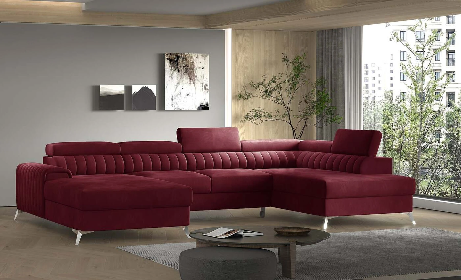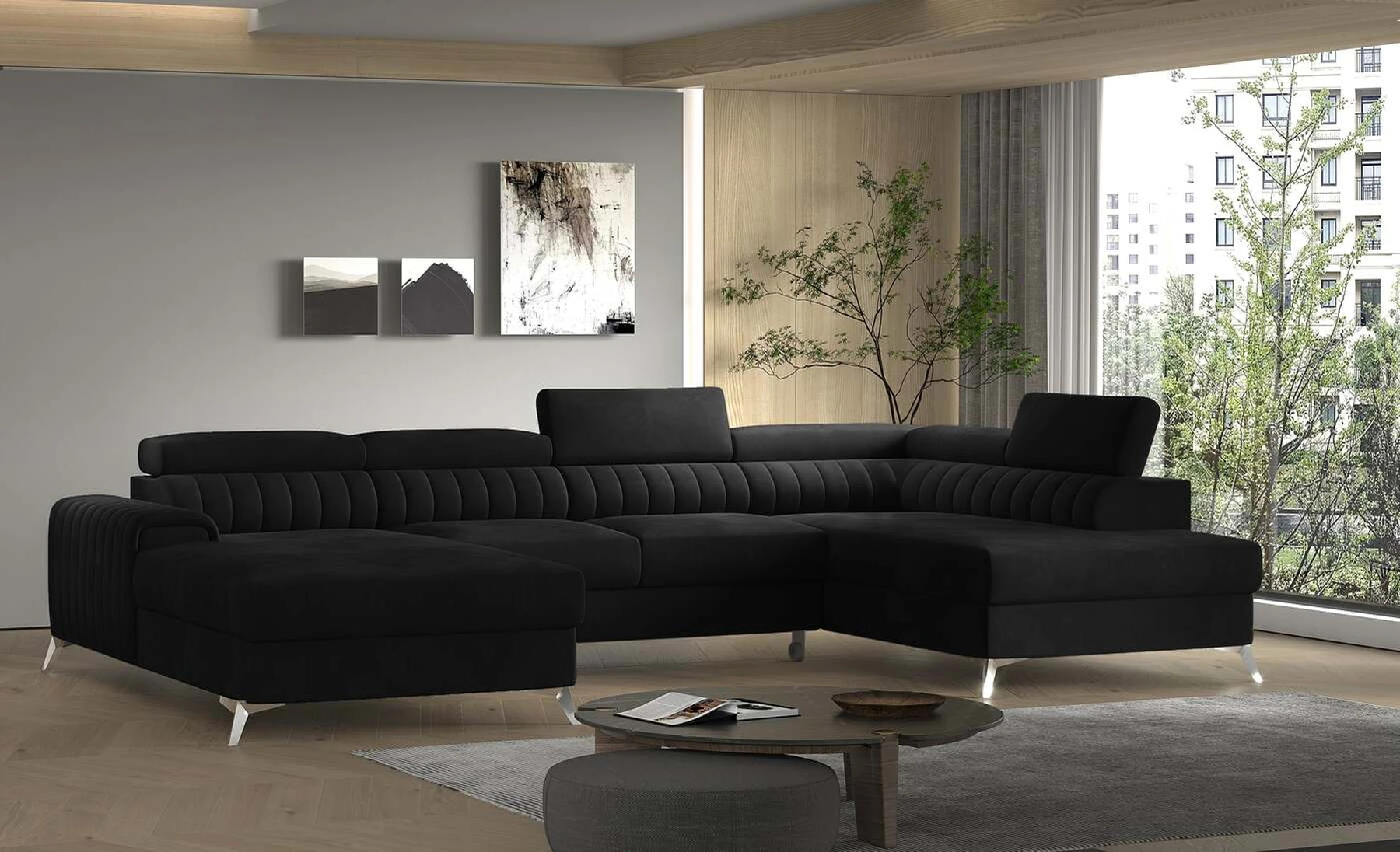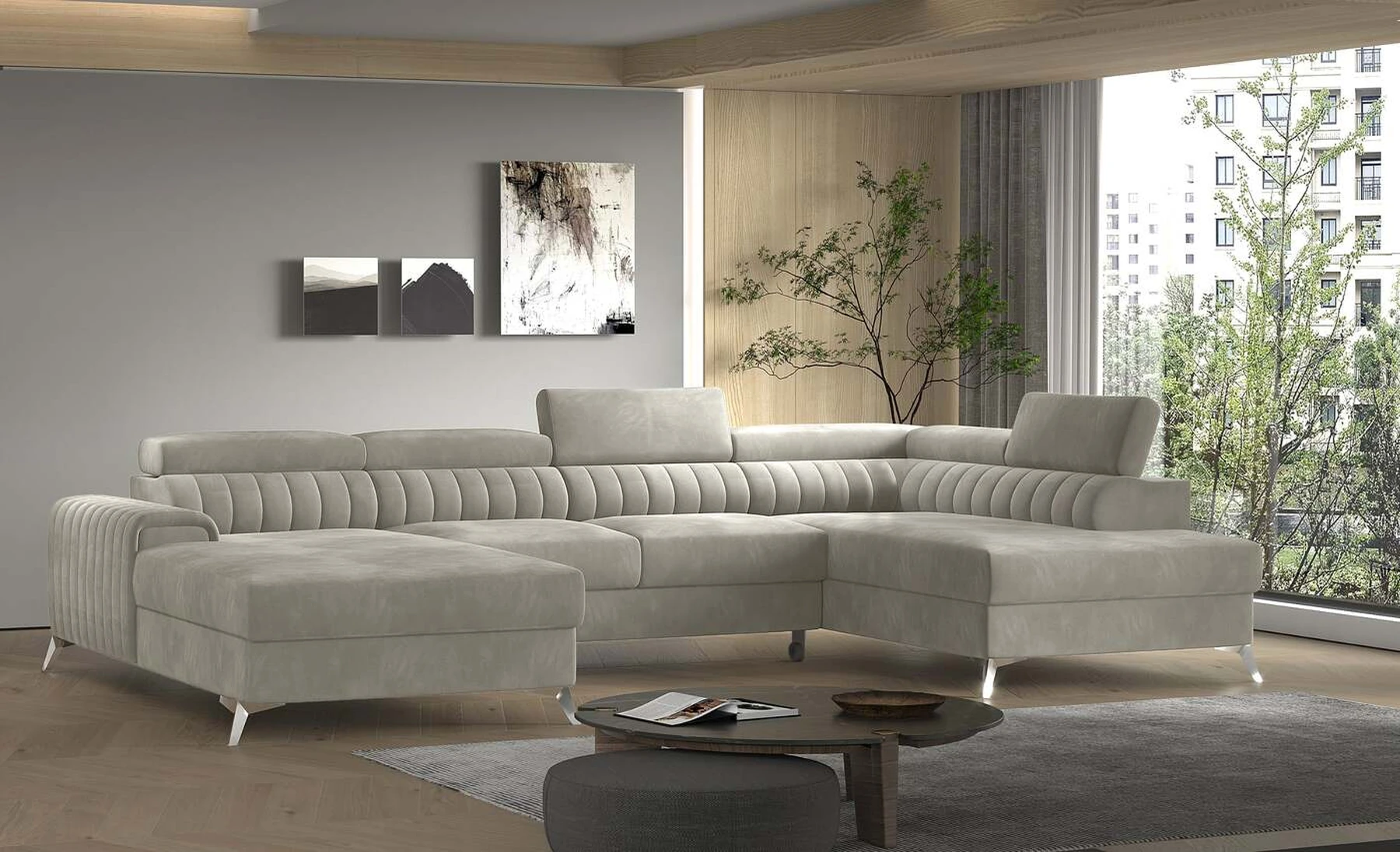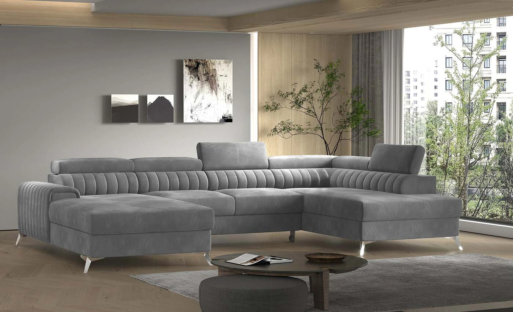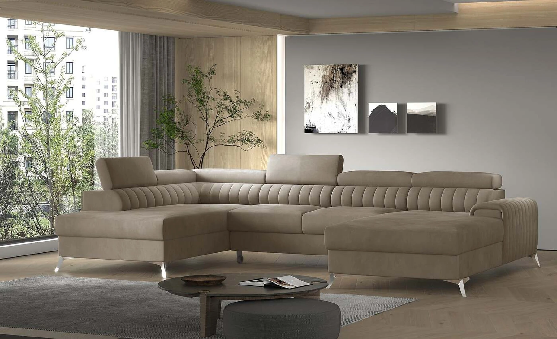 Kampinė sofa EL8964 kviečia atsipalaiduoti ir akimirką pailsėti, o tuo pačiu puikiai atrodo. Be to, jis pakelia modernią gyvenamąją erdvę savo įdomiu korpusu, taip pat dizainerių sukurtomis plieninėmis chromuotomis kojomis, kurių aukštis siekia 9 centimetrus. EL8964 taip pat galima rinktis iš jaukių apmušalų, o kaip minkštų baldų gamintojas naudojame tik aukščiausios kokybės audinius. Baldo sėdynė užpildyta HR ir T30 putų deriniu, kuris suteikia tikrą komfortą. Kampinėje sofoje EL8964 taip pat yra patalynės konteineris, kurio matmenys: 195 x 93 cm. Kampinės sofos privalumas yra ir miegamoji funkcija, kurios plotas 265 x 123 cm. Baldai gali išsiskleisti dėl įmontuoto delfino mechanizmo. Ši sistema pasižymi sklandumu ir naudojimo paprastumu, todėl nereikia daug jėgų, norint susidoroti su kampo pavertimu lova. Kampinės sofos sėdynė, pagaminta iš gofruoto spyruoklės ir itin elastingo HR porolono bei T30 putplasčio derinio, tikrai paskatins patogų poilsį. Nepamirškime ir modernių reguliuojamų galvos atramų. Jų dėka galėsite patogiai atsigulti ir ramiai pasikalbėti, paskaityti knygą ar žiūrėti televizorių. Kampinė sofa EL8964 puikiai tiks tradiciniuose, bet ir moderniuose namuose.