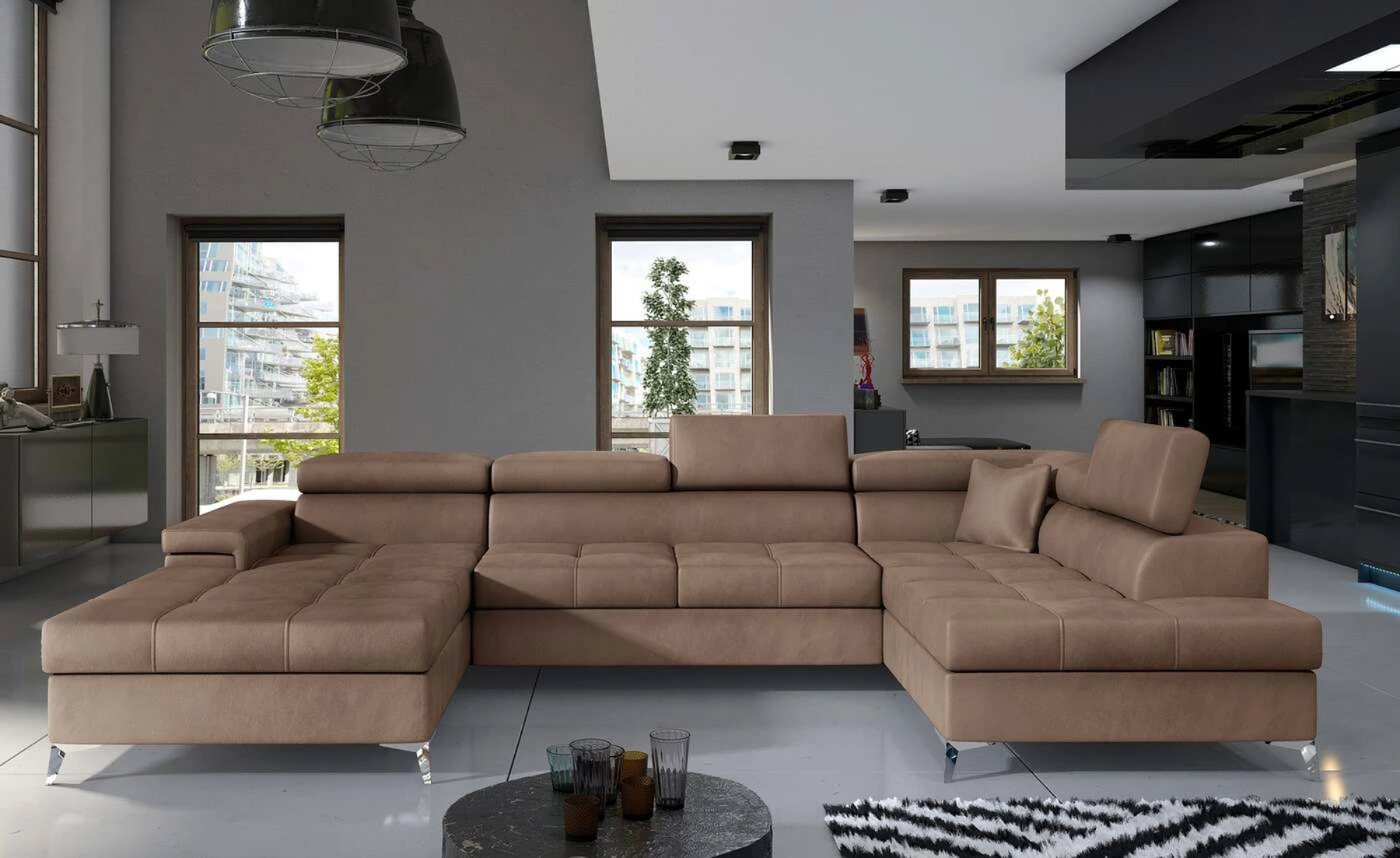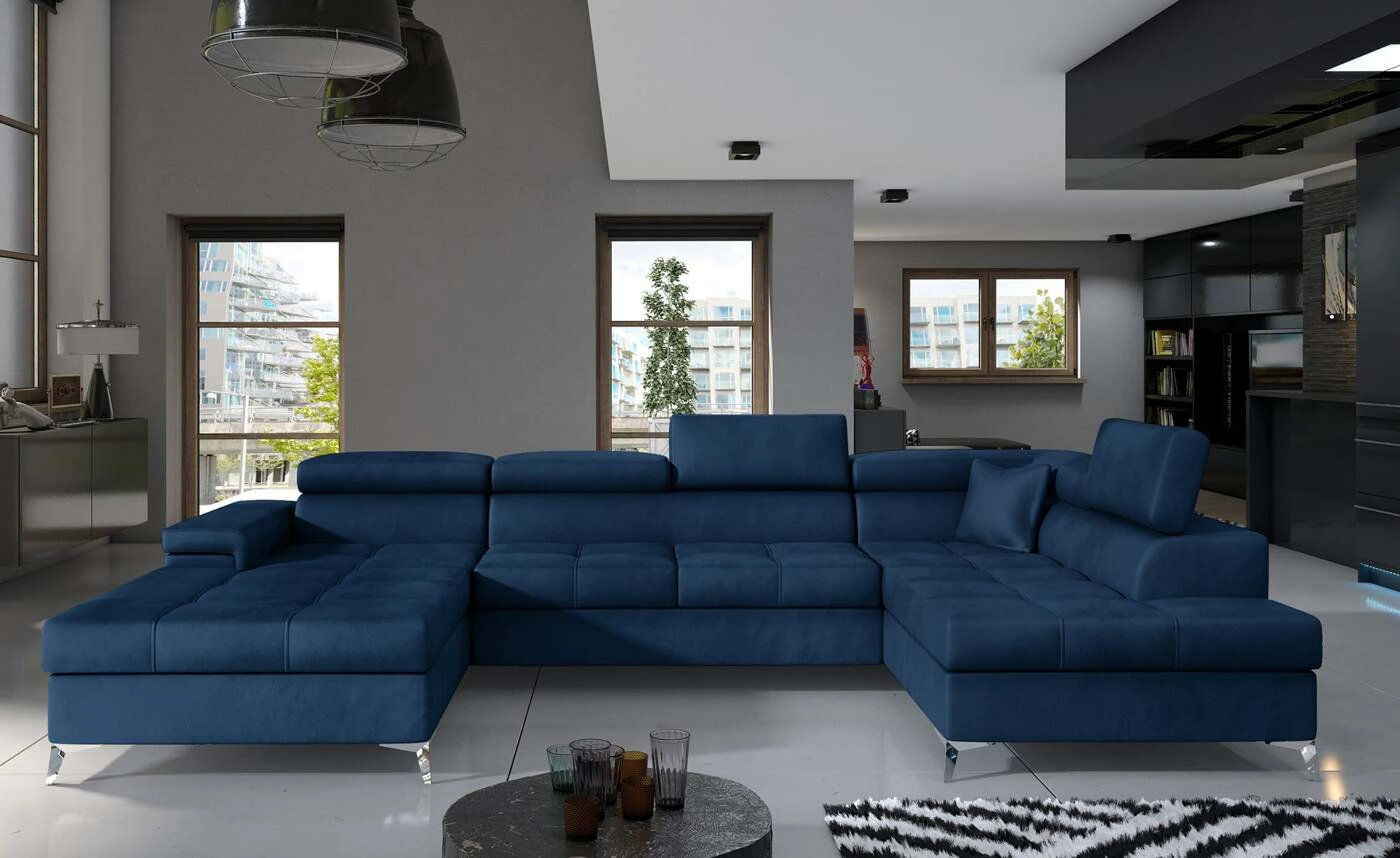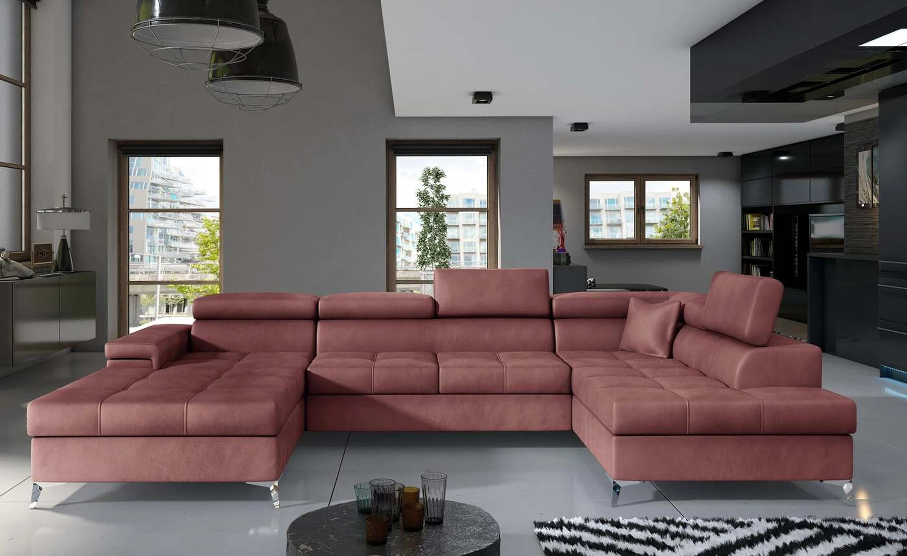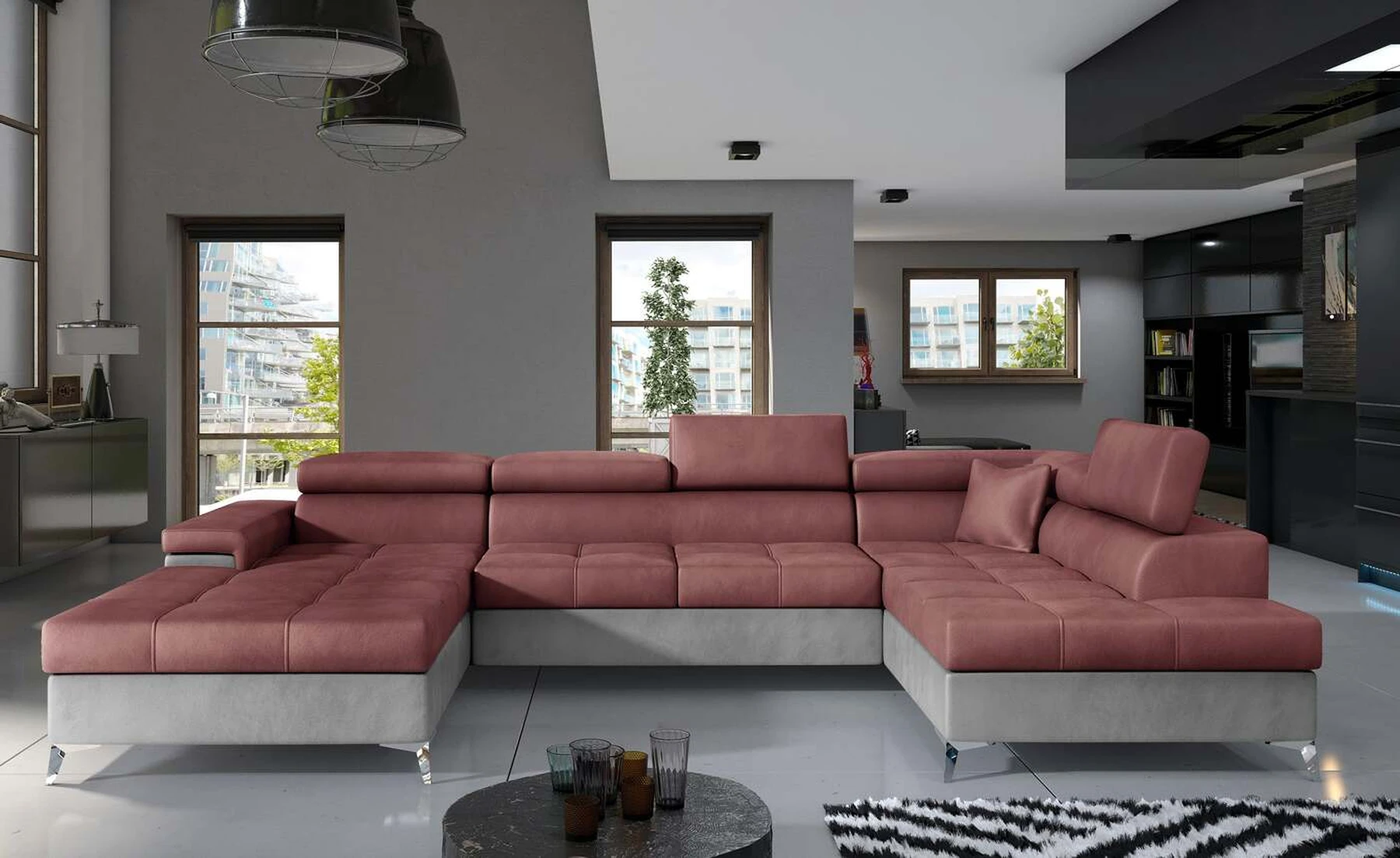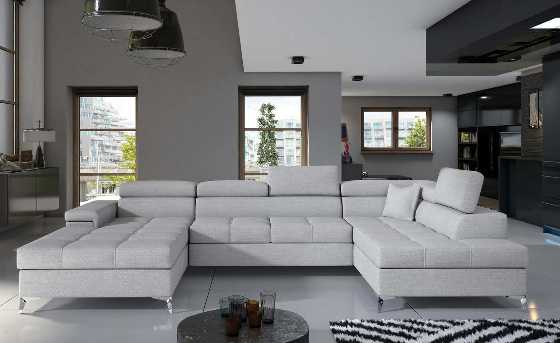 EL9086 – tai originali skoninga ir išskirtinai minkšta kampinė sofa, kuri įneša gaivumo ir prabangos dvelksmo interjerui, kuriame ji yra. Baldas, kurio išmatavimai 345 x 202 x 90 cm, garantuoja maksimalų komfortą dienos poilsiui, taip pat poilsiui naktį, nes yra įrengta miegojimo funkcija su tam skirta zona - 125 x 265 cm. Čia taip pat išryškėja delfinų mechanizmas, kuris intuityviai ir be vargo išskleidžia baldus į norimą padėtį. Tarp kitų patogumų galime įtraukti ir erdvų patalynės konteinerį, esantį pufoje, bei patogią sėdynę iš HR porolono, kuri geriausiai prisitaiko prie mūsų kūno miego metu. Kitos unikalios kampinės sofos savybės: reguliuojamos galvos atramos, platūs porankiai ir aukštos metalinės kojos. Kampinę sofą EL9086 galima įsigyti iš visų audinių iš raštų knygelės, kuri leidžia labai individualiai susidėlioti interjerą.