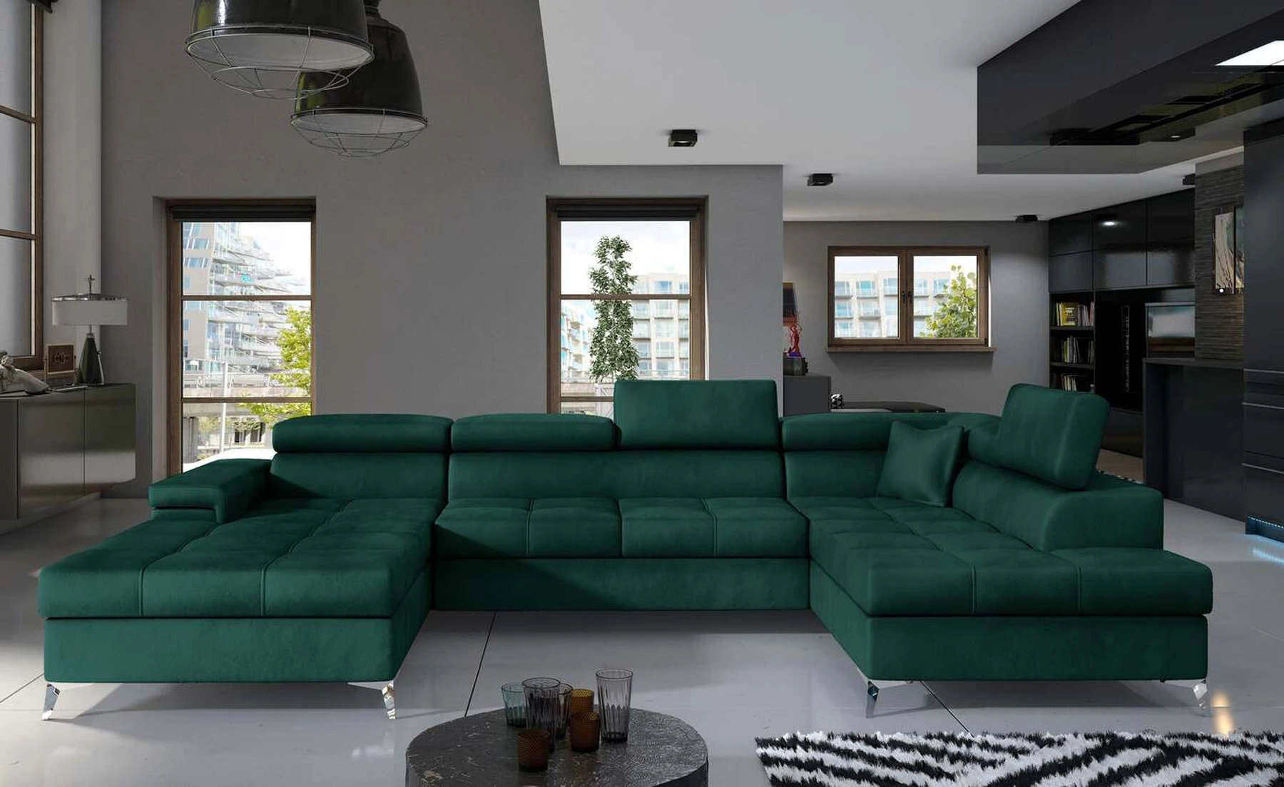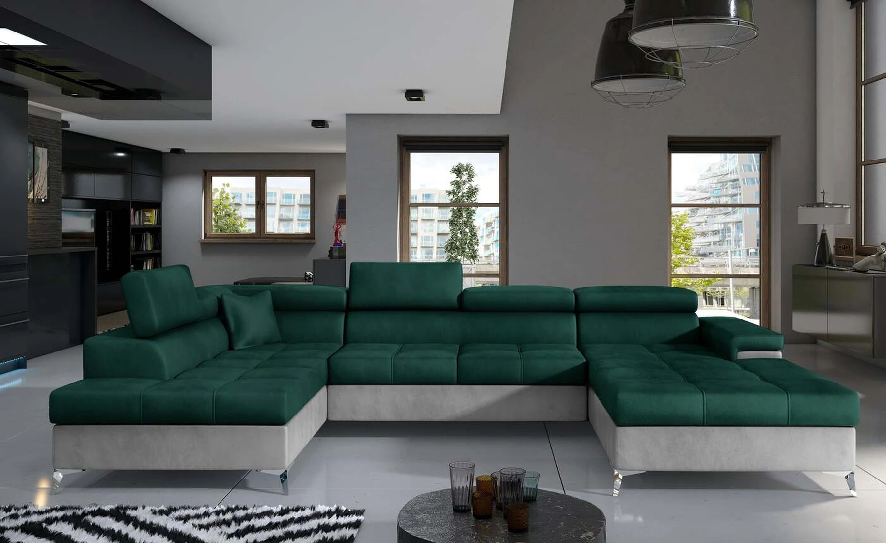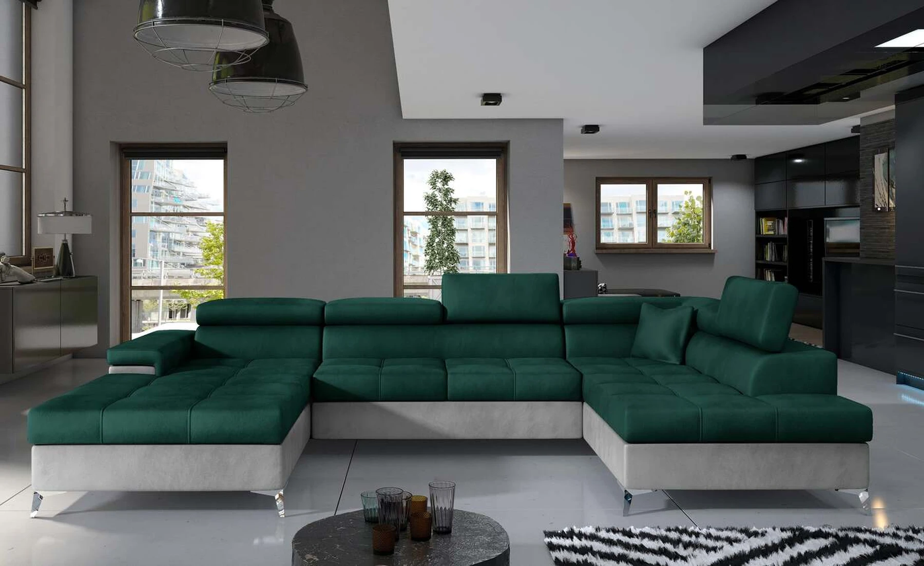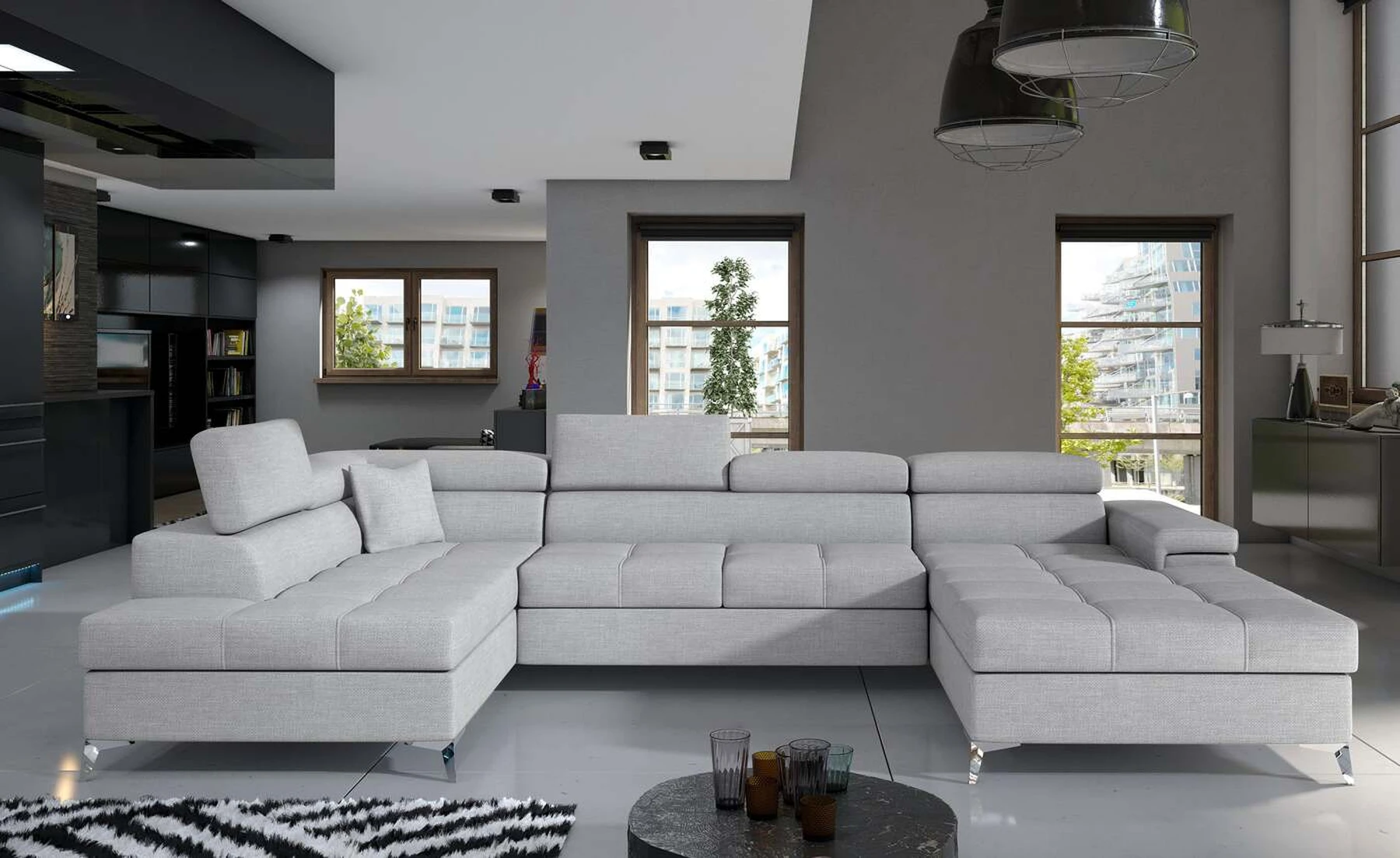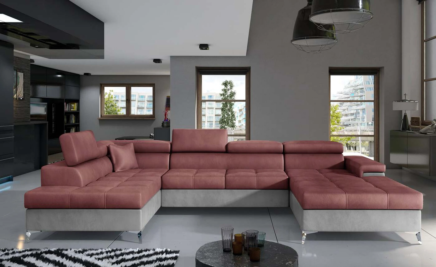 EL9086 – tai originali skoninga ir išskirtinai minkšta kampinė sofa, kuri įneša gaivumo ir prabangos dvelksmo interjerui, kuriame ji yra. Baldas, kurio išmatavimai 345 x 202 x 90 cm, garantuoja maksimalų komfortą dienos poilsiui, taip pat poilsiui naktį, nes yra įrengta miegojimo funkcija su tam skirta zona - 125 x 265 cm. Čia taip pat išryškėja delfinų mechanizmas, kuris intuityviai ir be vargo išskleidžia baldus į norimą padėtį. Tarp kitų patogumų galime įtraukti ir erdvų patalynės konteinerį, esantį pufoje, bei patogią sėdynę iš HR porolono, kuri geriausiai prisitaiko prie mūsų kūno miego metu. Kitos unikalios kampinės sofos savybės: reguliuojamos galvos atramos, platūs porankiai ir aukštos metalinės kojos. Kampinę sofą EL9086 galima įsigyti iš visų audinių iš raštų knygelės, kuri leidžia labai individualiai susidėlioti interjerą.