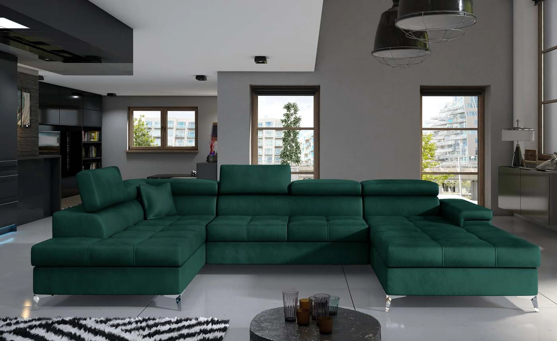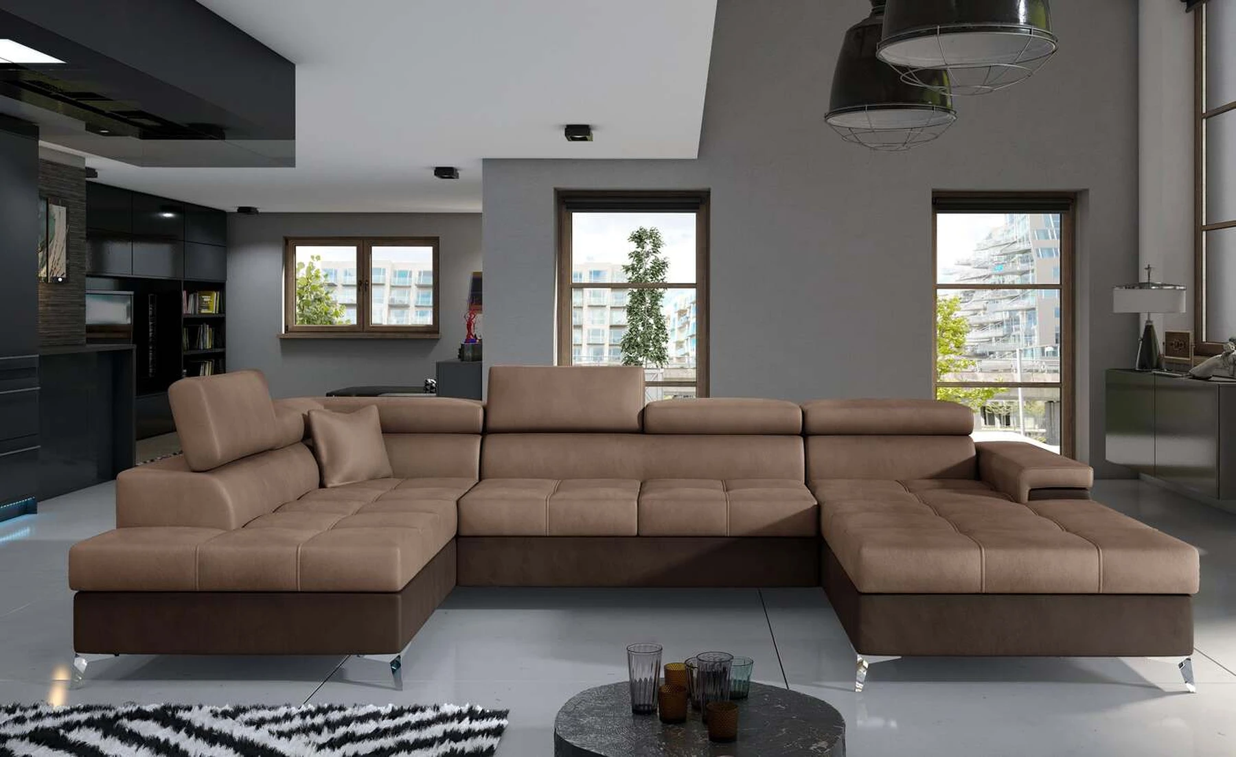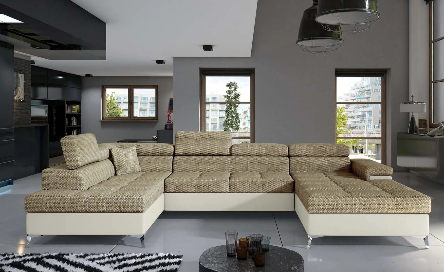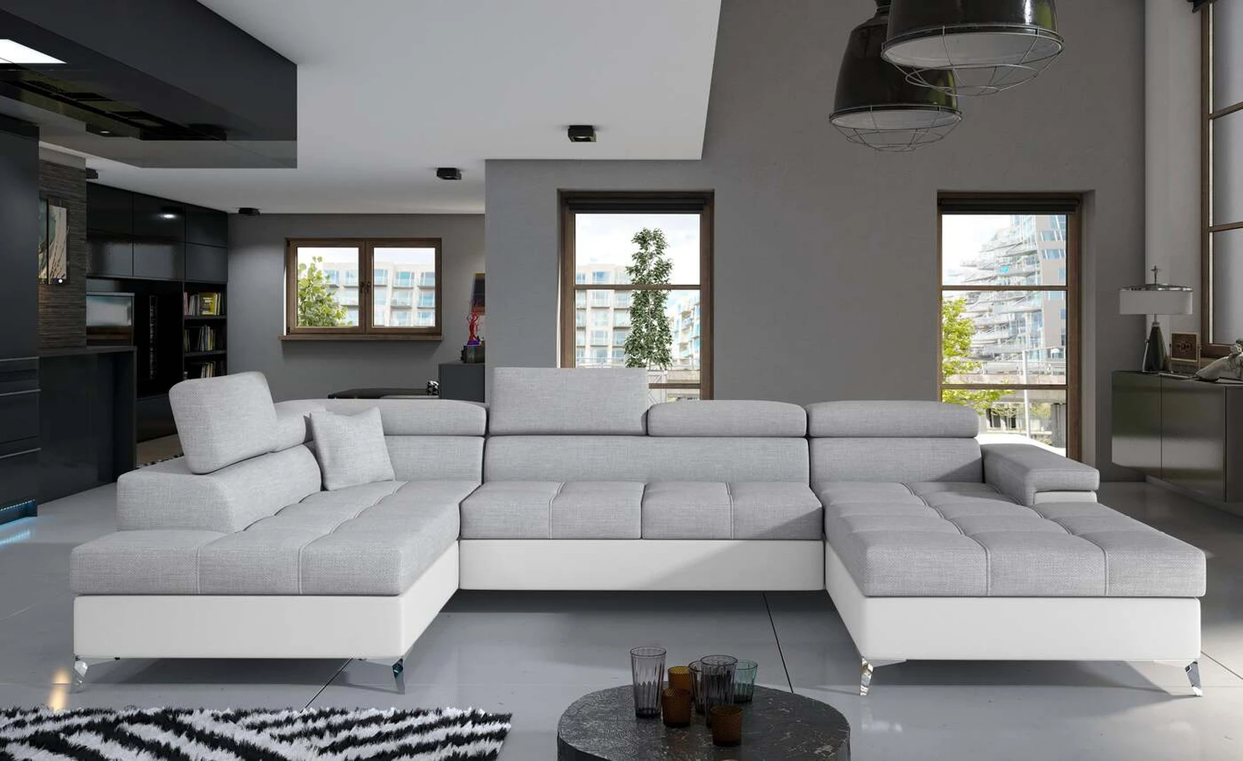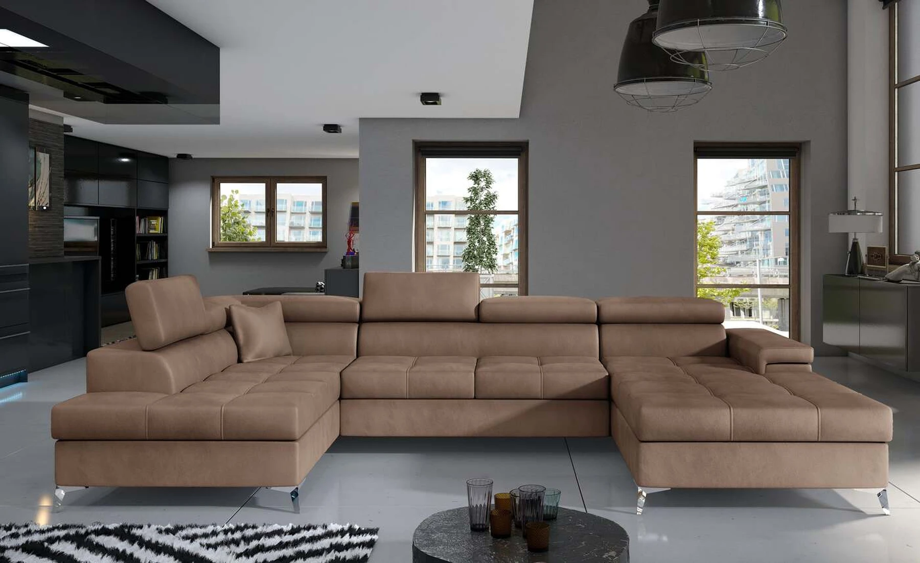 EL9086 – tai originali skoninga ir išskirtinai minkšta kampinė sofa, kuri įneša gaivumo ir prabangos dvelksmo interjerui, kuriame ji yra. Baldas, kurio išmatavimai 345 x 202 x 90 cm, garantuoja maksimalų komfortą dienos poilsiui, taip pat poilsiui naktį, nes yra įrengta miegojimo funkcija su tam skirta zona - 125 x 265 cm. Čia taip pat išryškėja delfinų mechanizmas, kuris intuityviai ir be vargo išskleidžia baldus į norimą padėtį. Tarp kitų patogumų galime įtraukti ir erdvų patalynės konteinerį, esantį pufoje, bei patogią sėdynę iš HR porolono, kuri geriausiai prisitaiko prie mūsų kūno miego metu. Kitos unikalios kampinės sofos savybės: reguliuojamos galvos atramos, platūs porankiai ir aukštos metalinės kojos. Kampinę sofą EL9086 galima įsigyti iš visų audinių iš raštų knygelės, kuri leidžia labai individualiai susidėlioti interjerą.