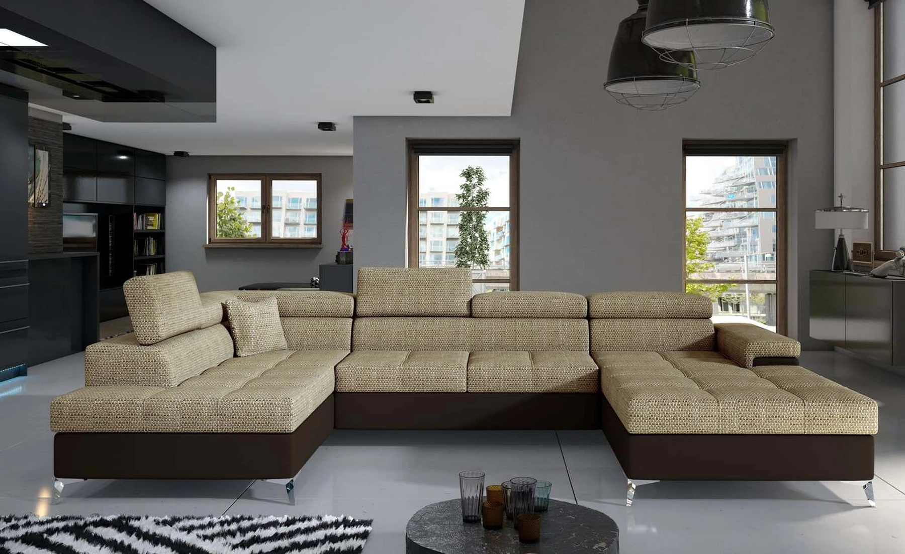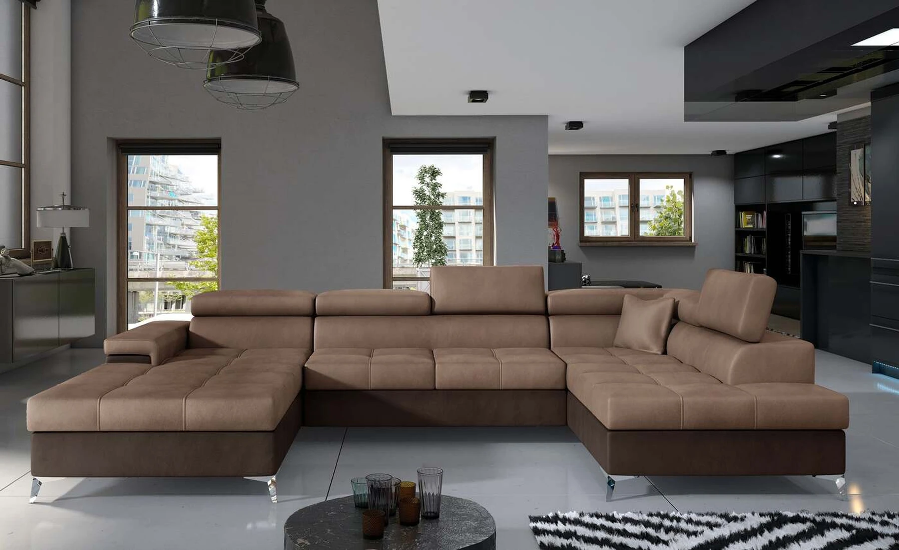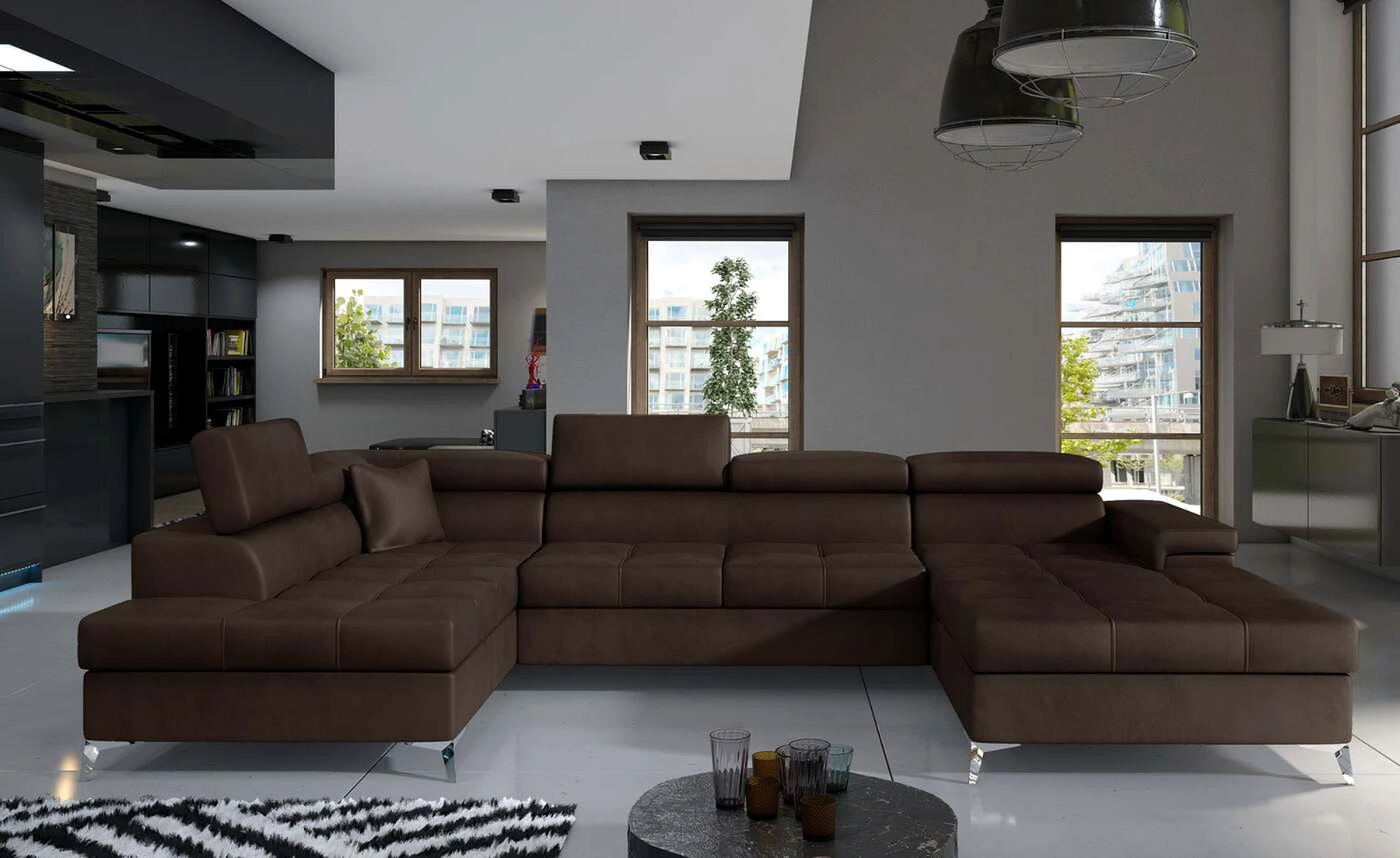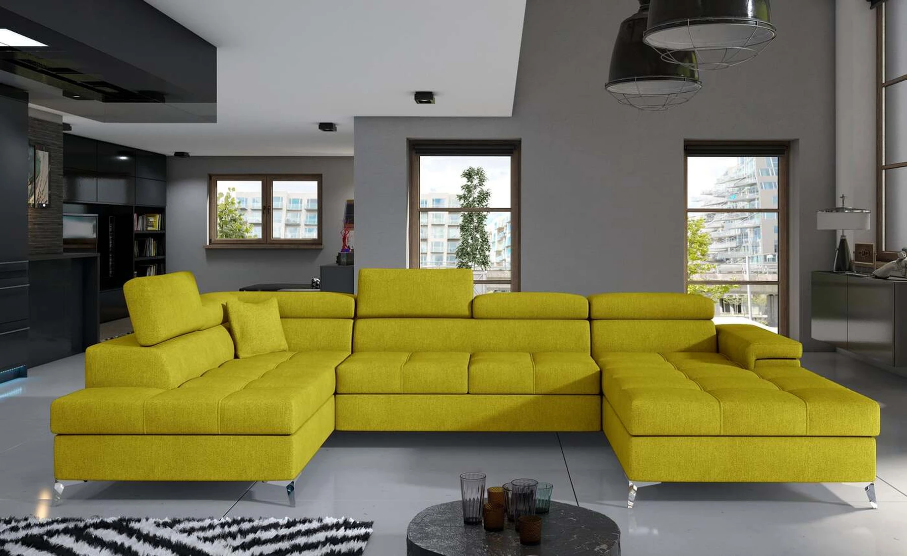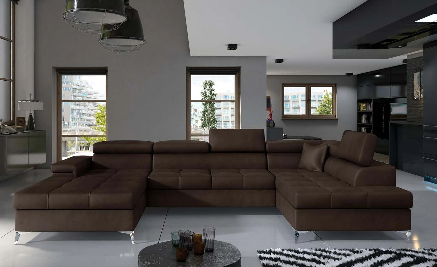 EL9086 – tai originali skoninga ir išskirtinai minkšta kampinė sofa, kuri įneša gaivumo ir prabangos dvelksmo interjerui, kuriame ji yra. Baldas, kurio išmatavimai 345 x 202 x 90 cm, garantuoja maksimalų komfortą dienos poilsiui, taip pat poilsiui naktį, nes yra įrengta miegojimo funkcija su tam skirta zona - 125 x 265 cm. Čia taip pat išryškėja delfinų mechanizmas, kuris intuityviai ir be vargo išskleidžia baldus į norimą padėtį. Tarp kitų patogumų galime įtraukti ir erdvų patalynės konteinerį, esantį pufoje, bei patogią sėdynę iš HR porolono, kuri geriausiai prisitaiko prie mūsų kūno miego metu. Kitos unikalios kampinės sofos savybės: reguliuojamos galvos atramos, platūs porankiai ir aukštos metalinės kojos. Kampinę sofą EL9086 galima įsigyti iš visų audinių iš raštų knygelės, kuri leidžia labai individualiai susidėlioti interjerą.