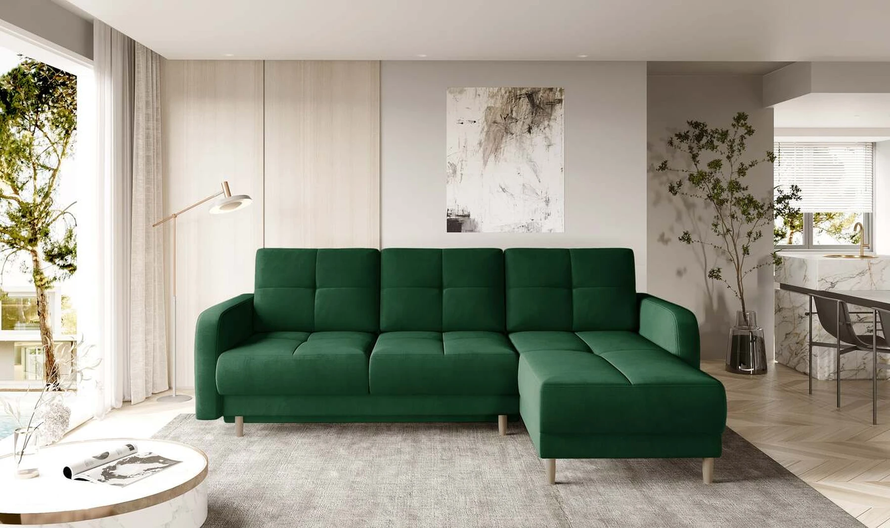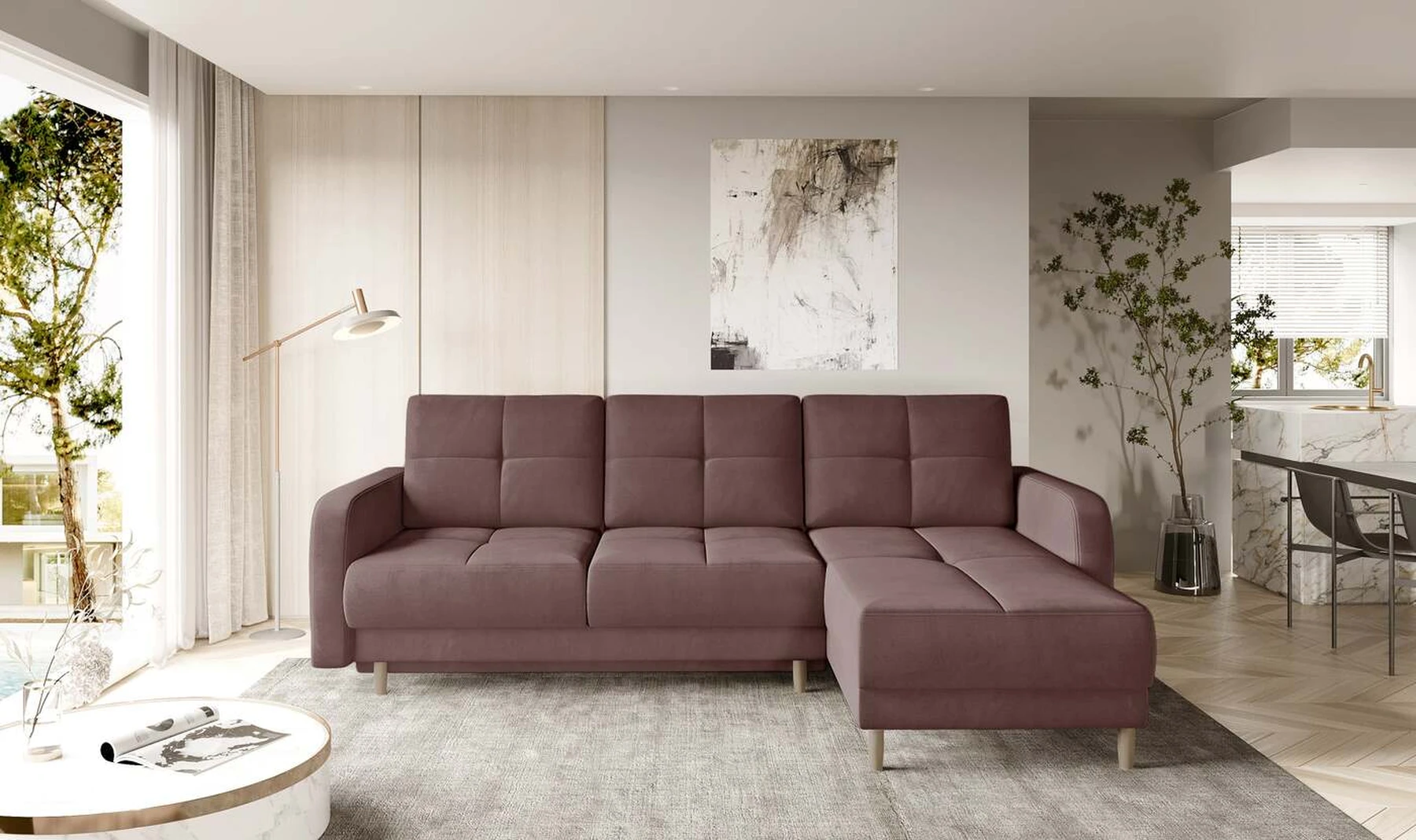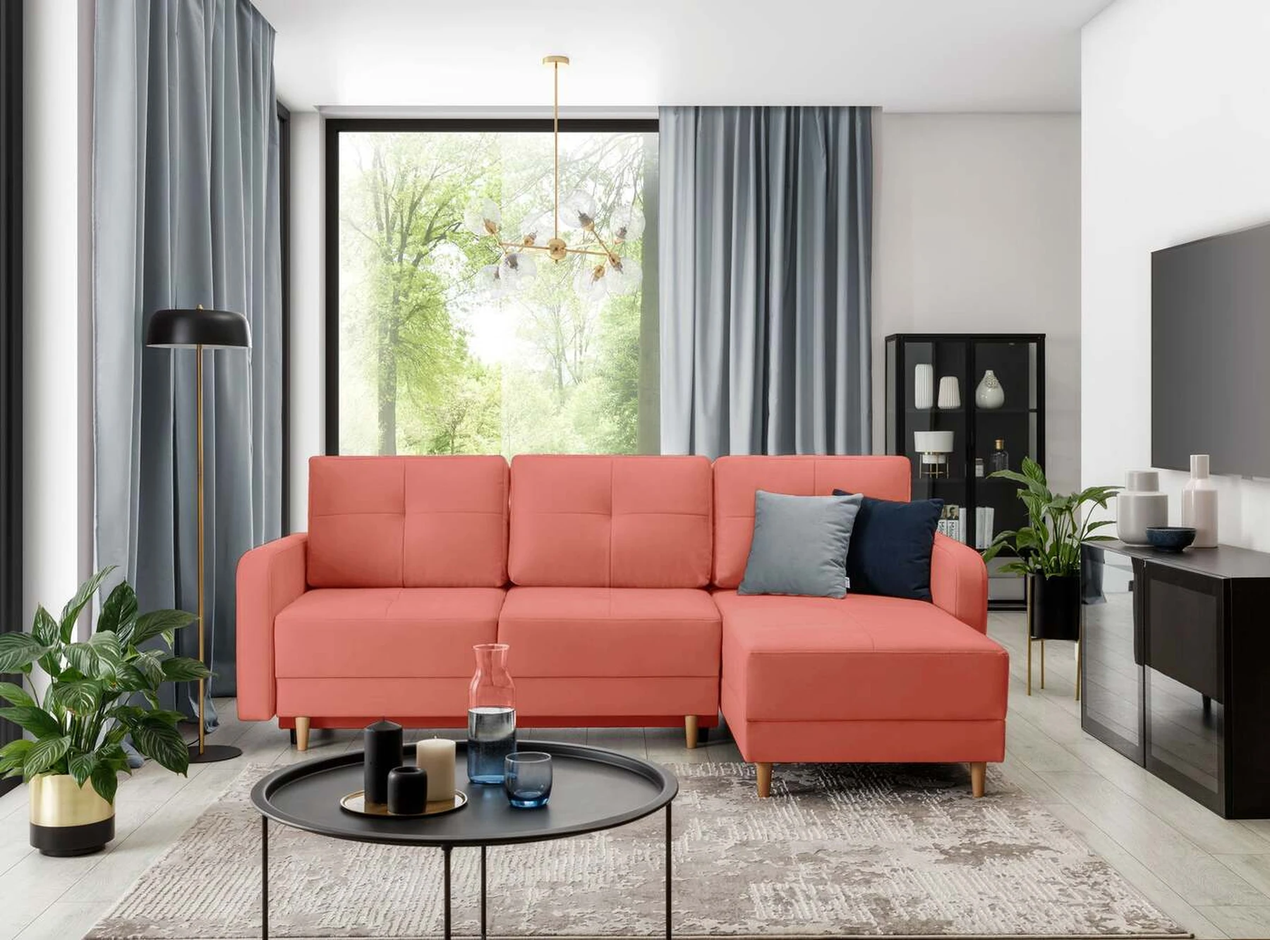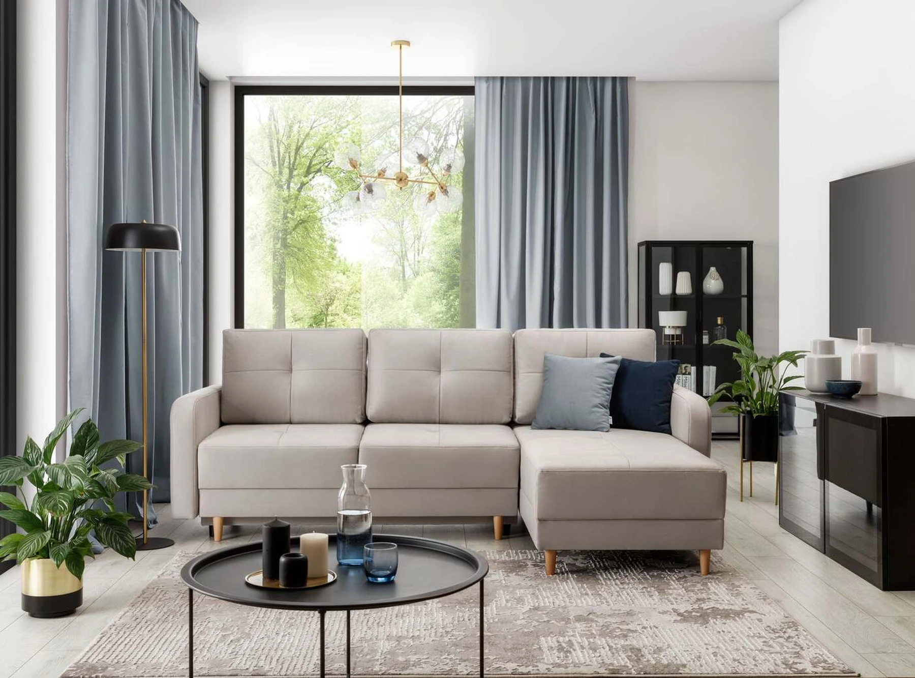 Elegantiškos linijos, paprastas stilius ir patogi vieta daiktams laikyti – tai yra EL9258 kampinės sofos. Tai puikus pasirinkimas gyvenant vidutinio dydžio erdvėse, nes jo matmenys yra 240 x 165 x 90 centimetrų. Šio baldo sėdynę sudaro labai patogi pagalvėlė, pagaminta iš dviejų putų derinio: didelio tamprumo HR putplasčio ir deformacijoms atsparaus T30 putplasčio, taip pat aukštos kokybės apmušalai ir B tipo gofruota spyruoklė, užtikrinanti ilgaamžiškumą. baldo. Šios kampinės sofos gale buvo panaudotas universalus T25 putplastis. Baldo kojelėms gaminti buvo panaudota alksnio mediena. Kampinėje sofoje EL9258 taip pat yra 215 x 120 centimetrų miegamoji erdvė, todėl ji puikiai tiks iš anksto nepranešusiems svečiams. Dar vienas šios kampinės sofos privalumas – patalynės konteineris, kuris leidžia patogiai susidėti papildomas pagalves, antklodes ar patalynę Jūsų svečiams. Kampinę sofą puošiantys skiautiniai ir dygsniai suteikia interjerui, kuriame stovi EL9258, daugiau charakterio, bet taip pat patraukia dėmesį ir pristato originalų stilių.
