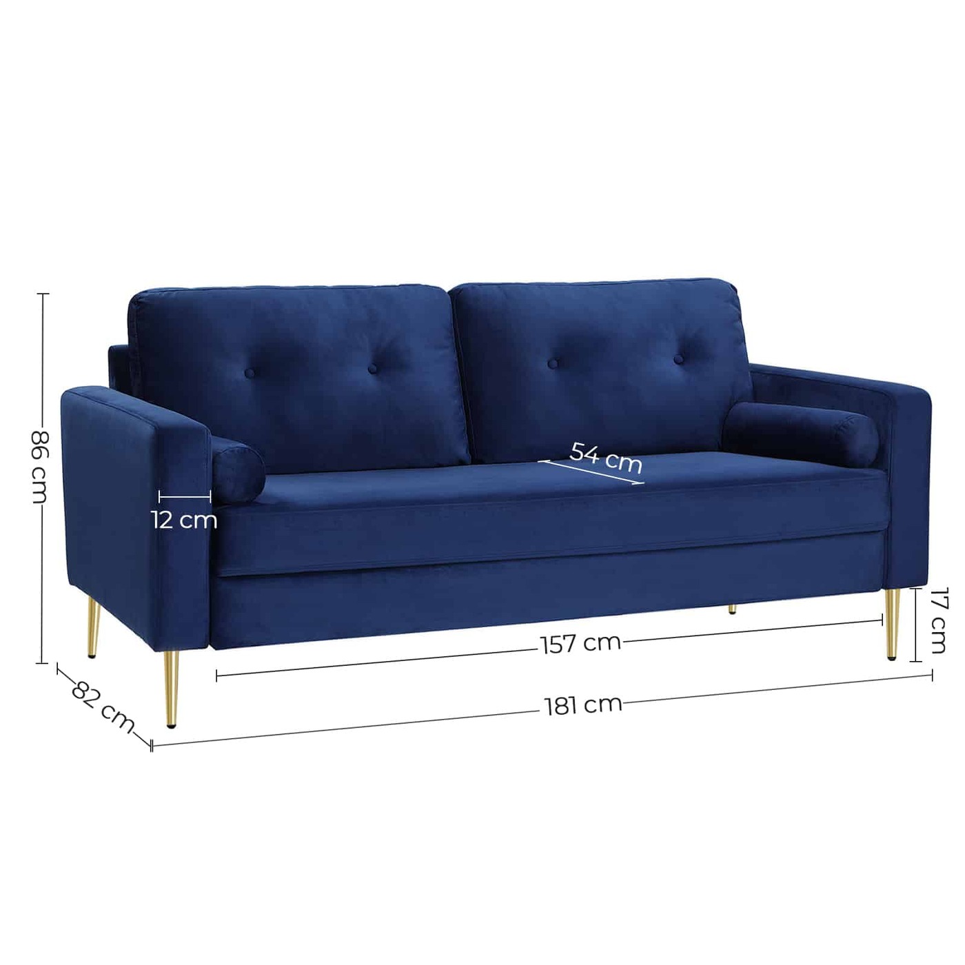 Aprašymas buvo automatiškai išverstas, gali pasitaikyti klaidų.Jūsų namų židinysJaukios nugaros pagalvėlės, mėlynas aksomas ir metalinės sofos kojos sužavės jūsų svečius taip, kad jie nenorės išeiti! Naudodami antklodes ir pagalvėles galite mėgautis komfortu ir suteikti savo namams stilingumo.Visada šalia Jūsų Dėl gerai paminkštintos sėdynės pagalvėlės, odai draugiško užvalkalo ir 2 minkštų nugaros pagalvėlių, patogi sėdėjimas garantuojamas. Be to, ši sofa palaiko keturias tvirtas blizgančias metalines kojeles ir gali išlaikyti iki 300 kg (maksimali statinė apkrova). Išsami informacija apie gaminį: - Spalva: Mėlyna - Medžiaga: Aksomas, Putų kamšalas, Eukalipto mediena, Metalas - Dydis : 181 x 82 x 86 cm (P x P x A) - Svoris: 35 kg - Maksimali bendra statinė apkrova: 300 kgPakuotės turinys:- 1 x sofa- 1 x priedų paketas- 1 x instrukcijaVASAGLE Pastabos:- Vaikai gaminį turėtų naudoti tik prižiūrimi suaugusiojo.- Surinkite gaminį griežtai pagal instrukcijoje nurodytus surinkimo veiksmus. Gaminio pakeitimas arba pertvarkymas gali pakenkti saugai ir susižaloti.