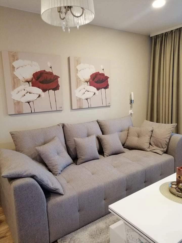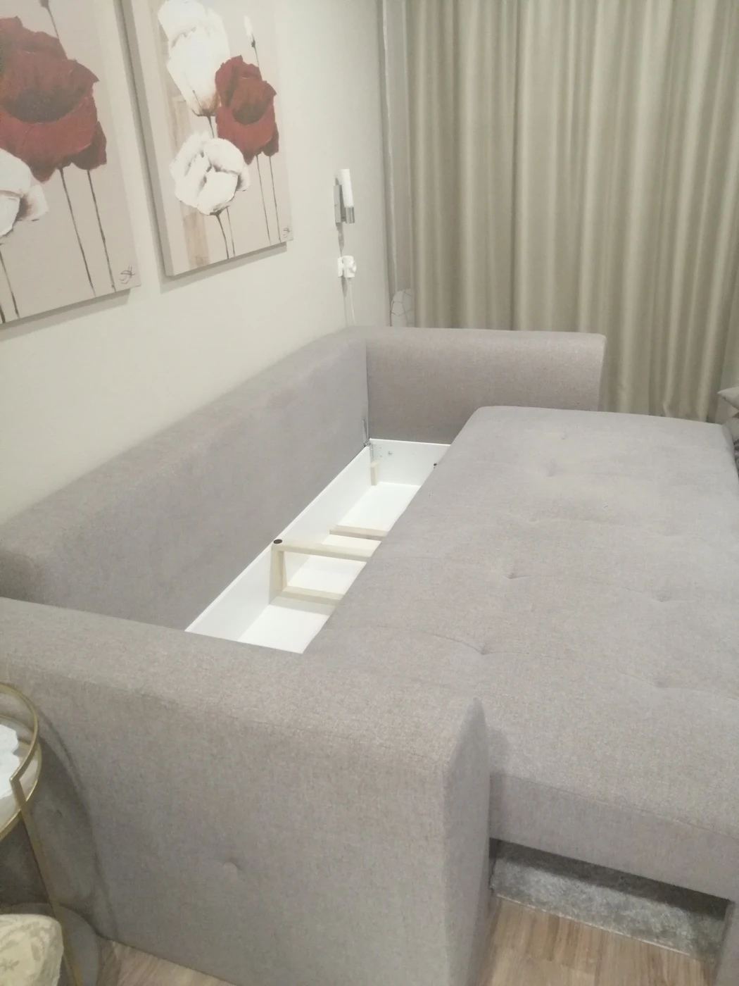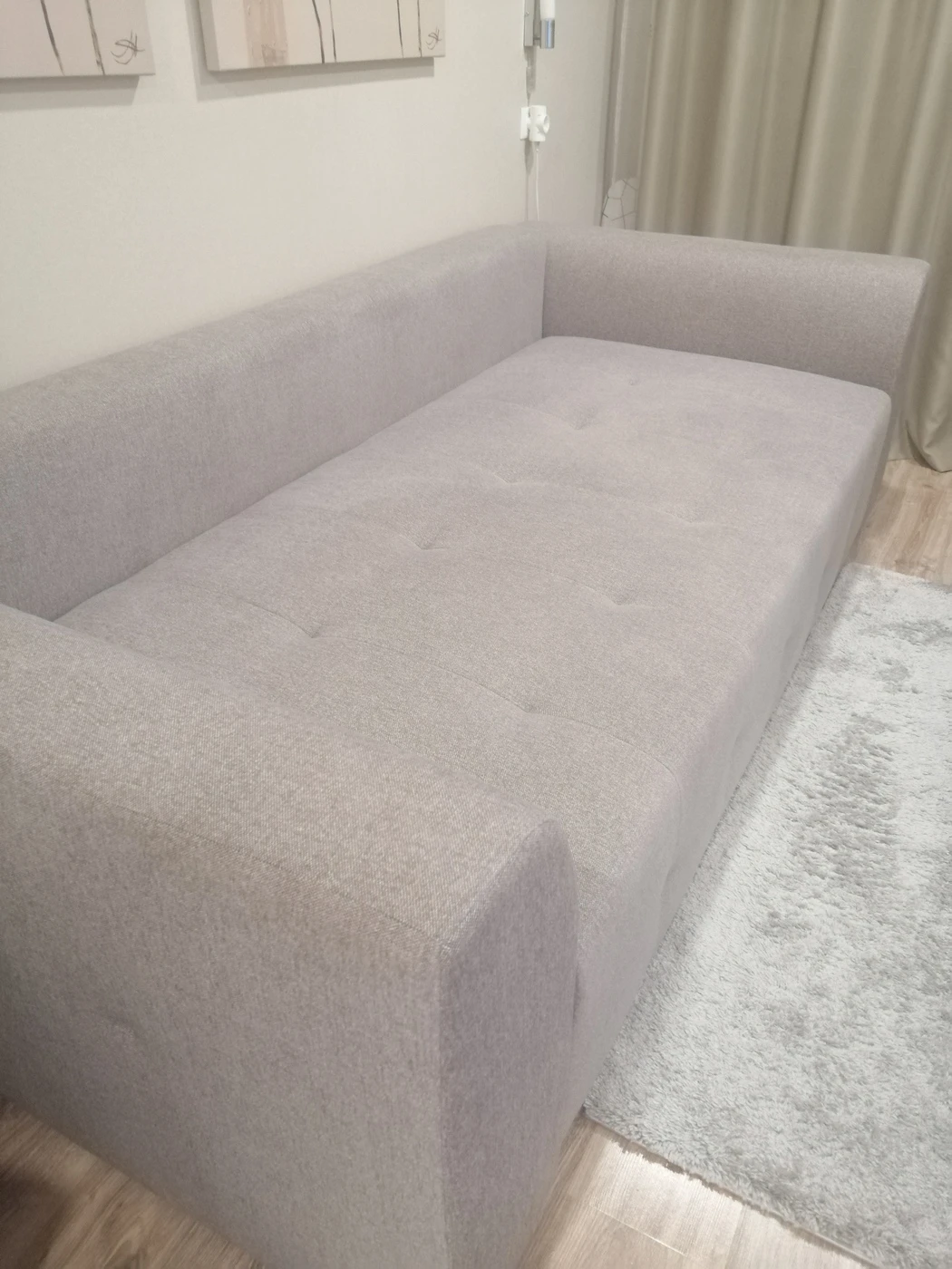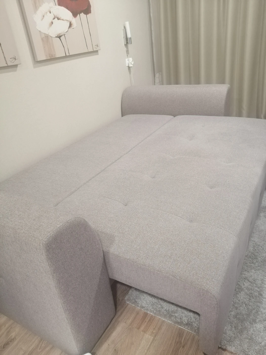 Modernus dizainas,spalva. Plati, labai patogi sėdima dalis, lengvai išsitiesia miegojimui, su patalynės dėže. Yra pirkimo dokumentai, garantija. Sėdima dalis gylis 0.95 cm.(+atlošas 0.17 cm) Aukštis 0.40(sėdimos dalies), atlošo ir porankių aukštis 0.70, ištiestos gulimas plotas 1,60.Trys didelės pagalvės atlošo,+dekoro.Spalva foto atitinka.