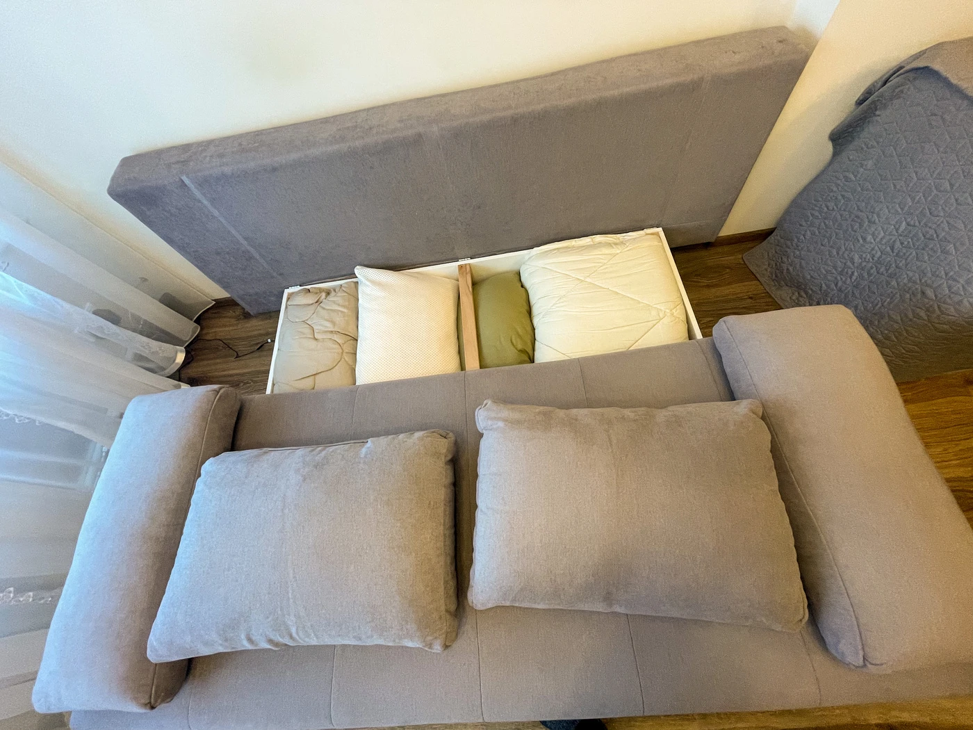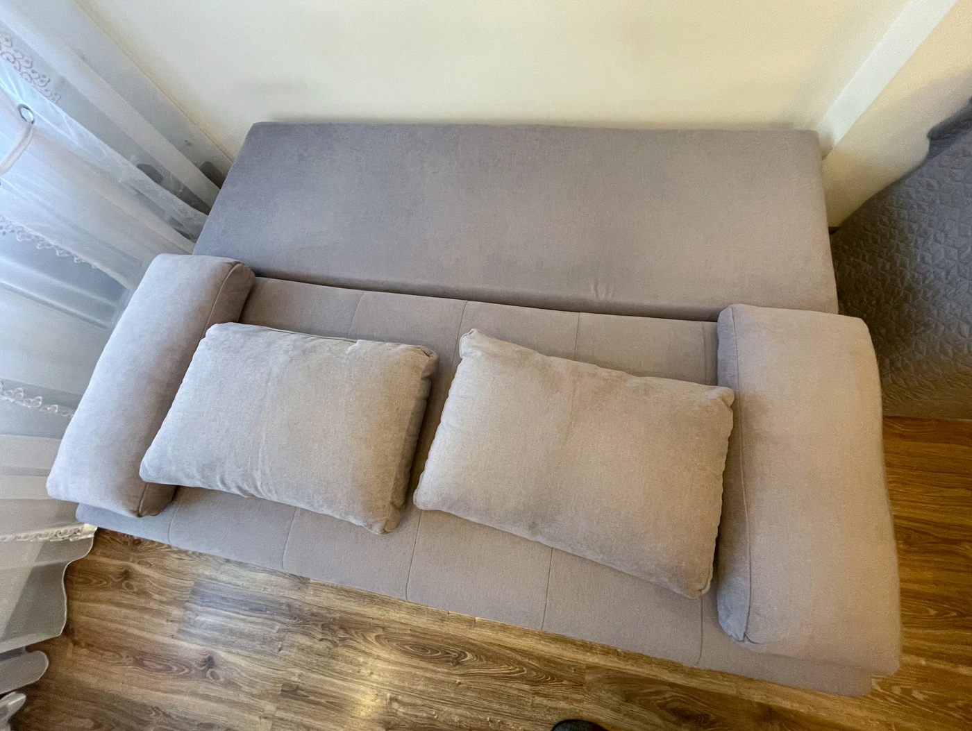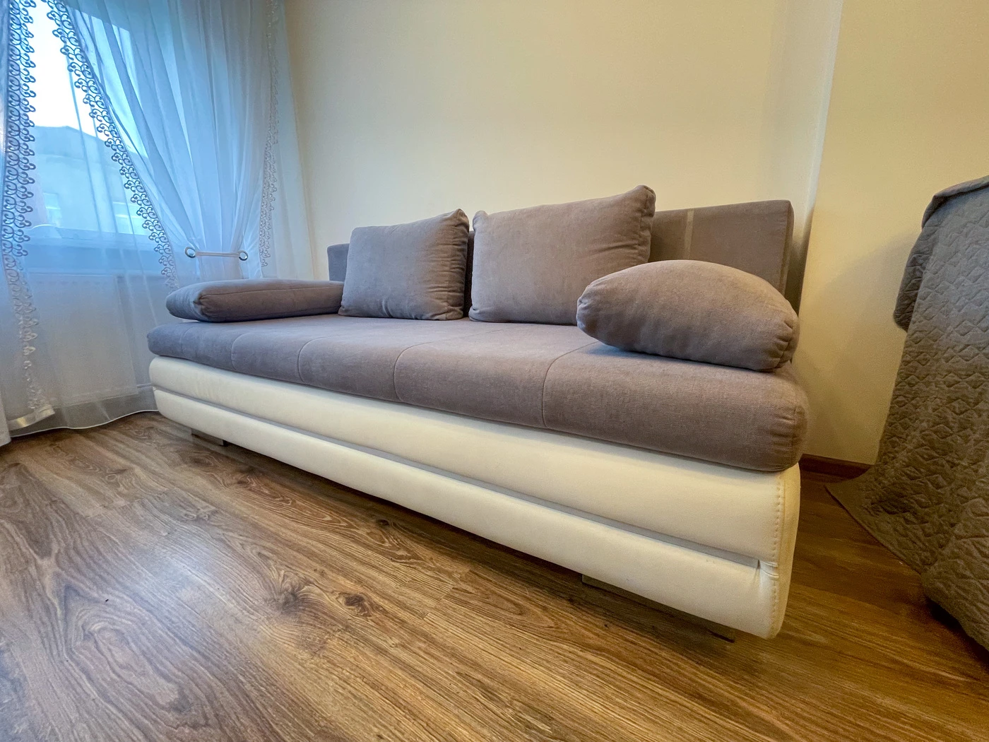 Parduodama geros būklės sofa-lova. Ilgis 200 cm, plotis 100 cm, aukštis 80 cm. Plotis išskleidus 150 cm. Sofa turi RGB apšvietimą (žr. paskutines foto). Defektai matomi nuotraukose - šiek tiek apgadinta eco oda sofos kampuose. Pasiimti patiems, vieta - Eišiškės, Šalčininkų r. Kaina 200 Eur. Kreiptis 864579786