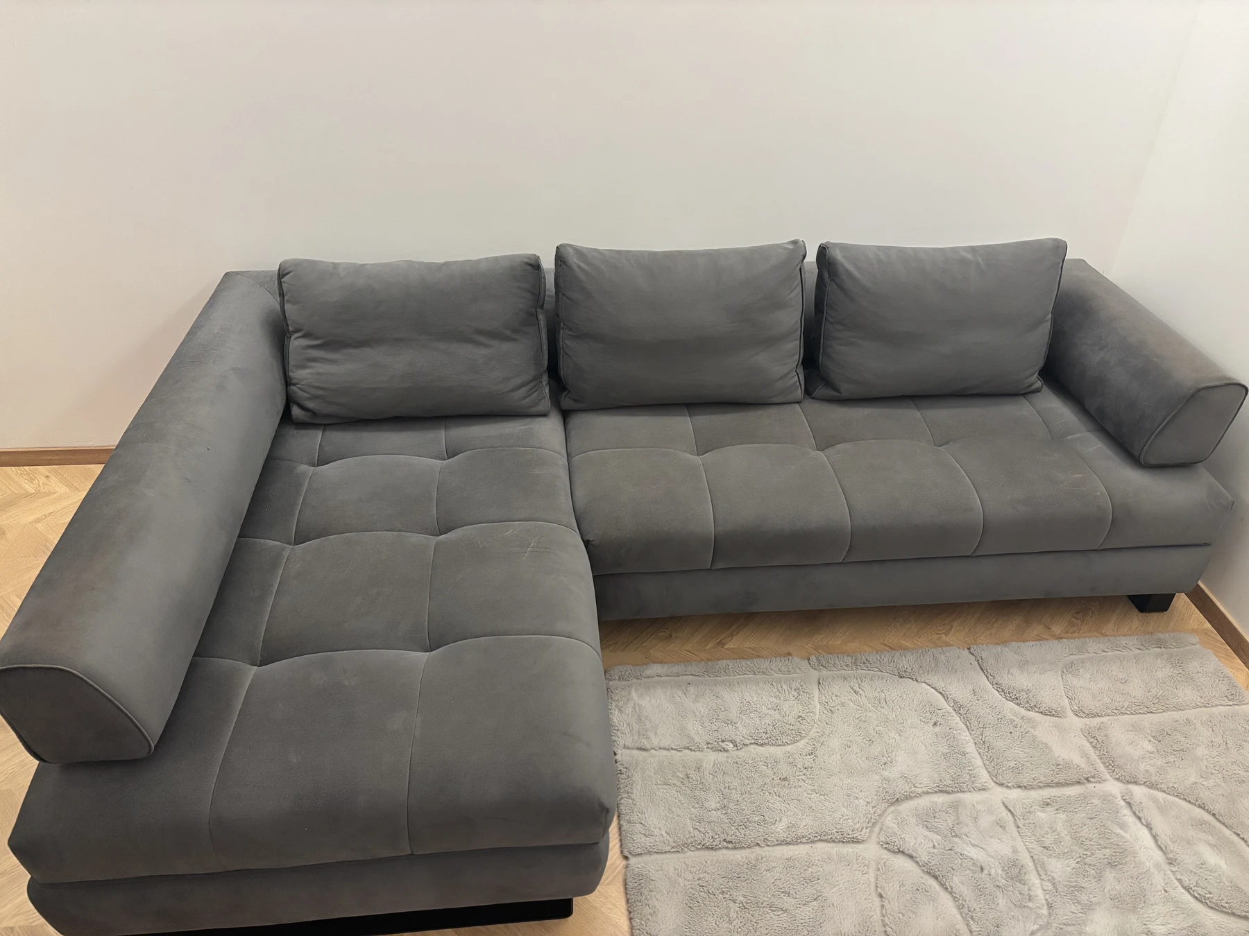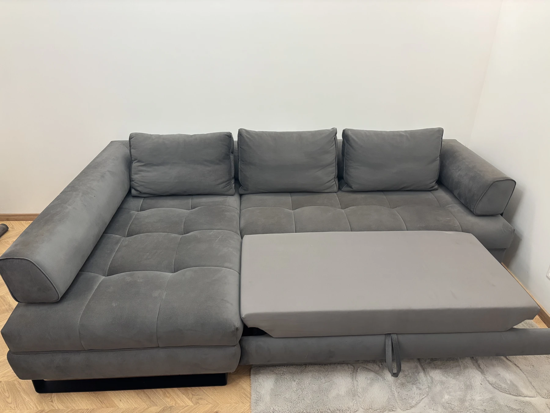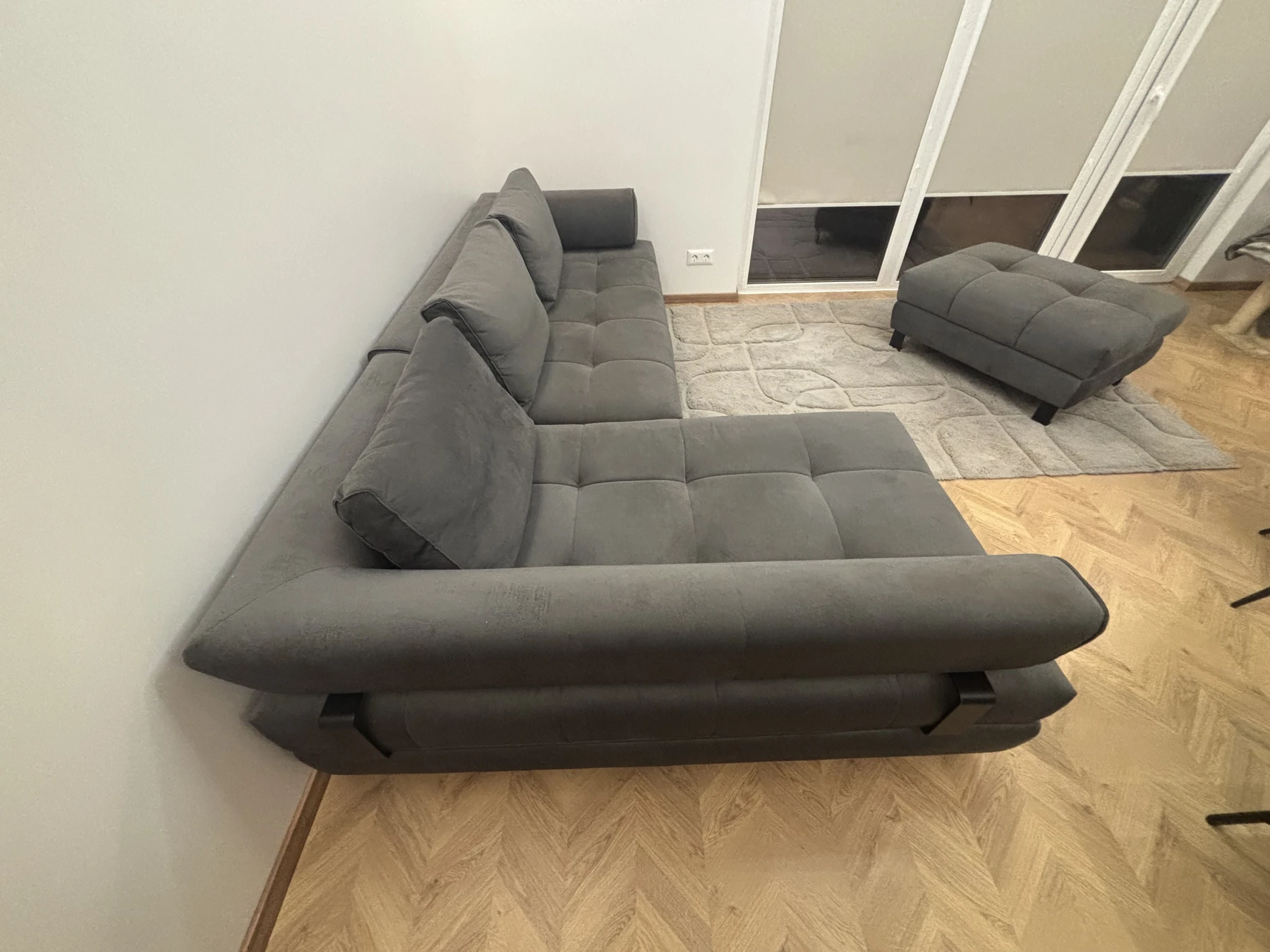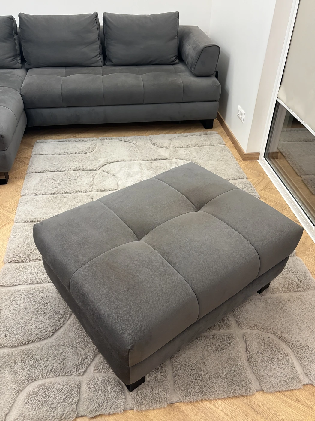 Parduodama kokybiška sofa-lova su pufu. Yra patvari ir praktiška, puikiai tiks tiek kasdieniam naudojimui, tiek kaip miegamoji vieta. Pufas - patogus ir stilingas papildymas, kuris suteikia dar daugiau komforto. Baldai nėra pažeisti.