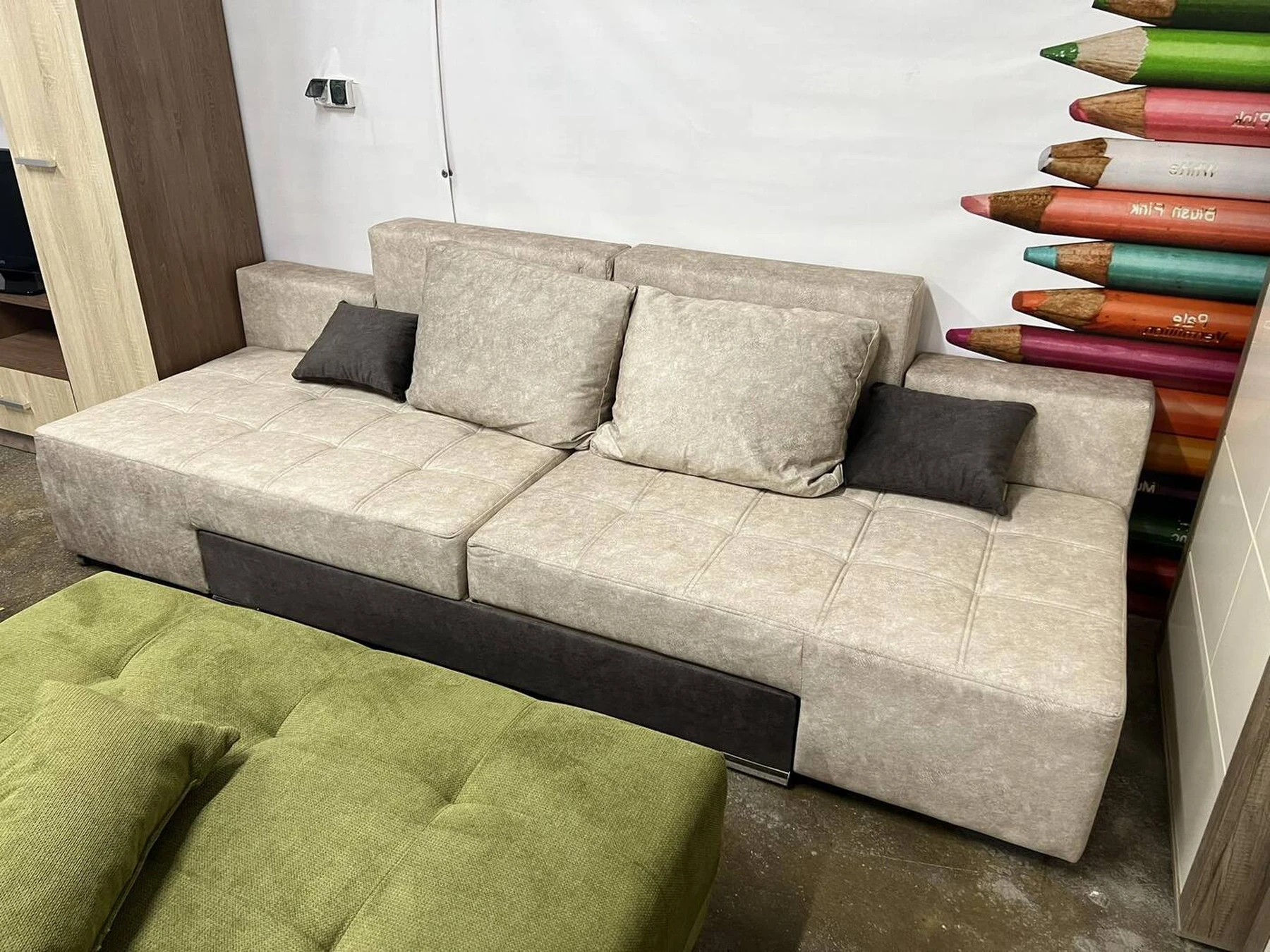 Parduodama nauja sofa iš ekspozicijos. Yra lovos mechanizmas, į komplektą įeina keturios pagalvės. Audinys nesišešėliuoja, gerai valosi, lengva priežiūra.