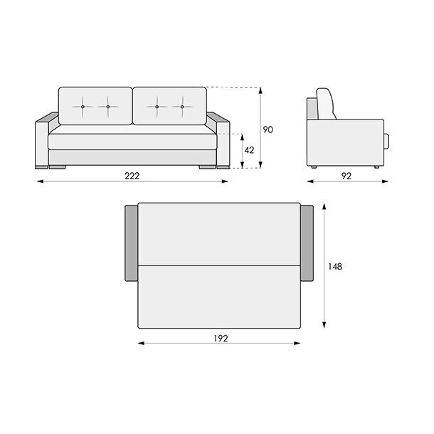 Sofa greitai ir lengvai transformuojasi į miegamą lovą dėka patogaus transformacijos mechanizmo "Euroknyga". Erdvi patalynės dėžė, padalinta į du skyrius, padės patogiai sutalpinti patalynę.