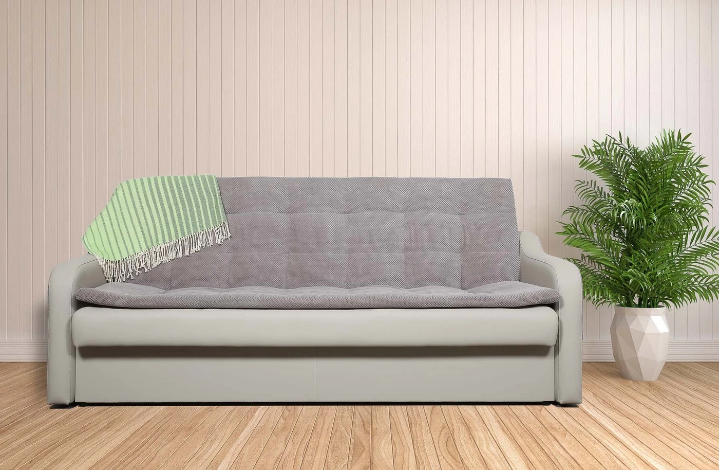 Itin kokybiška, pagaminta Lietuvoje, patogi tiek sėdėjimui, tiek miegojimui ši sofa lova tikrai papuoš Jūsų kambarį. Lovos apdailai panaudota kokybiška dirbtinė oda ir patikimas baldinis audinys.