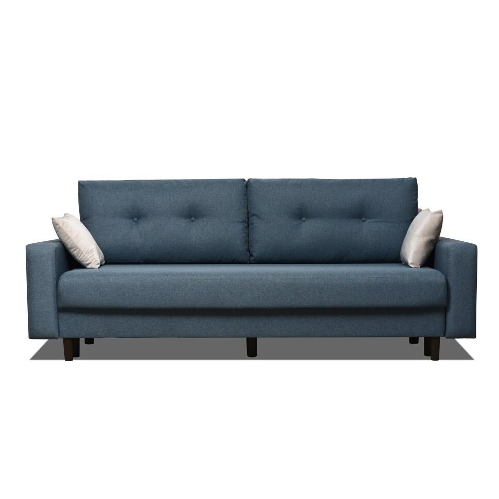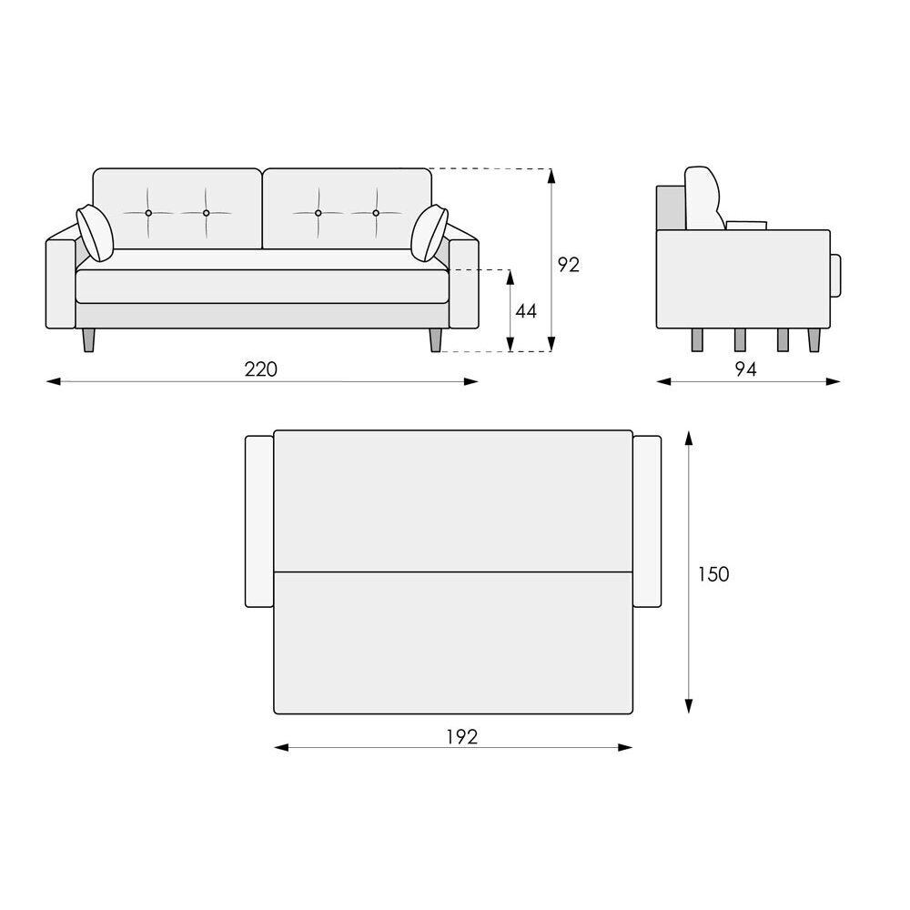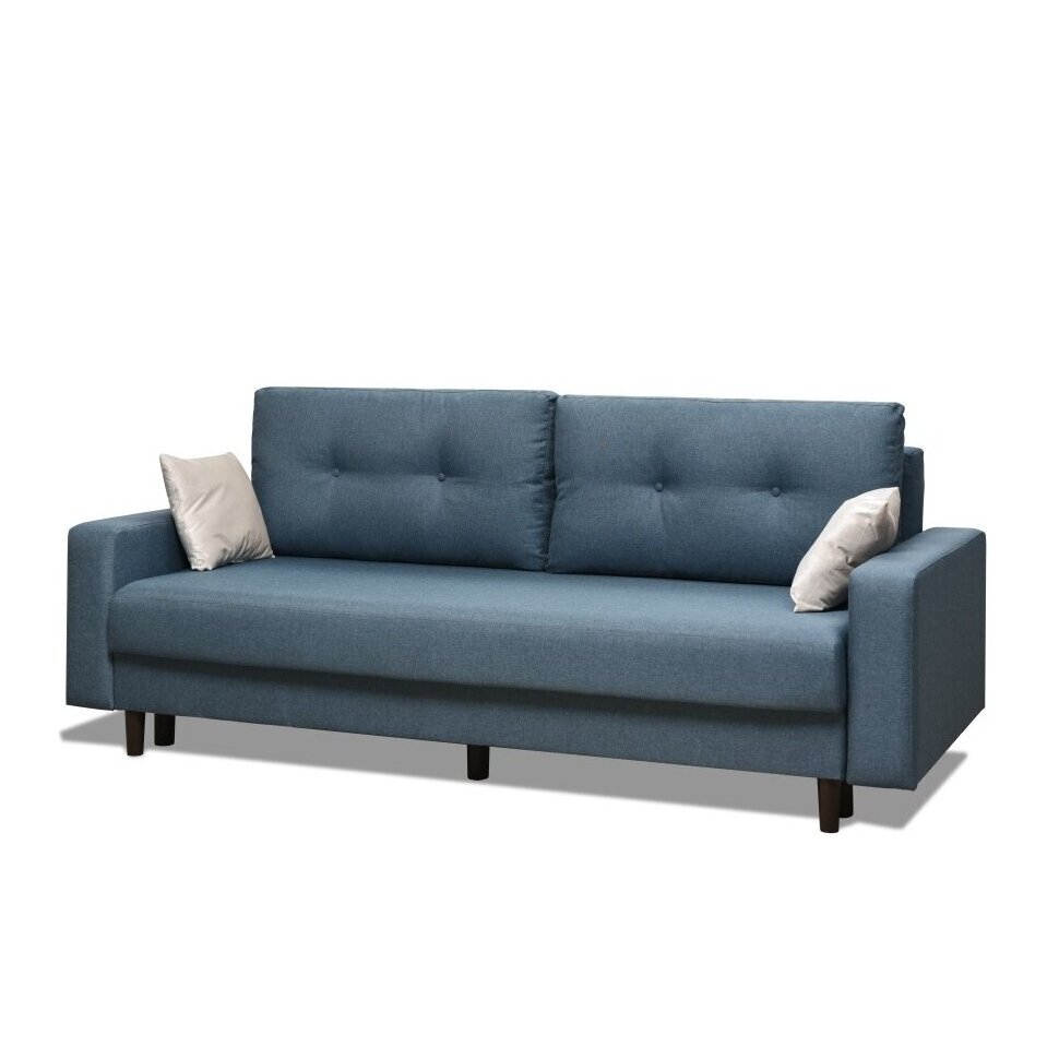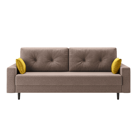 Sofa-lova "Tokyo" išsiskiria subtiliai griežtu, stilingu dizainu. Dvi didelės sagomis dekoruotos pagalvės suteikia patogią atramą. Medžio masyvo kojos grakščiai pakelia sofą virš grindų ir suteikia lengvumo pojūtį.