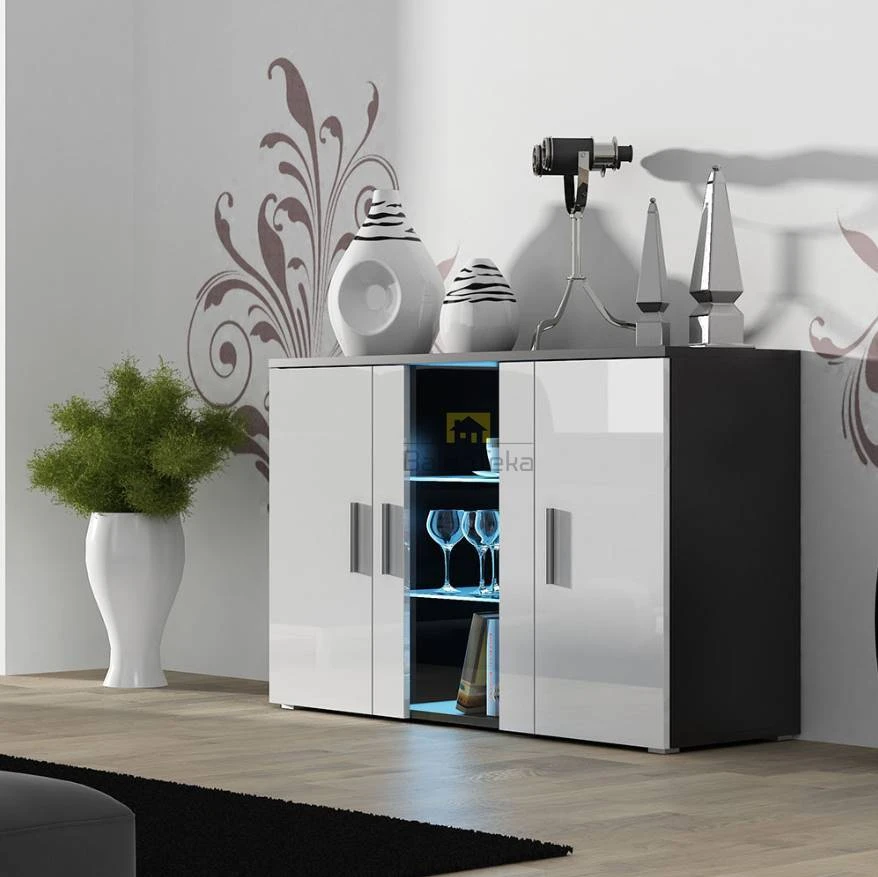 Spalva: korpusas – juodas matinis; fasadai – balti blizgūs.