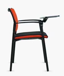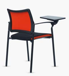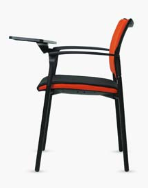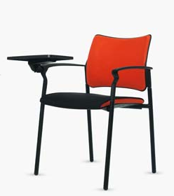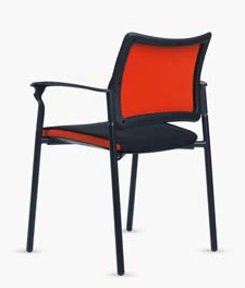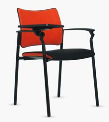 Minkšta sėdimoji dalis bei atlošas yra aptraukti oda arba gobelenu. Platus audinio spalvų pasirinkimas. Juodas metalinis rėmas su porankiais.