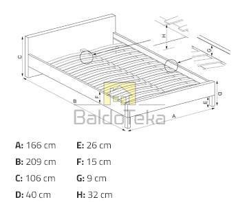 Lovos rėmo Ilgis/Plotis/Aukštis – 209/166/106 cm.