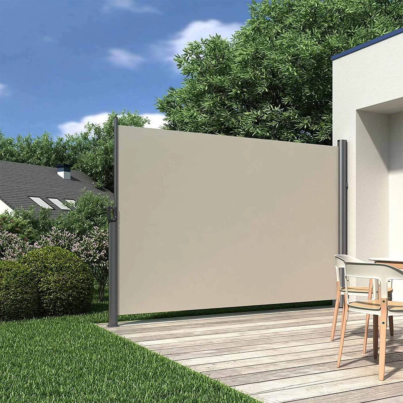 Aprašymas buvo automatiškai išverstas, gali pasitaikyti klaidų.Elegantiškas privatumo ekranas terasoje ir balkone Mėgaukitės pusryčiais ar priešpiečiais be smalsių kaimynų akių. Vasarą pasinaudokite vėsinančiu šešėliu ir apsauga nuo vėjo ir mėgaukitės vasaros temperatūra, kad atsipalaiduotumėte savo terasoje ar balkone. Lankstus šoninis tentas lauke ir viduje Šoninę markizę galite naudoti ir patalpose, pavyzdžiui, gydytojo kabinete ar studijoje. Tereikia stabilios sienelės, prie kurios būtų galima pritvirtinti šoninę žaliuzę. Su grindų kronšteinu markizės stulpas taip pat gali būti lengvai vėl nuimamas, kad ant grindų būtų tik žemas, mažas laikiklis, kuris nėra ypač pastebimas.Lengvas surinkimas ir valdymas Dėl pridedamų surinkimo instrukcijų surinkimas yra greitas ir lengvas. Sumontavus šoninę markizę lengva naudoti ir taip pat greitai vėl susukti, kai jos nebereikia. Susukite markizę pučiant stipriam vėjui, smarkiai lyjant ar sningant, kad galėtumėte ilgą laiką mėgautis privatumo apsauga Danga - Matmenys: 160 x 350 cm (A x P) - Svoris: 10,7 kg Pristatymo komplektas: - 1 x šoninis tentas - 1 x grindų laikiklis – 1 x instrukcijos (DE, EN, FR, IT, ES)