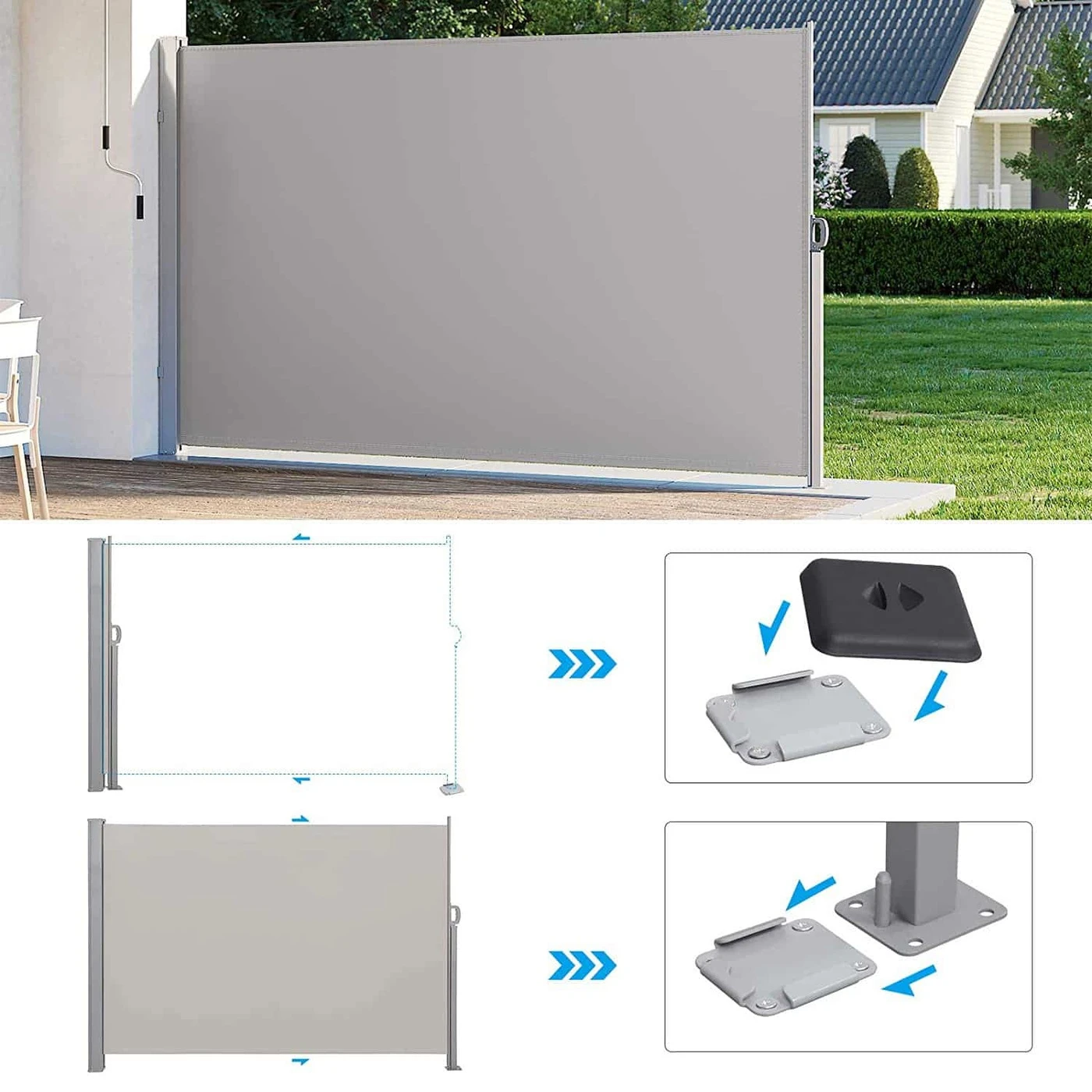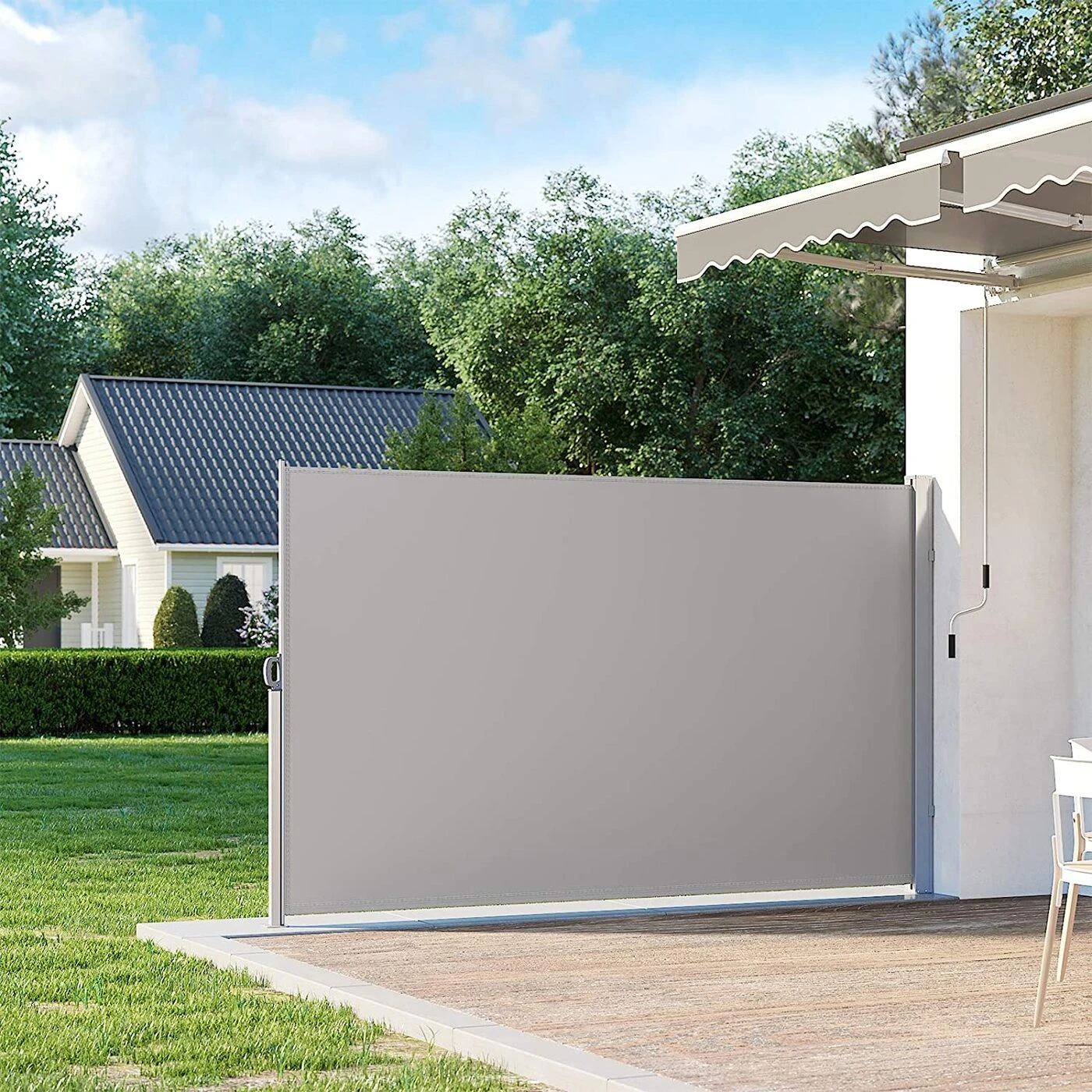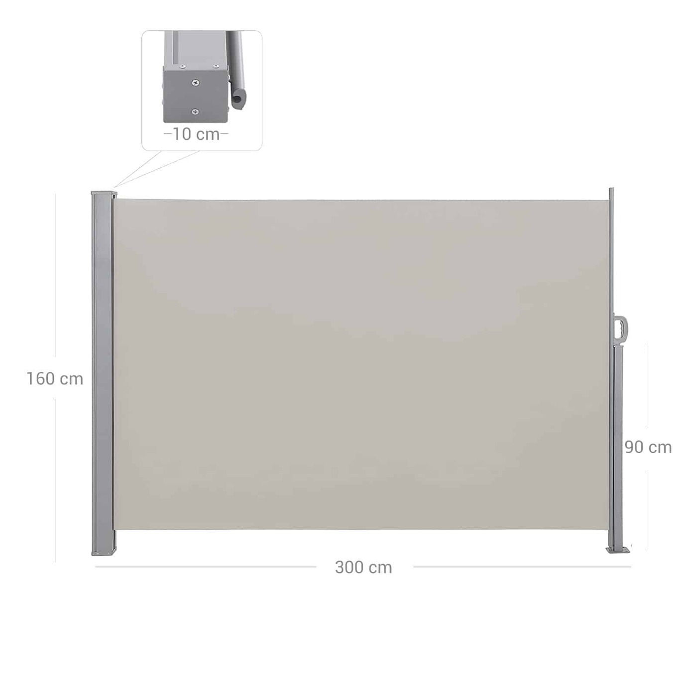 Aprašymas buvo automatiškai išverstas, gali pasitaikyti klaidų.Ši SONGMICS šoninė markizė yra puikus jūsų partneris, kai norite apsisaugoti nuo saulės spindulių ir smalsių kaimynų akių. Įvairūs panaudojimai Šį visapusį talentą galite panaudoti tiek viduje, pavyzdžiui, atviro plano biuruose, medicinos kabinetuose, persirengimo kambariuose ar fotostudijose, tiek lauke, pavyzdžiui, terasoje, sode, šalia baseino ar ant stovyklavietėje. Pridedamas pagrindo flanšas ir apsauginis dangtelis. Pristatymo komplektacijoje yra pagrindo flanšas, skirtas šoniniam stulpui pritvirtinti. Saugumo sumetimais, kai nenaudojate markizės, uždenkite laikymo įtaisą pridedamu apsauginiu dangteliu. Flanšo beveik nebesimato. Aukščiausios kokybės geležinė markizės dėžė Milteliniu būdu dengta geležinė tentų dėžutė yra atspari rūdijimui ir korozijai. Dėžutė taip pat visiškai apsaugo markizės audinį nuo UV spindulių, lietaus ir dulkių, todėl pailgėja tarnavimo laikas.Išsami informacija apie gaminį: - Spalva: taupe - Medžiaga: milteliniu būdu dengta geležis (markizės dėžutė / šoninis stulpas), aliuminis (drobinis kotas), 220 g/m² PVC dengtas poliesteris (markizės audinys) - Dydis: 160 x 300 cm (A x L) - Svoris: 6. 8 kg Pristatymo apimtis: - 1 x šoninis tentas - 1 x priedų paketas - 1 x vadovas (DE, EN, IT, ES, FR) SONGMICS Pastabos: - Šis gaminys buvo sukurtas naudoti tik saulėtoje vietoje arba šiek tiek vėjuotomis dienomis. Pučiant stipriam vėjui ar audrai, nedelsdami įtraukite tentą, kad nepažeistumėte. - Šį gaminį valykite tik vandeniu, drėgna šluoste arba neutralia plovimo priemone.