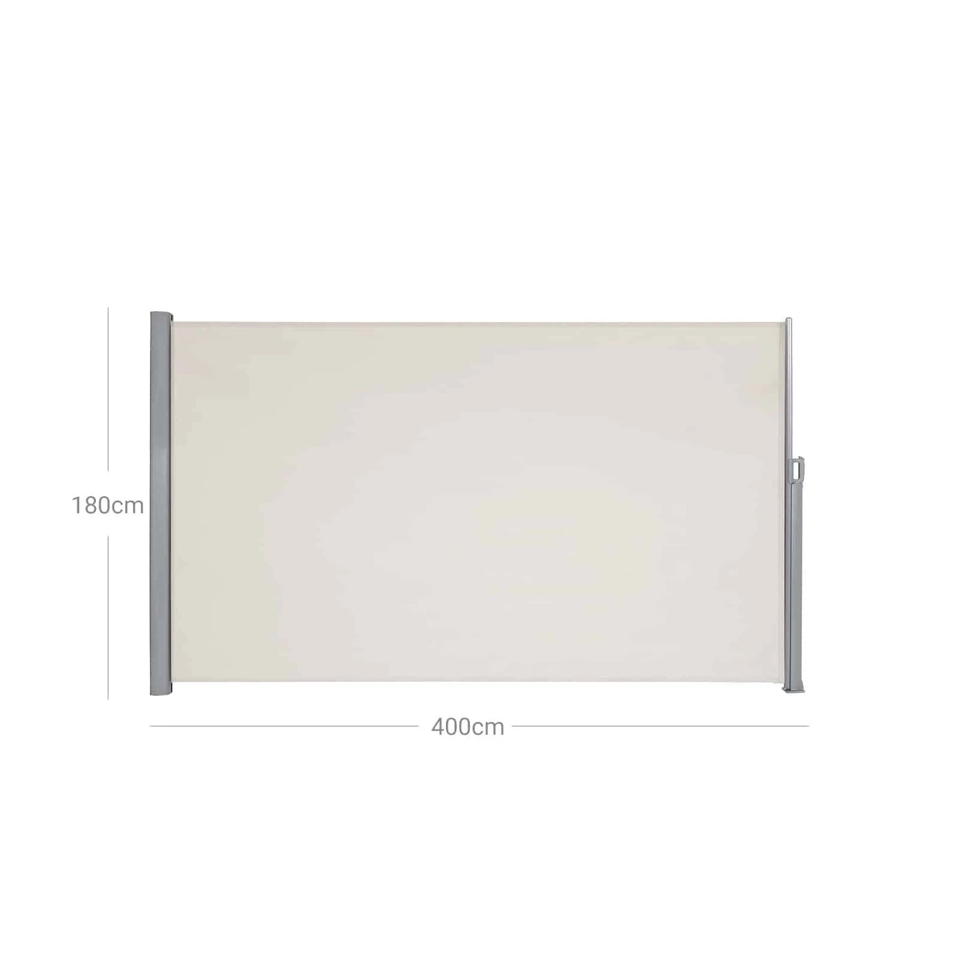 Aprašymas buvo automatiškai išverstas, gali pasitaikyti klaidų.Privatus ekranas terasai ir balkonui Dėka SONGMICS šoninių markizių galėsite smagiai papusryčiauti savo terasoje, nebijodami smalsių kaimynų akių. Taip pat galite naudoti šešėlių dozatorių, kad apsaugotumėte nuo žalingų saulės spindulių. Taigi galėsite atsipalaiduoti ir mėgautis šiltomis vasaros dienomis lauke. Tinka vidaus ir lauko erdvėms Šį visapusį talentą galite panaudoti tiek patalpose, kaip atviro plano biuruose, medicinos kabinetuose, persirengimo kambariuose ar fotostudijose, tiek lauke, pavyzdžiui, terasoje, sode, šalia savo baseine arba savo stovyklavietėje.Prekės informacija: - Spalva: smėlio spalvos - Medžiaga: aliuminis, 280 g/m² PU dengtas, vandenį atstumiantis poliesteris (markizės audinys) - Dydis: 180 x 400 cm (A x L) - Svoris: 10 kg Pristatymo apimtis: - 1 x šoninis tentas – 1 x priedų paketas – 1 x rankinis (DE, EN, IT, ES, FR)