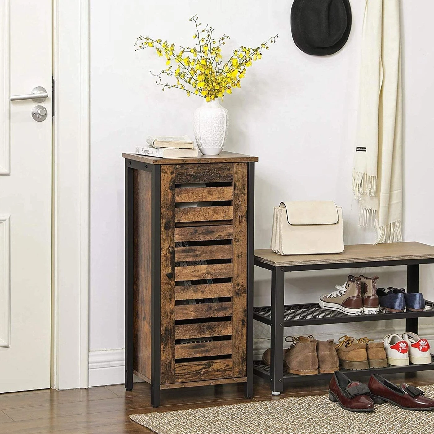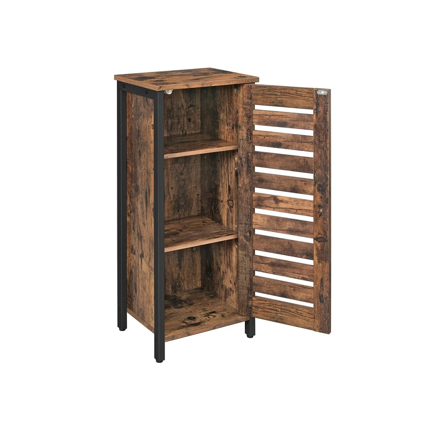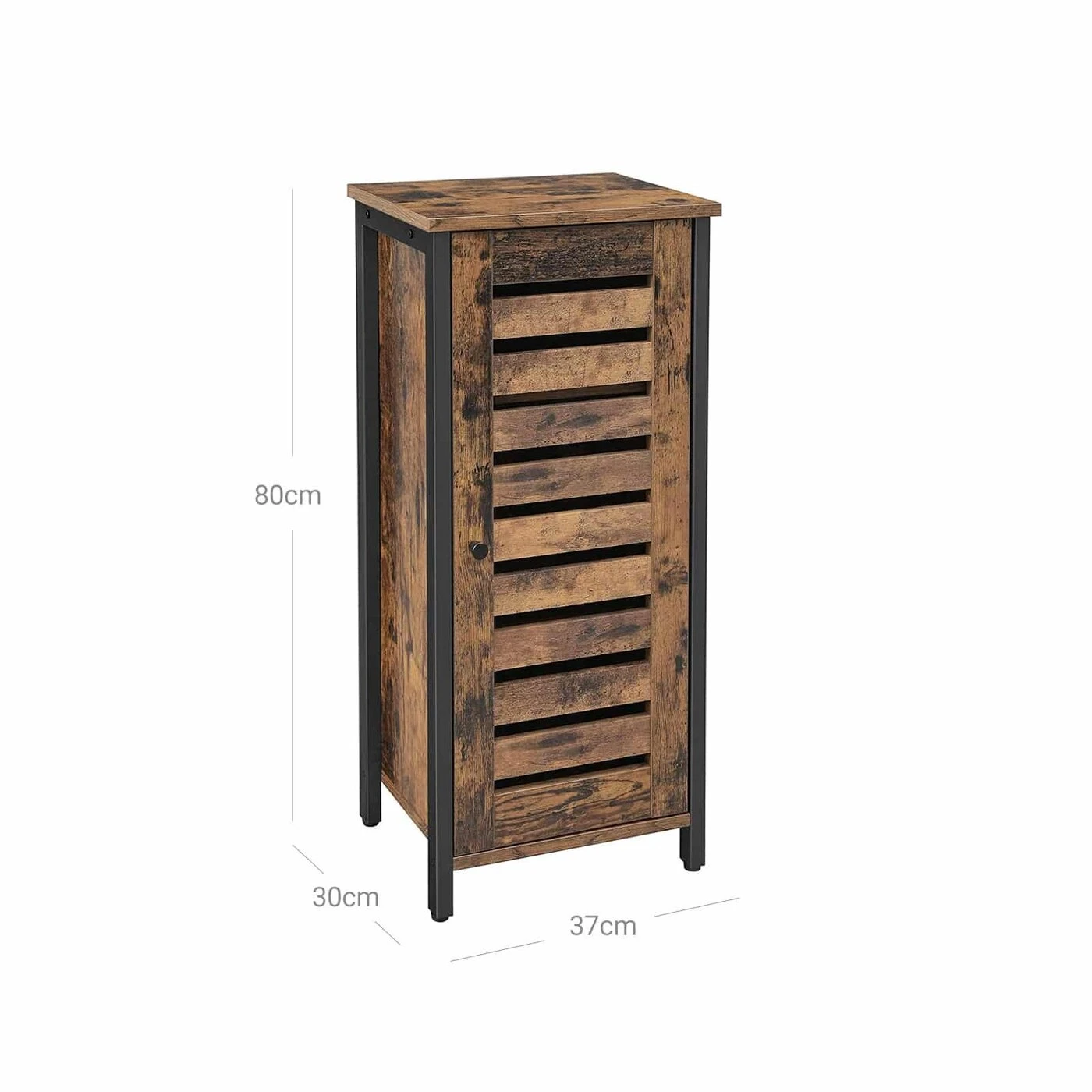 Aprašymas buvo automatiškai išverstas, gali pasitaikyti klaidų.Informacija apie gaminį: - Spalva: vintažinė/tamsiai ruda - Medžiaga: medžio drožlių plokštės, plienas - Dydis: 37 x 30 x 80 cm (P x P x A) - Svoris: 11,4 kg - Maksimali statinė paviršiaus apkrova: 30 kg - Maksimali vidinių lentynų lygių statinė apkrova: 10 kgPristatymo komplektas: - 1 x šoninė spintelė su žaliuzėmis - 1 x priedų paketas - 1 x vadovas (DE, EN, ES, FR, IT) VASAGLE Pastabos: - Saugumo sumetimais vaikams draudžiama lipti ant gaminio arba žaiskite su juo. - Pritvirtinkite šį gaminį prie sienos su komplekte esančiu apsaugančiu nuo apvirtimo, kad užtikrintumėte saugų naudojimą. Gaminio aprašymas