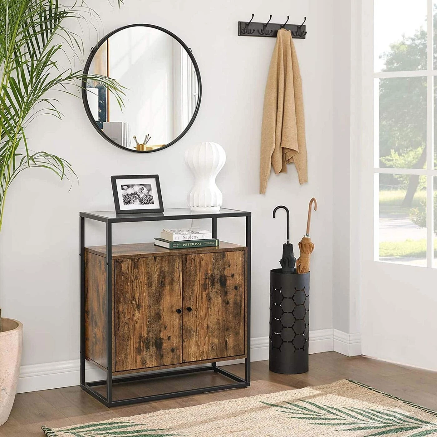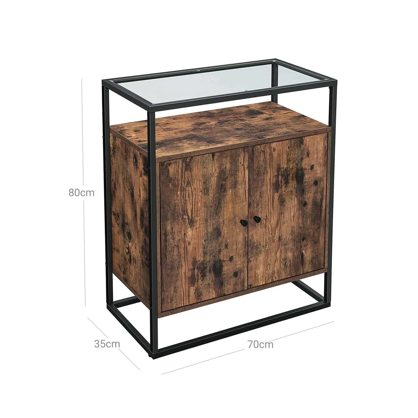 Aprašymas buvo automatiškai išverstas, gali pasitaikyti klaidų.Produkto detalės: - Spalva: vintažinė ruda-juoda - Medžiaga: medžio drožlių plokštė, plienas, grūdintas stiklas - Dydis: 70 x 35 x 80 cm (P x P x A) - Svoris: 20 kg - Maksimali statinė stiklo paviršiaus apkrova: 30 kg - Maksimali kitų lentynų statinė apkrova: 10 kgPristatymo komplektas: - 1 x indauja su stikliniu paviršiumi - 1 x priedų pakuotė - 1 x apsauga nuo apvirtimo - 1 x rankinė (DE, EN, ES, FR, IT) VASAGLE Pastabos: - Saugumo sumetimais vaikams draudžiama užlipkite ant gaminio arba naudokite jį žaisti.- Šio gaminio paviršius pagamintas iš stiklo. Elkitės atsargiai, kad nesuskiltų.- Pritvirtinkite šį gaminį prie sienos naudodami pateiktą apsaugą nuo apsivertimo.