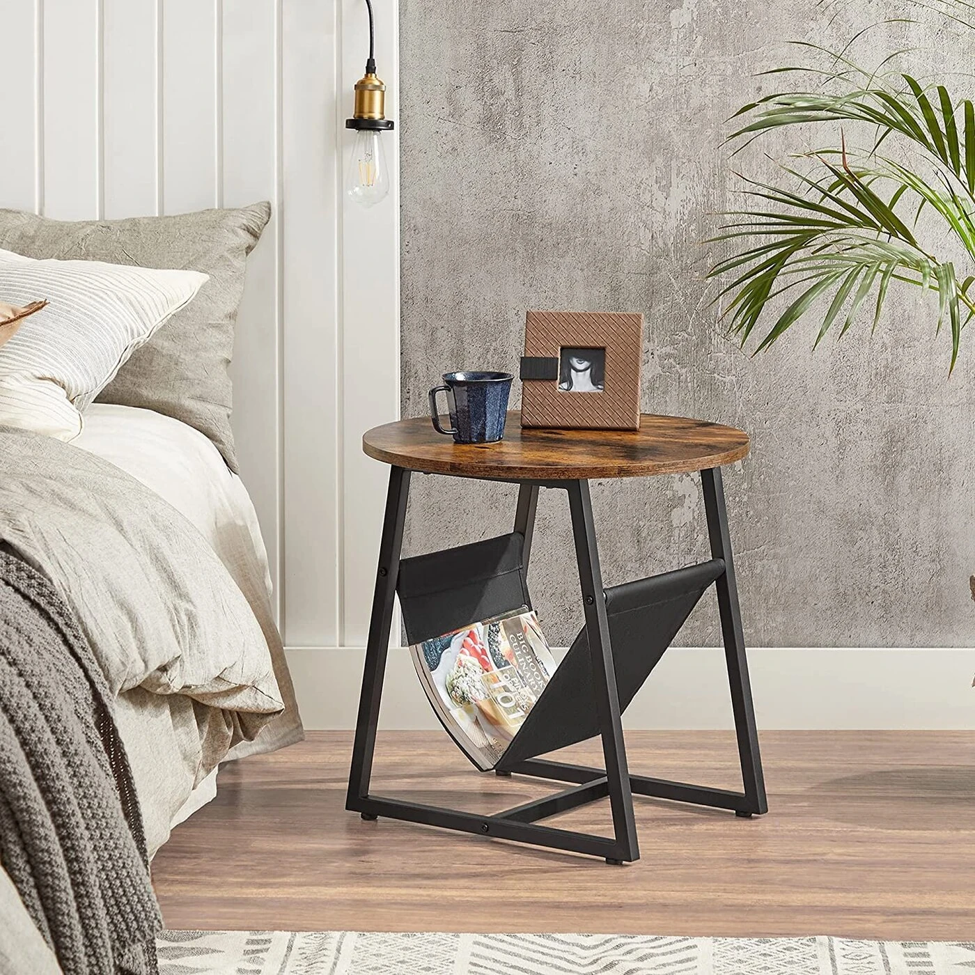Aprašymas buvo automatiškai išverstas, gali pasitaikyti klaidų. Prekės informacija: - Spalva: vintažinė ruda-juoda - Medžiaga: medžio drožlių plokštės, plienas - Dydis: 50 x 50 cm (Ø x A) - Svoris: 4,3 kg - Maksimali statinė stalviršio apkrova: 20 kgPristatymo apimtis: - 1 x šoninis staliukas - 1 x priedų paketas - 1 x vadovasVASAGLE Pastabos: - Saugumo sumetimais vaikams draudžiama lipti ant gaminio ar žaisti su juo.