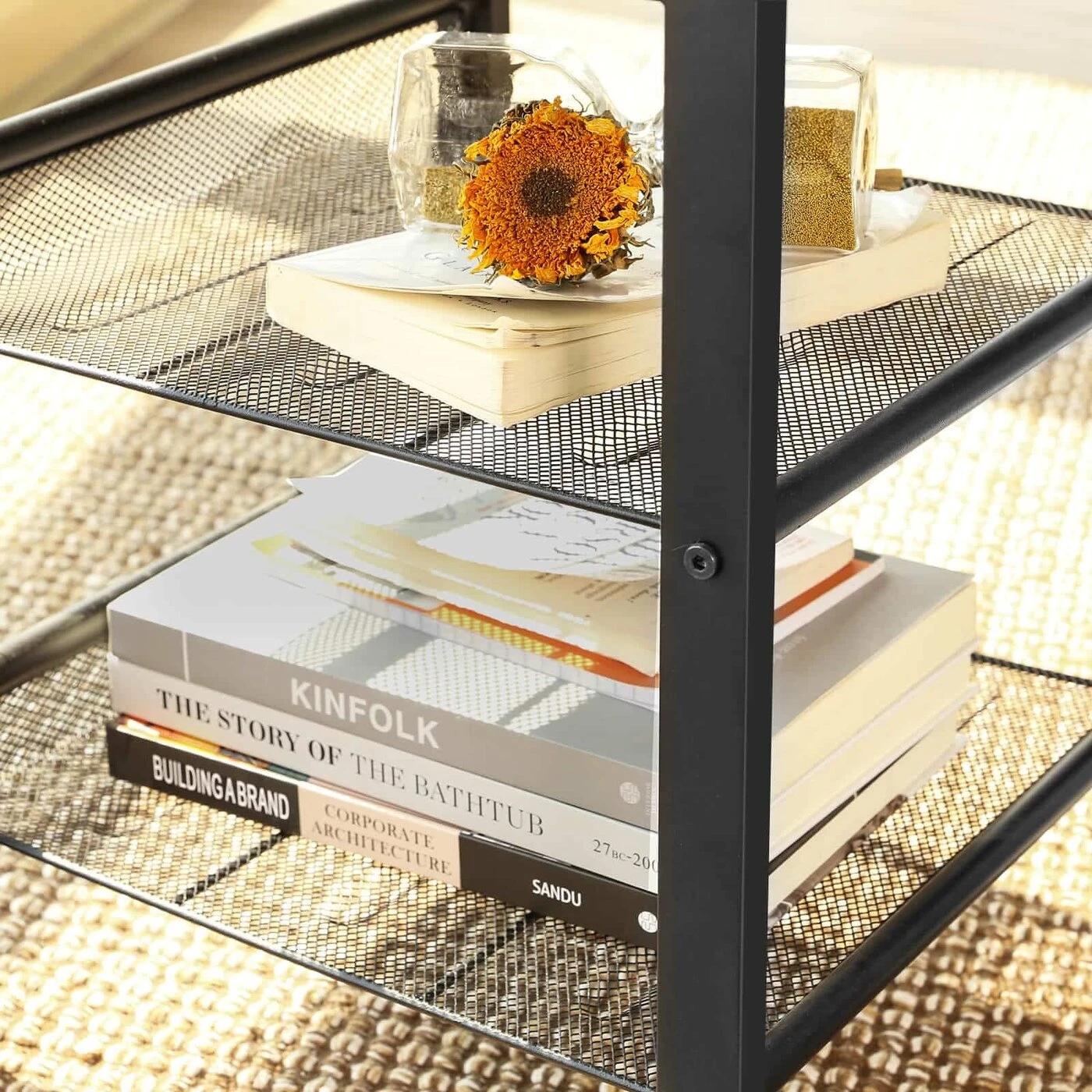 Aprašymas buvo automatiškai išverstas, gali pasitaikyti klaidų.Išsami informacija apie gaminį: - Spalva: vintažinė ruda-juoda - Medžiaga: medžio drožlių plokštės, plienas - Dydis: 40 x 40 x 55 cm (P x P x A) - Svoris: 3,8 kg - Maks. statinė medžio drožlių plokštės apkrova: 20 kg - Maks. . Statinė apkrova tinklelio lentynoje: 5 kg Pristatymo apimtis: - 1 x šoninis staliukas - 1 x šešiabriaunis raktas - 1 x priedų krepšys - 1 x rankinis (DE, EN, ES, FR, IT) VASAGLE Pastabos: - Prašome padėti gaminį, kad į jį nepatektų nei tiesioginiai saulės spinduliai, nei drėgmė.- Maksimali stalviršio apkrova yra 20 kg, tinklinių lentynų po 5 kg. Nedėkite ant jo sunkesnių daiktų.