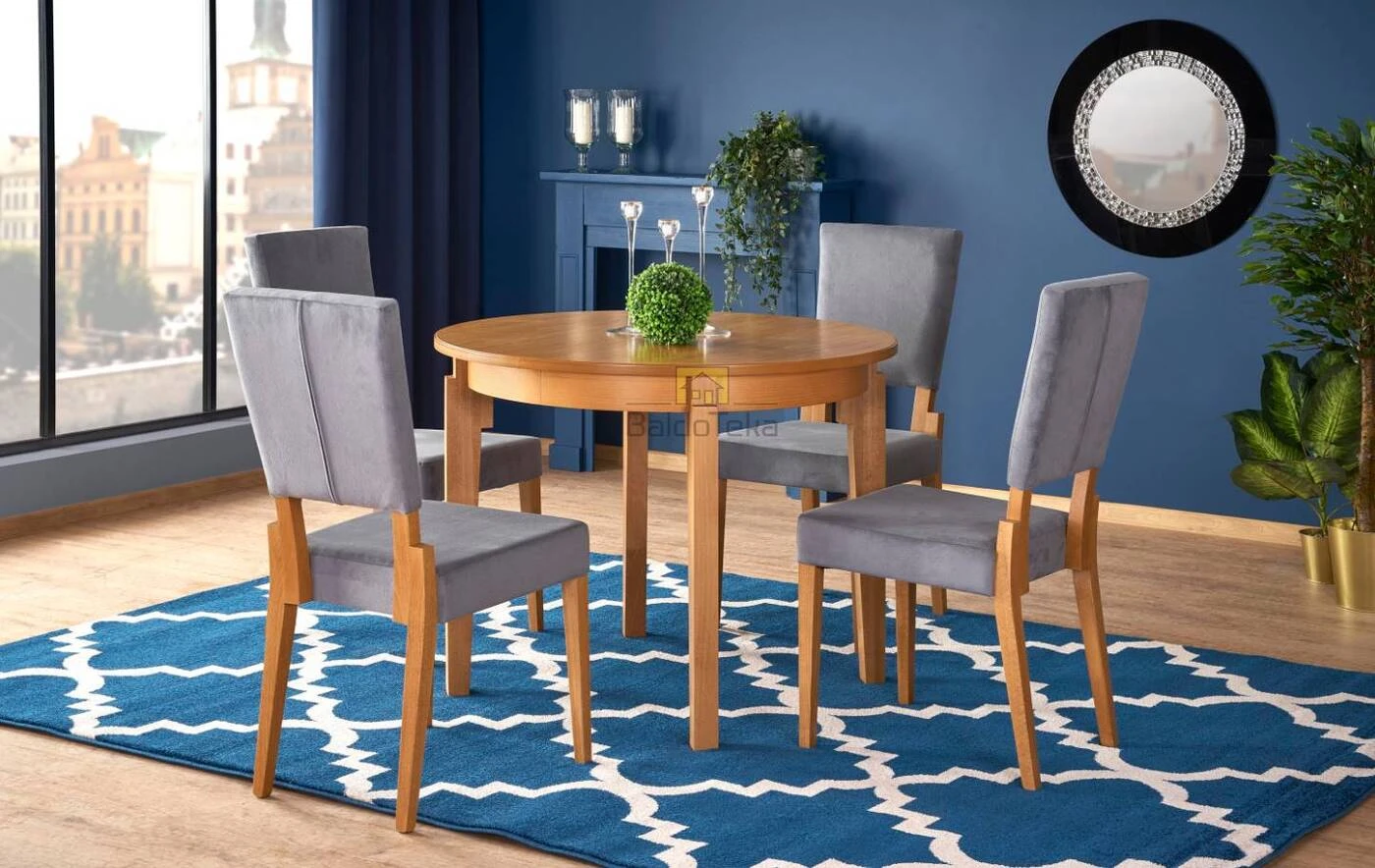 Minkšta kėdė medaus ąžuolo spalvaStilinga Granada 2725 kėdė pilku gobelenu