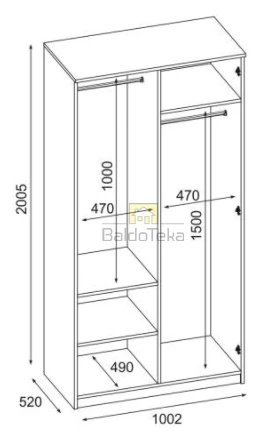 Plotis/Aukštis/Gylis: 100/200/53 cm.