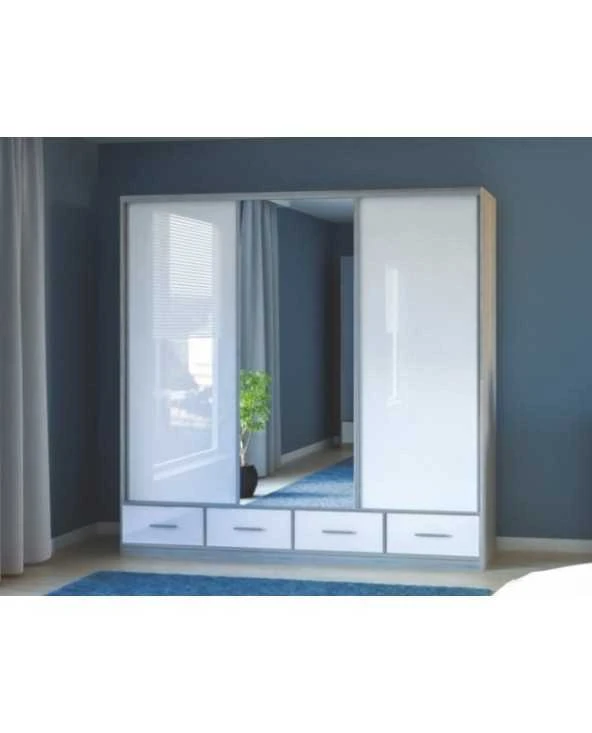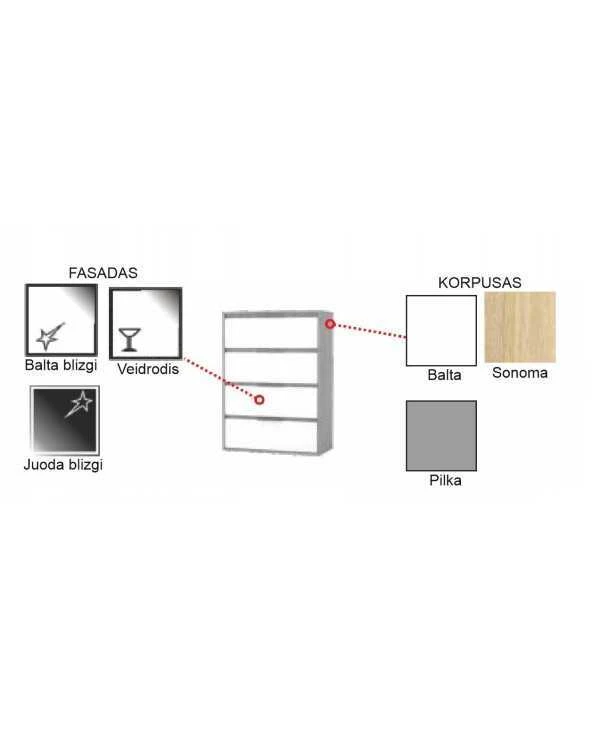 Vidurinės durys veidrodinės, kitos durys juoda blizgi arba balta blizgi. |