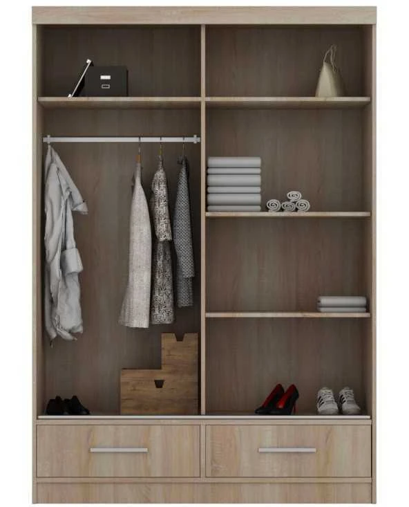 Durys: veidrodinės, dažytas stilkas (baltas, pilkas arba juodas). Plokštė: juoda, balta arba ąžuolas sonoma. |