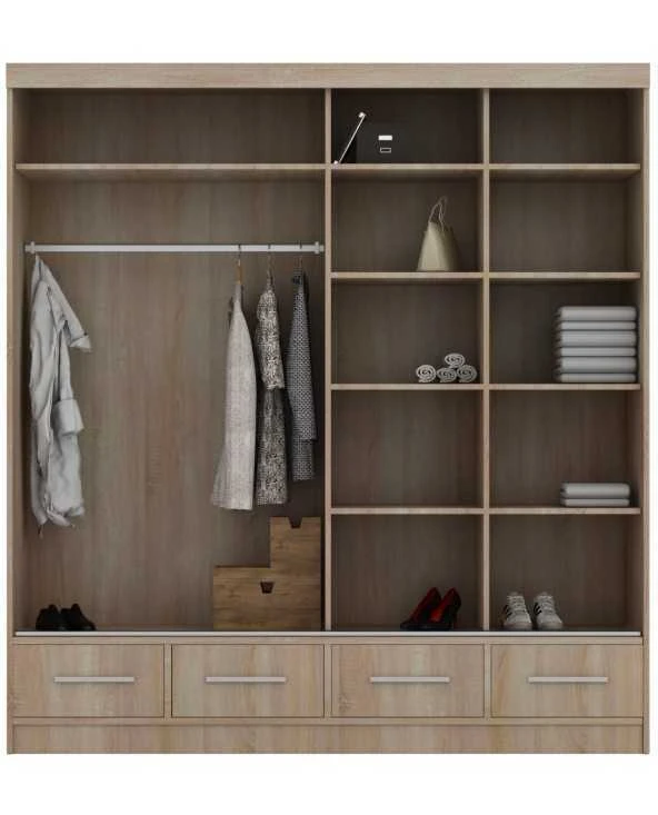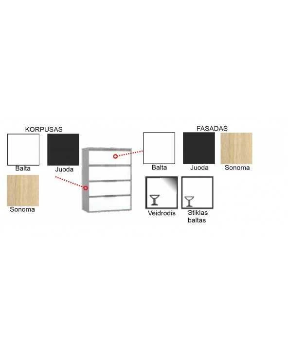 Durys: veidrodinės, dažytas stilkas (baltas, pilkas arba juodas). Plokštė: juoda, balta arba ąžuolas sonoma. |