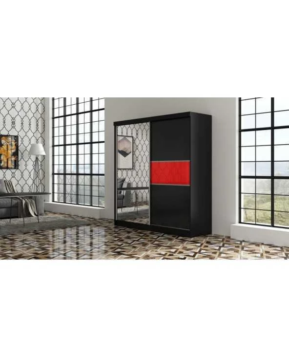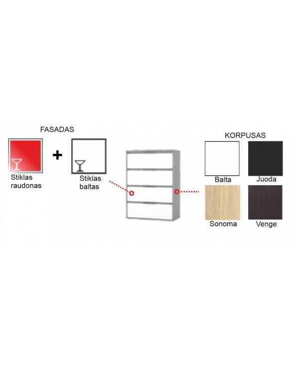 Durys veidrodinės, kitos durys stiklas baltas, intarpas – stiklas raudonas. |