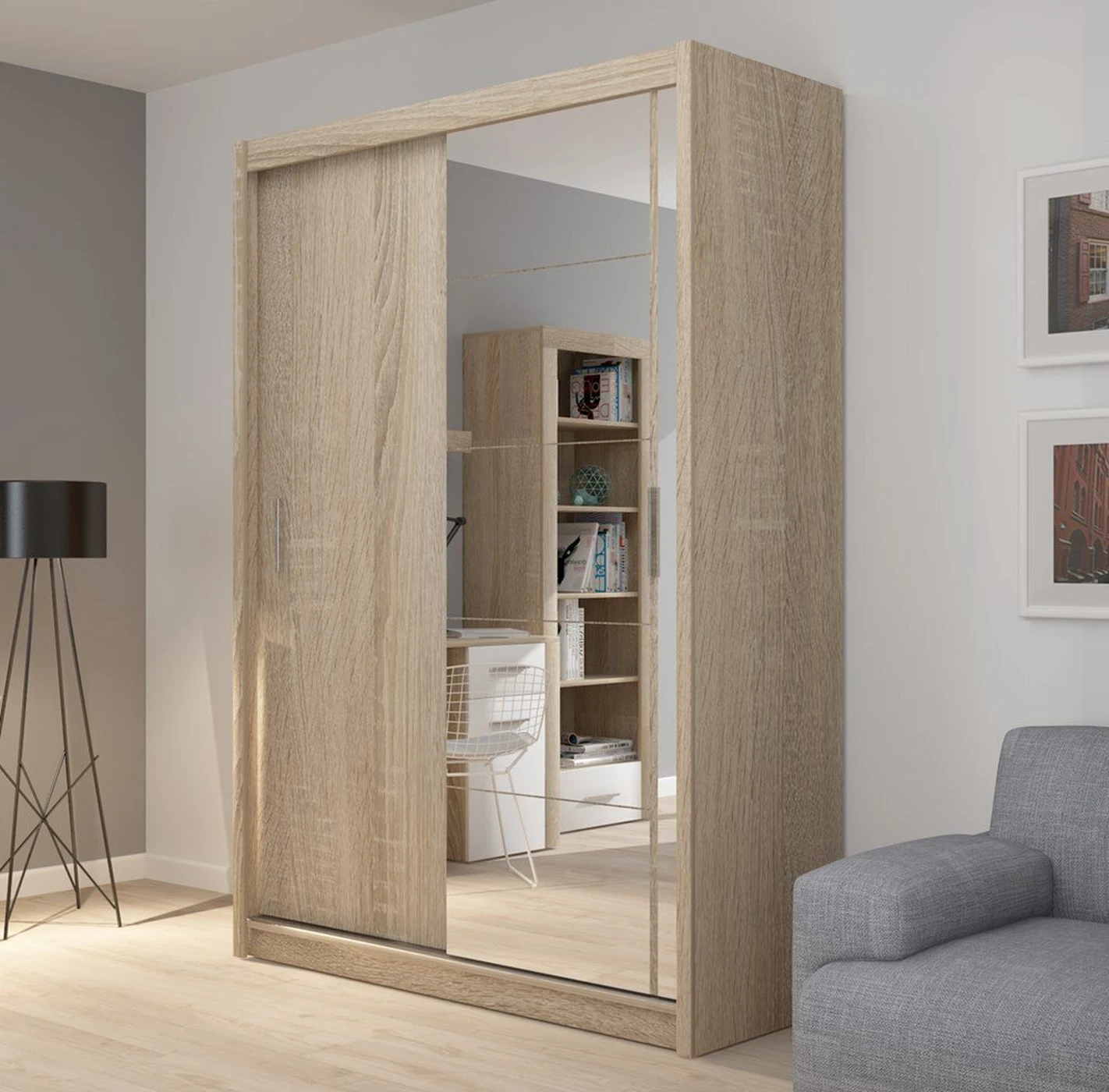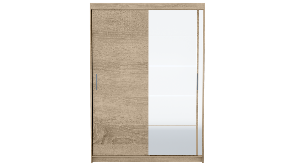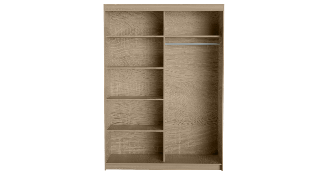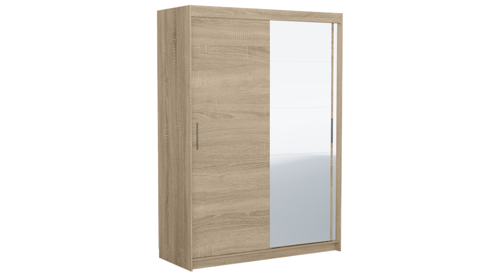 2-ų stumdomų durų spinta su veidrodžiu;Spinta pagaminta iš laminuotos medžio drožlių plokštės (MDP);Spintos kraštų apdailos medžiaga: ABS;Spintos išmatavimai: aukštis - 216 cm, plotis - 150 cm, gylis - 61 cm;Spalva: ąžuolo (sonoma);Vidinis spintos išplanavimas pateiktas antroje nuotraukoje;Su 1 veidrodžiu;Prekė bus pristatyta nesurinkta;