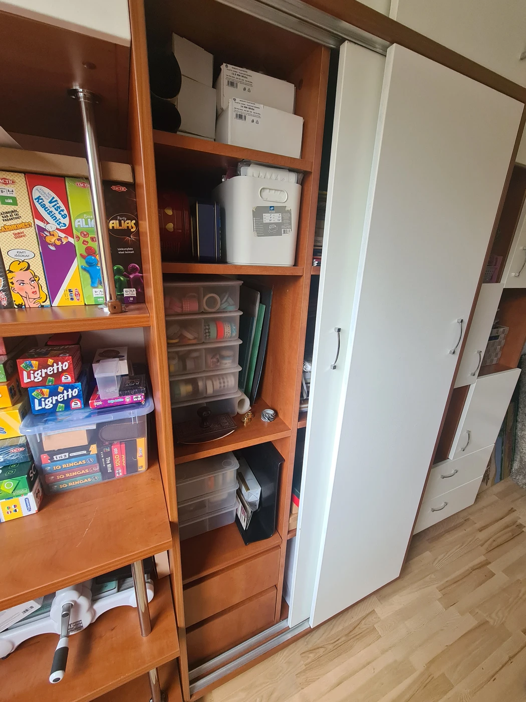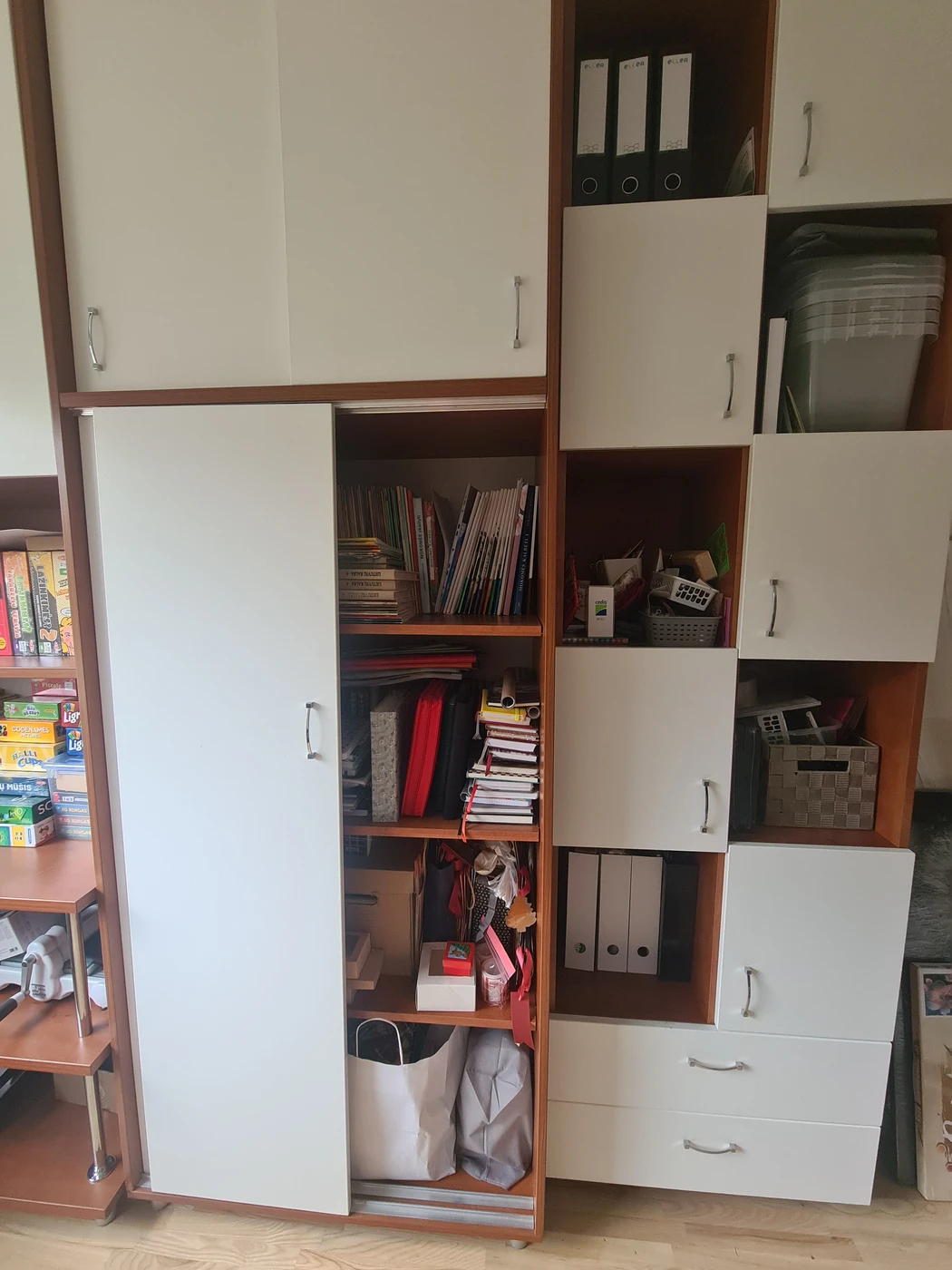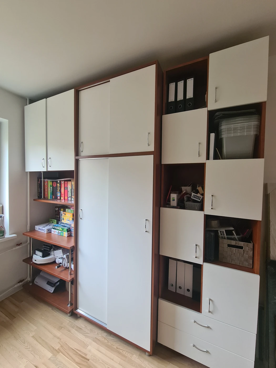 Naudota spinta. Buvo mėlynos durelės, nudažiau baltai. Vokiška firma. Dydis aukštis 245cm, plotis 252cm. Kartu su stalu parduodu. Plotis 51, ilgis 90,5, aukštis 74. Atsiimti Kaune. P.S. neparduodu daiktų.