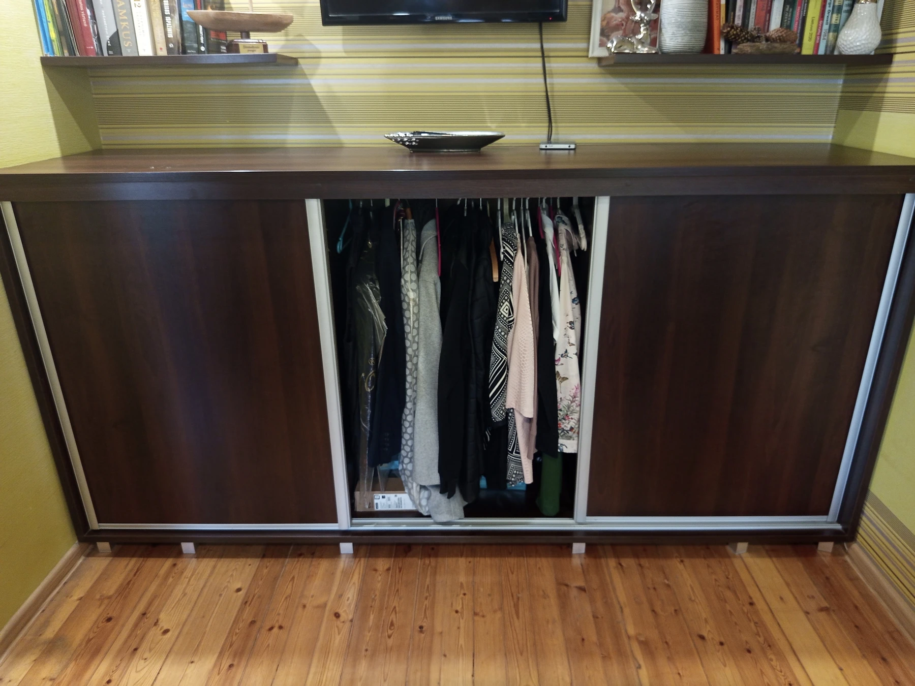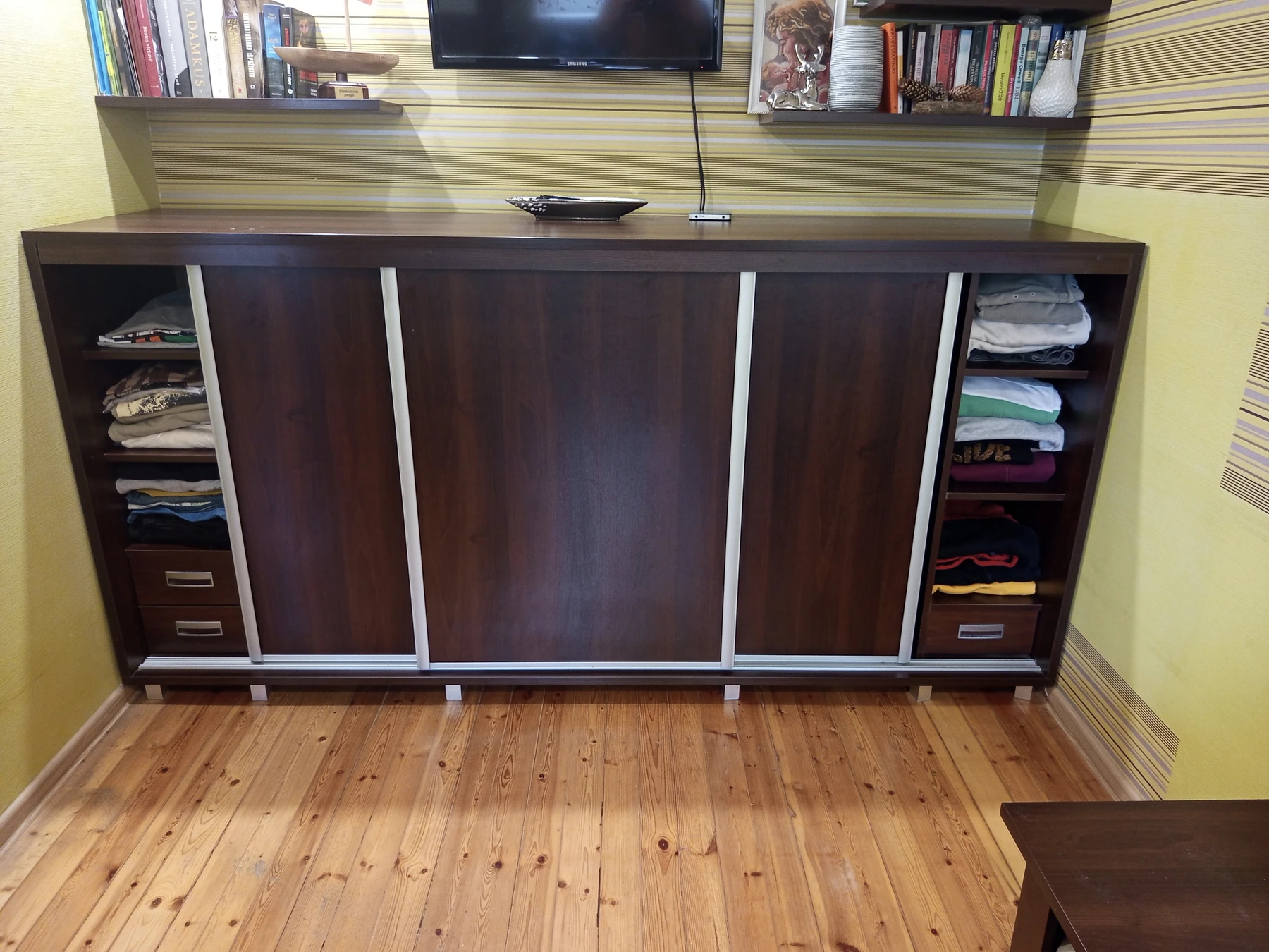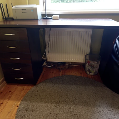 Parduodami naudoti kambario baldai: spinta - komoda: 245 x 60 x 122, rašomasis stalas: 140 x 65 x 80, pastatoma lentyna: 70 x 30 x 90.