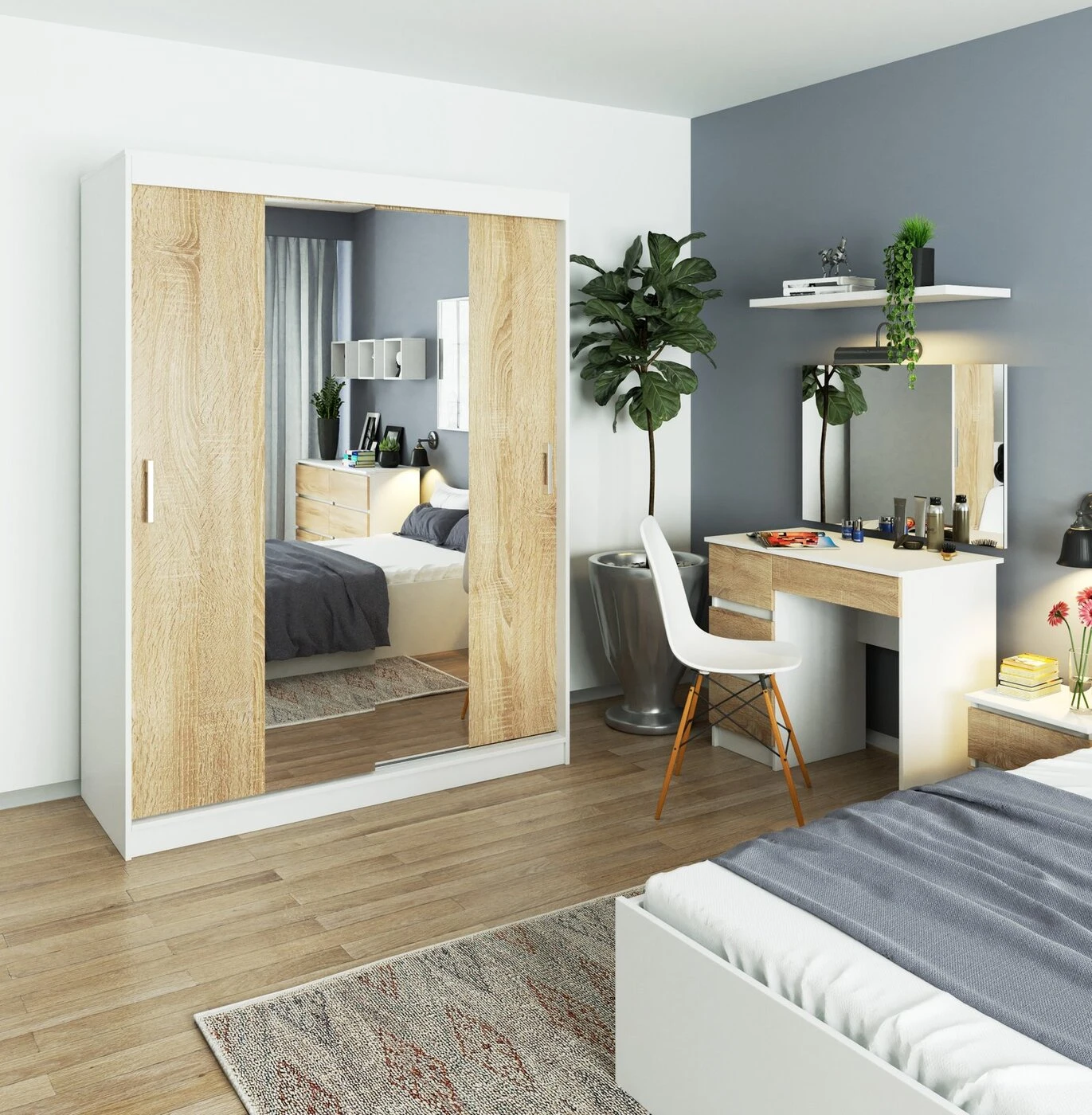 Aprašymas buvo automatiškai išverstas, gali pasitaikyti klaidų. 150 cm CLP stumdoma spinta sonoma pavėsyje leis pasirūpinti reikiama erdve miegamajame ar persirengimo kambaryje, kurią galėsime panaudoti įvairiems daiktams susidėti ne tik rūbų pavidalu. , bet ir, pavyzdžiui, atsarginių lovatiesių. Tai, kaip valdome atitinkamus baldus, priklauso nuo mūsų individualių poreikių. Spintoje sumontuotas labai praktiškas ir naudingas veidrodžio formos elementas, kuris suteikia galimybę įsitikinti, ar pasirinktas stilius yra tinkamas. Taip pat galime sėkmingai patalpinti baldą prieškambaryje, svetainėje ar jaunimo kambaryje. Mūsų turimos vietos aptariamam gaminiui užtenka dviem žmonėms. Pristatomas stumdomos spintos modelis sujungia nesenstantį charakterį su dideliu funkcionalumu ir universalumu, todėl puikiai tiks mėgstantiems žmonėms naudingų ir praktinių sprendimų. Gaminys turi daug privalumų dėl to, kad jame, be kita ko, naudojama: patvari, tvirta ir aukštos kokybės laminuota plokštė li> daug lentynų ir drabužių kabyklos, suteikiančios puikias erdvės valdymo galimybes, aliuminio kreiptuvai, leidžiantys be problemų slysti, o tiksliau – naudoti durys. 150 cm stumdoma spinta yra vienas iš elementų, įtrauktų į CLP baldų sistemą, leidžiantis sukurti pilną komplektą, kuriuo galėsite įrengti daugiau nei vieną miegamąjį . Be to, estetine gaminio apdaila buvo pasirūpinta naudojant ABS apvadus, skirtus kraštams faneruoti.