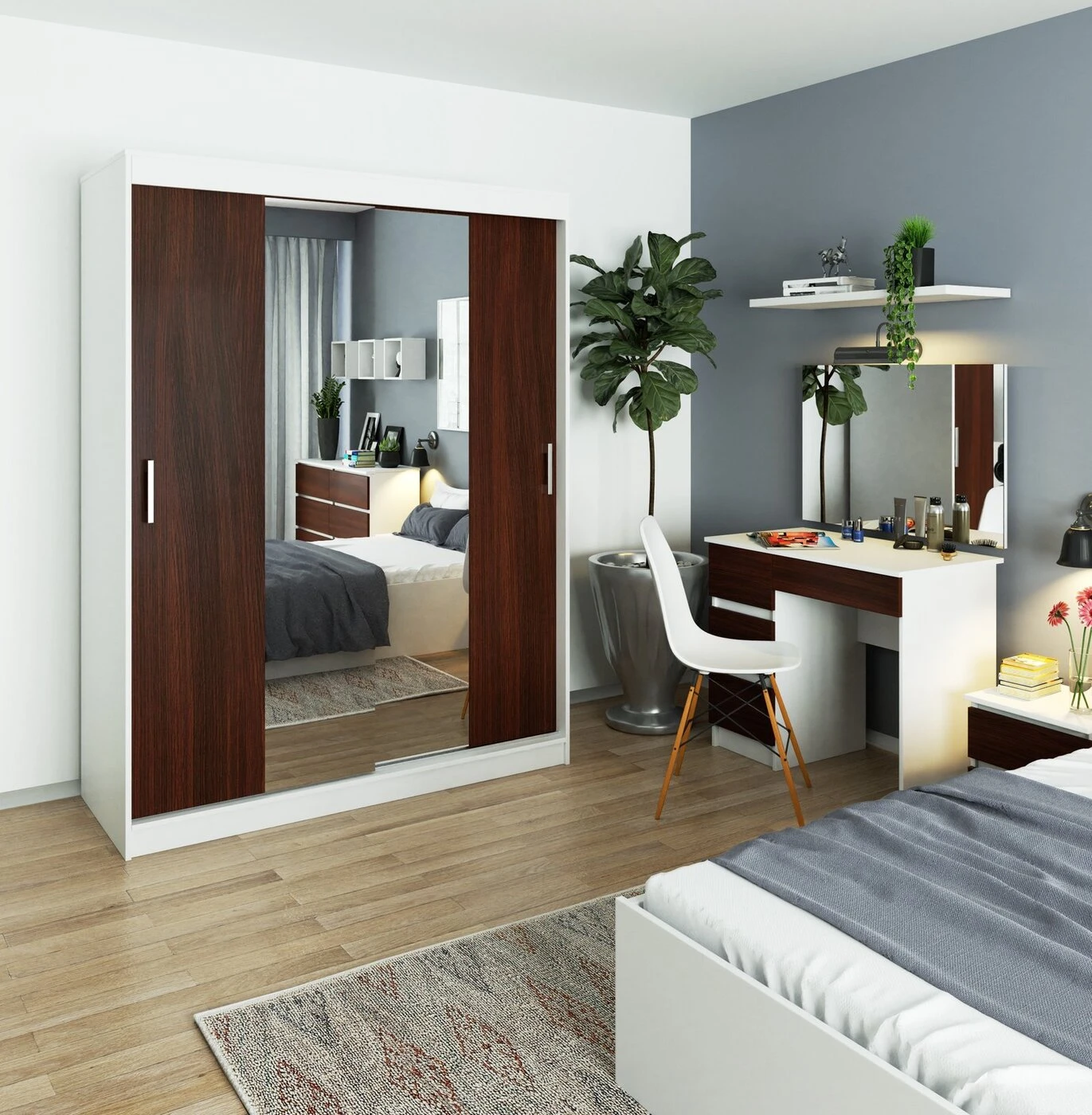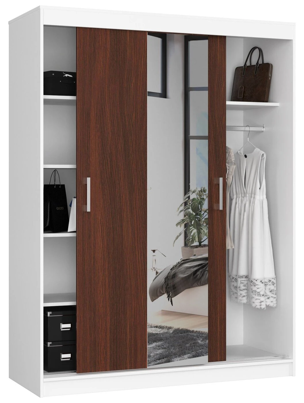 Aprašymas buvo automatiškai išverstas, gali pasitaikyti klaidų. Didelė CLP MONO spinta su veidrodžiu pagaminta iš laminuotos dviejų spalvų baldinės plokštės., baltas baldų korpusas kontrastuoja su tamsiomis, tamsiai rudos spalvos spalvos durimis. Tačiau stumdomos durys nėra iki galo padengtos laminatu. Jie suprojektuoti taip, kad centrinė fasadų dalis yra veidrodinis lakštas, kuris suteikia baldams lengvumo, o patalpai suteikia optinio padidinimo. Spintos vidus padalintas į dvi vertikalias dalis. Kairėje yra 5 plačios ir gilios lentynos, o dešinėje - 1 lentyna spintos viršuje ir po ja sumontuotas rūbų bėgelis. CLP MONO spintos su stumdomomis durimis privalumai: p> baldų talpa - spinta yra 200 cm aukščio, 150 cm pločio ir 60 cm gylio; didelė erdvė drabužiams pakabinti ; 6 patogiai išdėstomos lentynos; dviejų spalvų dizainas, padidinantis išdėstymo galimybes; didelis, funkcionalus veidrodis, kuris papildomai leidžia optiškai padidinti patalpą, kurioje yra spinta ; kraštai apsaugoti ABS plastiku; pagaminti pagal CLP baldų sistemą, kurios dėka spinta gali būti derinama su kitų gamintojų baldai. Spinta CLP MONO, balta, tamsiai rudos spalvos su veidrodžiu puikiai atliks savo vaidmenį tiek spintoje, tiek miegamajame , jaunimo kambaryje, svetainėje ir net prieškambaryje ar koridoriuje. Puikiai tinka drabužiams ir apatiniams, taip pat viršutiniams drabužiams laikyti. Dėl savo universalaus dizaino ir paprastumo jis puikiai tiks prie modernios, skandinaviškos ir klasikinės kompozicijos.