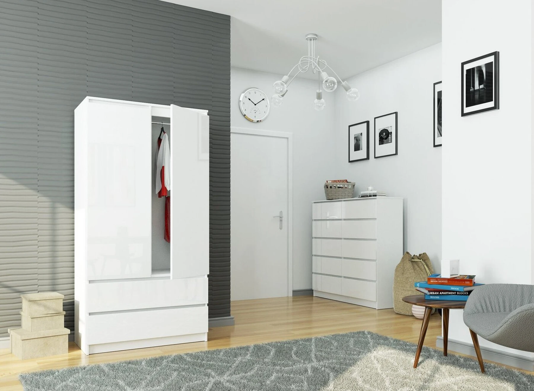 Aprašymas buvo automatiškai išverstas, gali pasitaikyti klaidų. - Spinta iš kronospan laminuotos plokštės, atspari dilimui - Korpusas iš 16 mm laminuotos plokštės, pagamintas Kronospan plokštės gamintojo - Stalčius fasadai pagaminti iš MDF plokštės Akrilas Blizgantis - Padalinta spinta - Kairėje pusėje yra lentynos / dešinėje yra drabužių kabykla - Stalčiai yra ant metalinių garsiojo GTV ritinėlių kreiptuvų įmonė - Kraštai padengti ABS briauna, užtikrinančia aukštą apsaugą nuo pažeidimų - Savarankiškai surenkama komoda - Pristatymo instrukcijos - Gamintojo garantija 24 mėn.