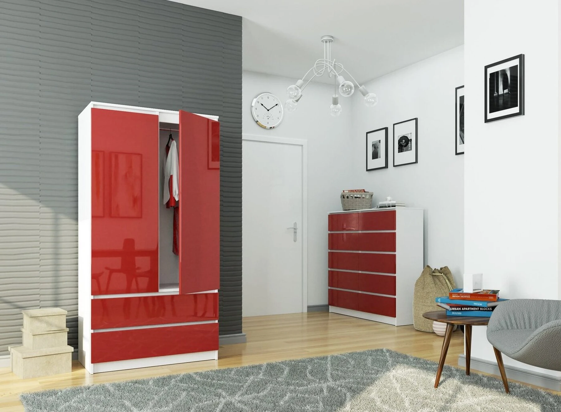 Aprašymas buvo automatiškai išverstas, gali pasitaikyti klaidų. Dviejų durų S 90 cm spinta baltos spalvos su raudonais blizgiais fasadais yra vienas iš tų baldų, kurie leis patogiai susidėti drabužius, juolab kad joje buvo įrengti du labai praktiški stalčiai. Dėl savo stiliaus puikiai tiks tiek prie modernių, tiek prie kiek klasikinesnių aranžuočių. Nepaisant gana mažo, kompaktiško dydžio, jis turi daugybę funkcinių sprendimų, kurie tikrai pasisakys produkto naudai priimant sprendimą jį įsigyti. Dviejų durų S 90 cm spinta dėl savo universalus, praktiškas ir kartu elegantiškas charakteris, puikiai tiks miegamajame, jaunimo, vaikų kambaryje, svetainėje, taip pat studijoje ar biure. Tiesą sakant, gaminį galima naudoti visur, kur reikia naudoti kompaktišką sprendimą, skirtą drabužių ir daugelio kitų dalykų laikymui. Pagrindiniai spintos privalumai: kokybiška laminuota plokštė, kurios dėka baldas atsparus trinčiai, stalčiai , lentynos ir drabužių kabykla, leidžianti tvarkyti drabužius, kraštų padengimas ABS briauna, kuri apsaugo nuo pažeidimų, GTV prekės ženklo kreiptuvai, kurie leidžia ramiam ir efektyviam stalčių atidarymui ir uždarymui. Baldai yra nebrangūs ir jiems suteikiama 24 mėnesių gamintojo garantija. Be to, jis skirtas savarankiškam surinkimui, kurį tikrai palengvins prie spintos pridedama instrukcija, tad surenkant patiems didelių problemų neturėtų kilti.