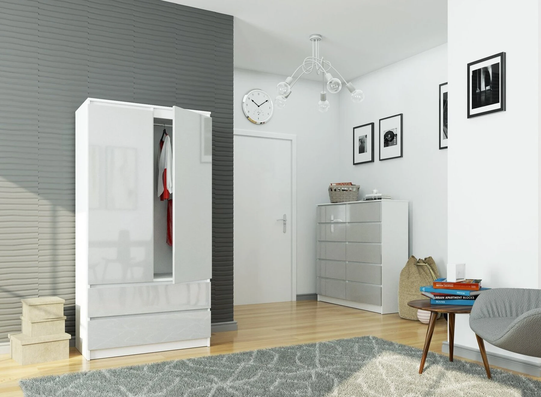 Aprašymas buvo automatiškai išverstas, gali pasitaikyti klaidų. - Spinta iš kronospan laminuotos plokštės, atspari dilimui - Korpusas iš 16 mm laminuotos plokštės, pagamintas Kronospan plokštės gamintojo - Stalčius fasadai pagaminti iš MDF plokštės Akrilas Blizgantis - Padalinta spinta - Kairėje pusėje yra lentynos / dešinėje yra drabužių kabykla - Stalčiai yra ant metalinių garsiojo GTV ritinėlių kreiptuvų įmonė - Kraštai padengti ABS briauna, užtikrinančia aukštą apsaugą nuo pažeidimų - Savarankiškai surenkama komoda - Pristatymo instrukcijos - Gamintojo garantija 24 mėn.
