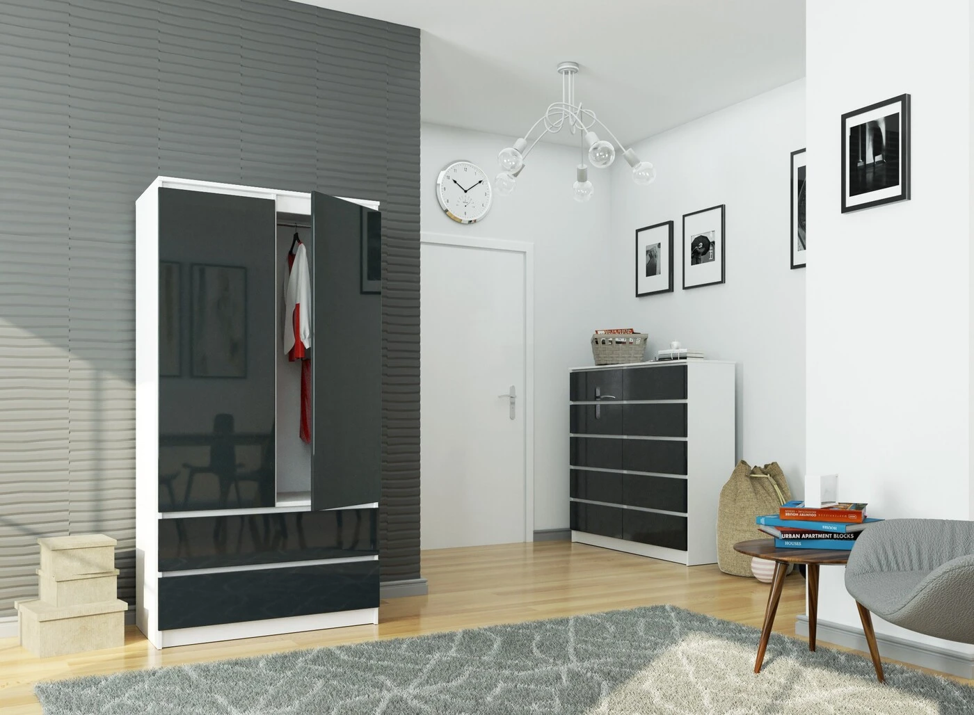 Aprašymas buvo automatiškai išverstas, gali pasitaikyti klaidų. Svetainė yra kiekvieno buto širdis – vieta poilsiui, poilsiui ir atsipalaidavimui po darbo. Jei turite nedidelį plotą, neturite vietos prieškambaryje, svetainė yra ta vieta, kur reikia pasidėti drabužių spintą. Spinta svetainėje gali atrodyti patraukliai – nebijokite šio sprendimo! Grafito balto atspalvio S 90cm2 spinta su dviem stalčiais puikiai tiks minimalistinėje, šviesioje svetainėje. Tai ypač naudingas sprendimas mažesniuose butuose – svetainės spinta sutalpins visus didesnius drabužius ar avalynę, todėl miegamasis bus erdvesnis. Šio modelio privalumai: > Spinta ir fasadai padengti trinčiai atsparia laminuota plokšte; Spinta padalinta – kairioji pusė padalinta į 4 praktiškas lentynas, o dešinėje pusėje yra striukių ir paltų juosta. Šis metodas leis išlaikyti tvarką ir skaidrumą. Madingas blizgaus grafito atspalvis derės prie ryškių spalvų interjero. Gražus kontrastas suteiks interjerui šiuolaikiškumo. ABS apvadu padengti kraštai apsaugos nuo pažeidimų ir įbrėžimų. Komplekte esančios instrukcijos palengvins surinkimą komoda. Gamintojas suteikia 24 mėnesių garantiją. Drabužių spinta neturi užgožti mažos svetainės. Jei turite nedidelę svetainę, prausimas jūsų kambaryje optiškai padidins ir apšvies kambarį. S 90 cm2 spinta – tai 180 cm aukščio ir 90 cm pločio baldas, kuris „nepavogs“ iš jūsų visos svetainės, o po ranka pasidės visus reikalingus drabužius ir daiktus.