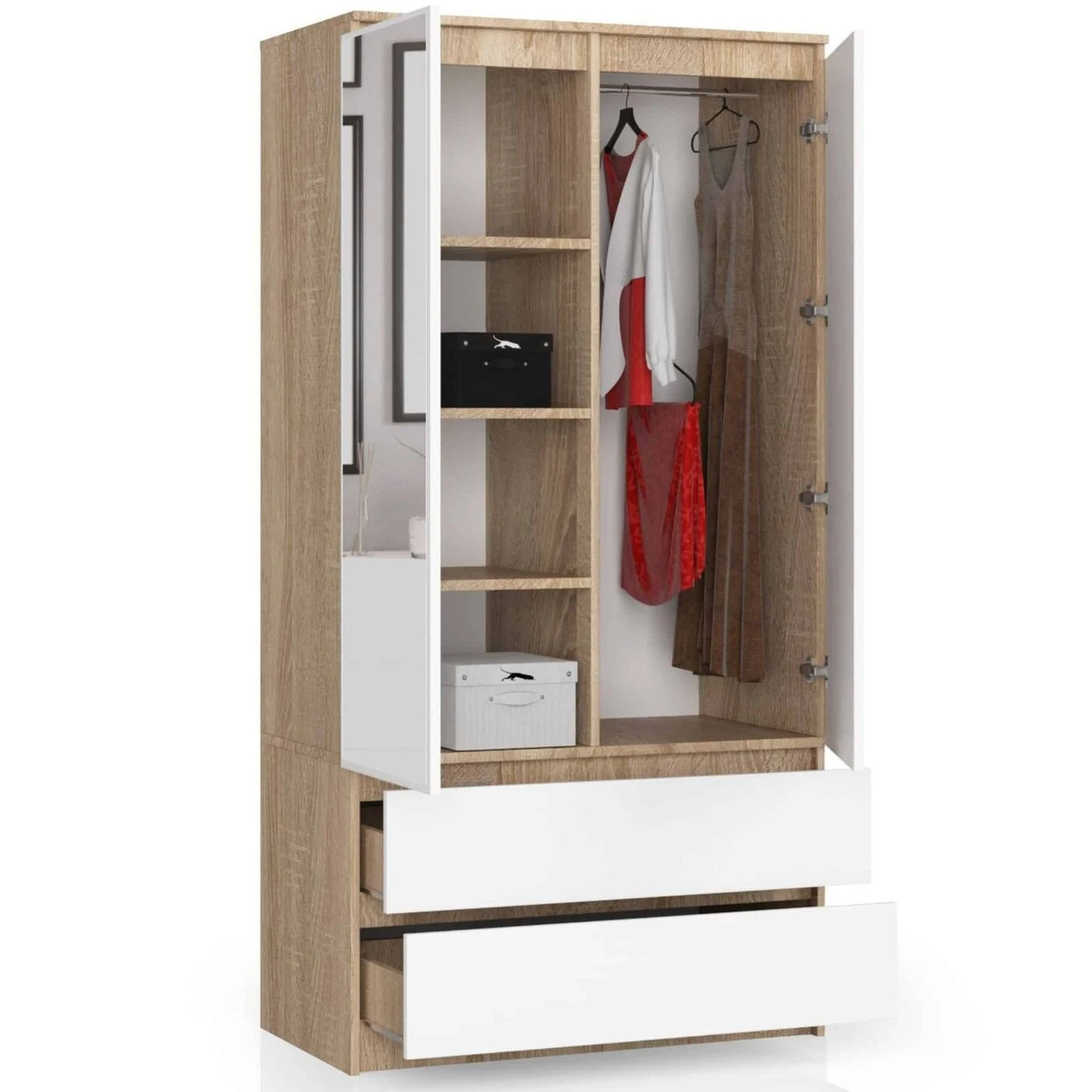 Aprašymas buvo automatiškai išverstas, gali pasitaikyti klaidų. Spintos yra svarbus baldas kiekvienuose namuose, leidžiantis išlaikyti tvarkingus drabužius ir tekstilę. Jie turėtų būti funkcionalūs ir erdvūs. Tokia pati kaip S 90 cm spinta su dviem durimis, veidrodžiais ir dviem stalčiais. Baldai yra įdomių ir akį traukiančių spalvų: baltos ir sonomos derinio. Puikiai tinka svetainei, miegamajam ir svetainei. S 90 cm sonoma/baltos spalvos spinta su daugybe privalumų. Pateikiame svarbiausius iš jų: ilgaamžiškumas – baldai pagaminti iš kokybiškos Kronospan laminuotos plokštės, yra atsparūs trinčiai, pažeidimai ir įbrėžimai, funkcionalumas - spintos durelėse yra kabykla ir veidrodėliai, todėl lengviau pasirinkti stilių, patogus naudojimas - stalčiai šiek tiek juda ant metalinių ritinėlių kreiptuvų , kurie atkeliauja iš geros reputacijos įmonės GTV, atsparumas – baldų kraštai padengti ABS apvadu, todėl jie atsparūs pažeidimams, talpa – stalčiai ir lentynos suteikia daug laisvos vietos, todėl lengviau palaikyti tvarką. li> aukšta estetika – spinta buvo kruopščiai pagaminta, o sonomos ir baltos spalvos derinys suteikia baldo išvaizdą itin stilingai, palanki kaina, garantinis laikotarpis 24 mėn. Spinta skirta savaiminiam surinkimui, tam padeda prie užsakymo pridedama instrukcija. Baldai yra patvarūs ir atsparūs pažeidimams, todėl tarnaus ilgus metus. Tai labai modernus pasiūlymas, tinkantis įvairioms interjero detalėms.