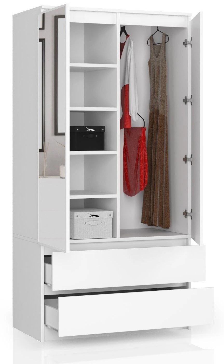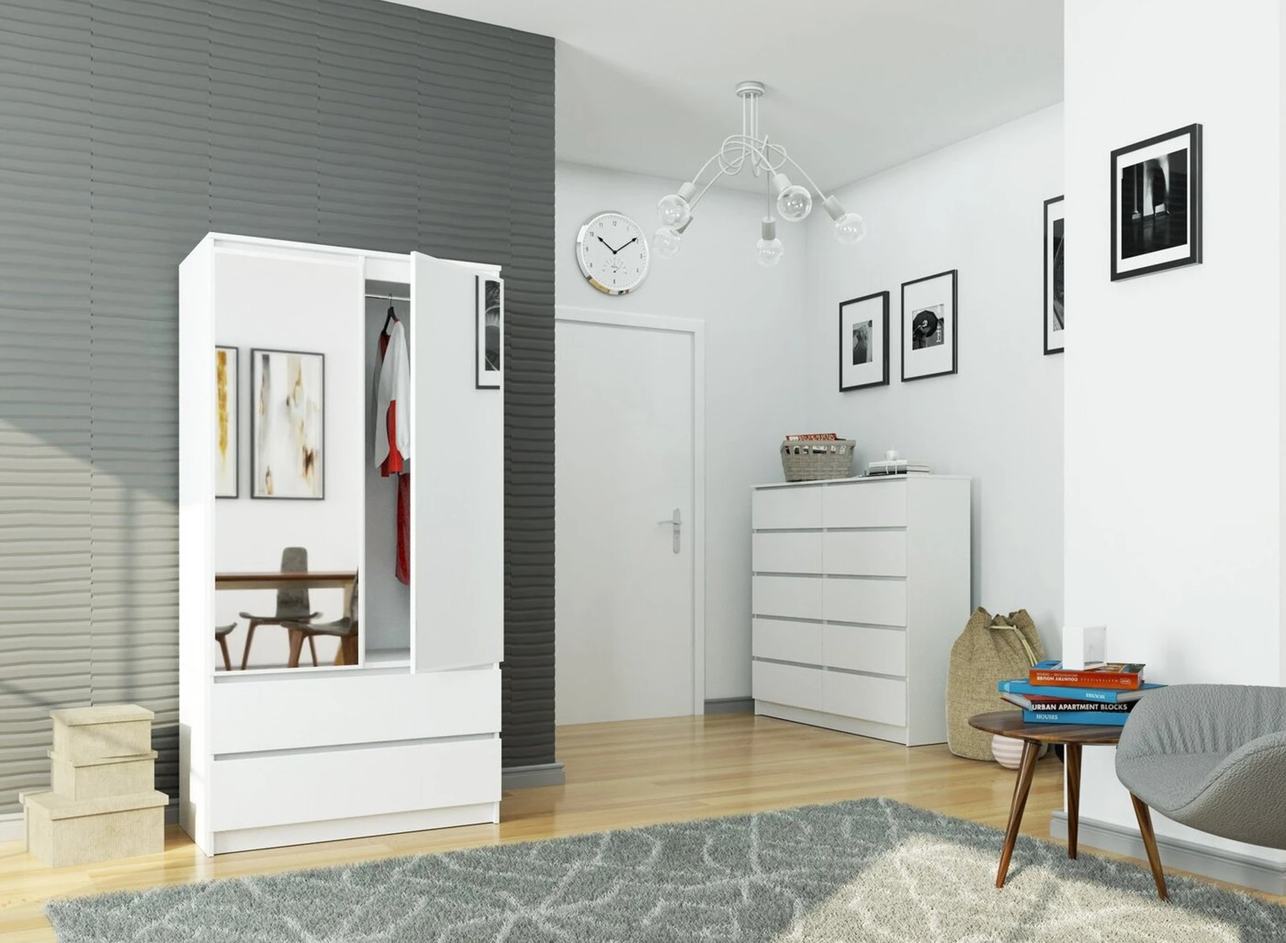 Aprašymas buvo automatiškai išverstas, gali pasitaikyti klaidų. - Spinta iš laminuotos plokštės Kronospan, atspari dilimui - Stalčių fasadai iš laminuotos plokštės - Padalinta spinta - Kairėje pusėje yra lentynos / dešinėje šone yra drabužių kabykla - Ant abiejų durų priklijuoti veidrodžiai - Stalčiai yra ant metalinių garsios GTV kompanijos ritininių kreiptuvų - Kraštai padengti ABS briauna, užtikrinančia aukštą apsaugą nuo pažeidimų - Savarankiškai surenkama komoda - Pristatymo instrukcijos – Gamintojo garantija 24 mėn.