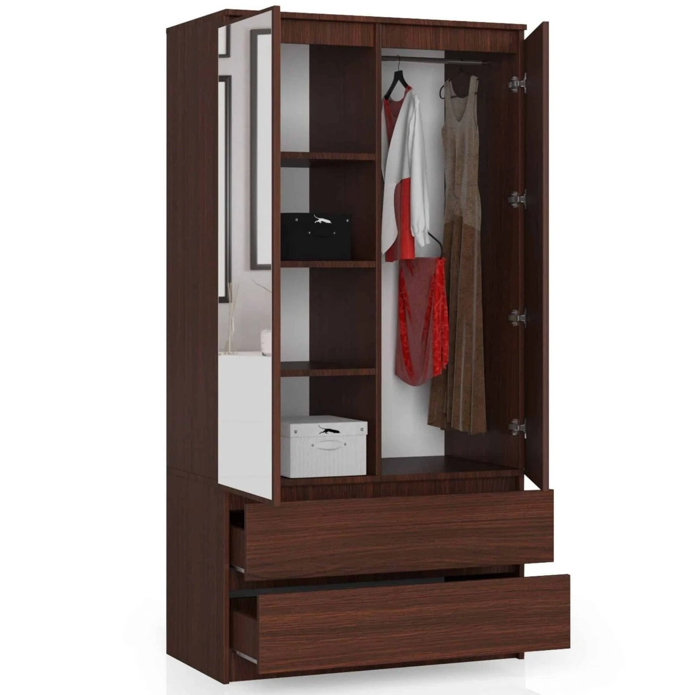 Aprašymas buvo automatiškai išverstas, gali pasitaikyti klaidų. Spinta S derina klasikinį dizainą su praktišku, šiuolaikišku dizainu. Dizaineriai skyrė vietos elegantiškiems marškiniams ir suknelėms, taip pat batams, rankinėms ir sportiniams kostiumams. Taip pat bus vietos kitiems smulkmenoms ar smulkmenoms. Kitos spintos dažnai atrodo sunkios ir pribloškiančios, todėl sunku rasti tokią, kuri atitiktų jūsų dekorą. Čia tokios problemos nėra., tamsiai ruda spalvą galima derinti prie įvairių interjerų. Jis pabrėš šviesios, šiuolaikiškos svetainės charakterį arba harmoningai papildys jaukų miegamąjį. Veidrodžiai optiškai padidina ir šviesina kambarį. Čia pateiktas modelis atitinka visus kriterijus, kuriuos turi atitikti ideali spinta: praktiškai išvystyta erdvė - vienoje pusėje yra baras pakaboms, kitoje lentynos, o apačioje du erdvūs stalčiai, ilgaamžiškumas - naudojome geros kokybės laminuotą plokštę ir pridėta apsauga nuo pažeidimų, universalumas - graži, klasikinė spalva tinka daugeliui interjerų, patogumas - S spintoje tilps įvairių tipų drabužiai ir aksesuarai, o juos pasimatuojant ir komplektuojant apranga, jums nereikia bėgti prie veidrodžio kitame kambaryje, prieinama kaina. Dėl dilimui atsparios plokštės ir ABS apsaugos spinta ilgai išliks gražia išvaizda. Stalčiai išstumiami tyliai ir sklandžiai, nes naudojami metaliniai ritininiai kreiptuvai. Mechanizmas atsparus iškraipymams, todėl stalčiai nestringa. Spintelė skirta montuoti savarankiškai. Verta jį derinti su kitais baldais iš mūsų CLP sistemos.