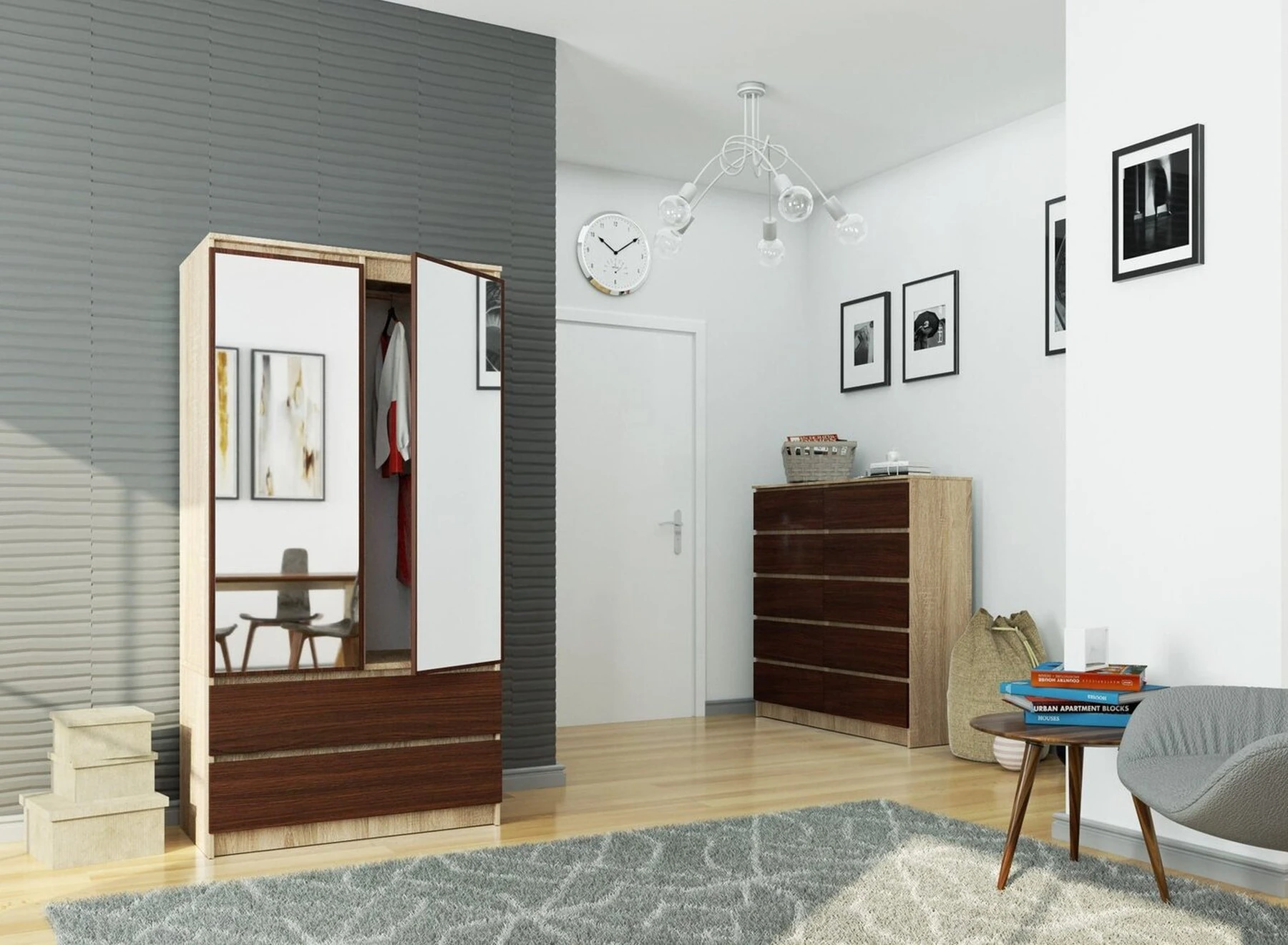 Aprašymas buvo automatiškai išverstas, gali pasitaikyti klaidų. Moderni ir kartu labai praktiška dviejų durų spinta, pagaminta iš kokybiškos, dilimui atsparios laminuotos plokštės. Spintos fasaduose yra padalintas veidrodis, kuris vizualiai padidins bet kurį kambarį. Apatinėje dalyje yra du ištraukiami minimalistinio varianto stalčiai be rankenų. Lentų kraštai, įskaitant stalčius, padengti ABS laminatu, kuris padidina jų ilgaamžiškumą ir apsaugo nuo pažeidimų. S 90 sonoma /, tamsiai ruda spinta tiks ir miegamajame, ir prieškambaryje. Vienoje pusėje yra trys lentynos. Kita vertus, yra baras, skirtas drabužiams kabinti ant pakabų. S90 spinta išsiskiria: minimalistinis ir nesenstantis stilius, aukštos kokybės elementai iš Kronospan laminuotos plokštės, stalčiai, stumdomi ant metalinių GTV ritinėlių kreiptuvų. Savarankiškai surenkama spintelė – pakuotėje yra detali surinkimo instrukcija. Visos dalys yra tinkamai pritvirtintos, kad transportuojant nebūtų pažeistos.