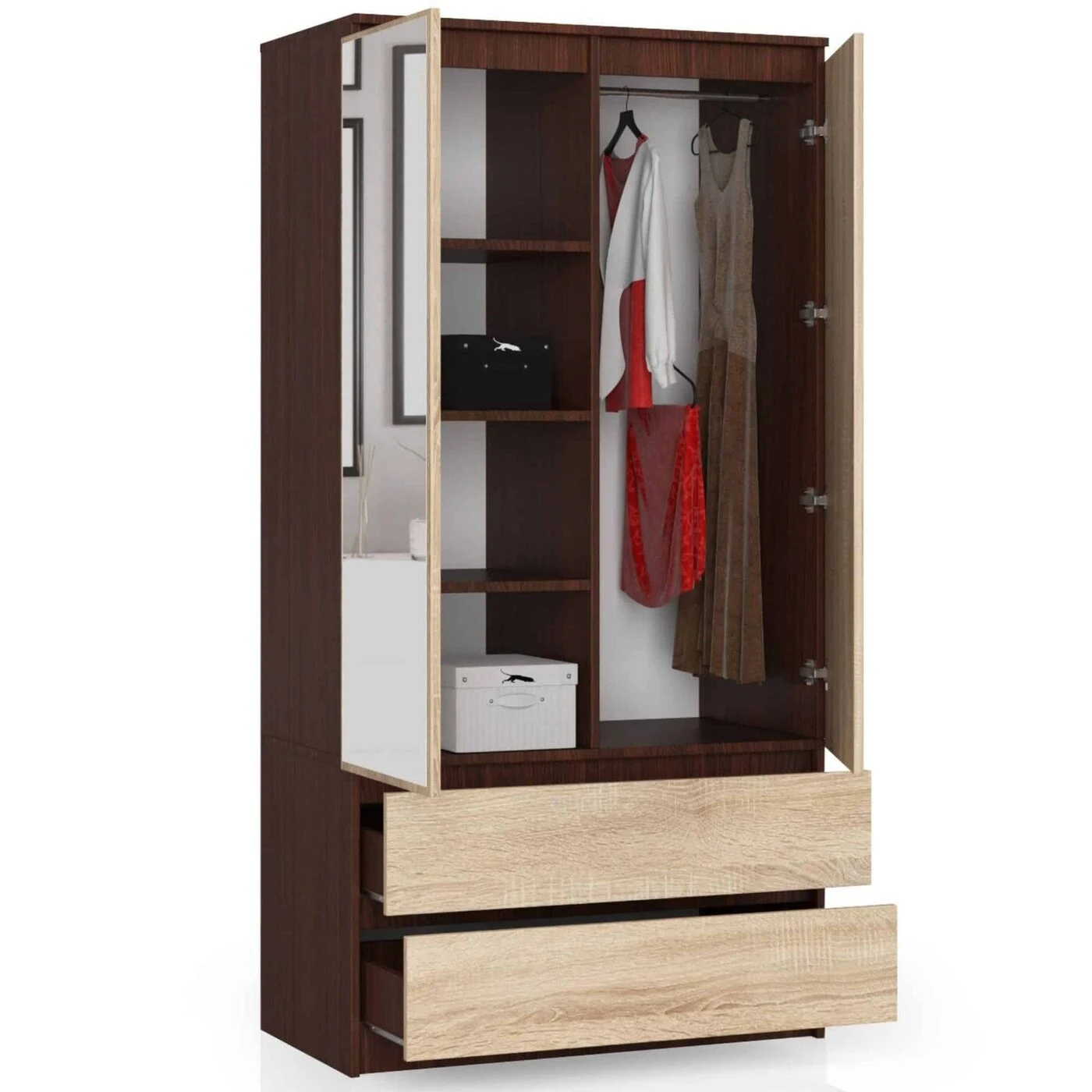 Aprašymas buvo automatiškai išverstas, gali pasitaikyti klaidų. Pristatomos spintos yra funkcionalumo ir modernaus dizaino derinys. Pagamintos iš aukštos kokybės laminuotų plokščių, pasižymi padidintu atsparumu dilimui ir kitiems mechaniniams pažeidimams. Spintelių kraštai – kaip labiausiai pažeidžiamas elementas – buvo papildomai sutvirtinti naudojant ABS apvadus. Dėl to baldai išlaiko nepriekaištingą išvaizdą visą savo tarnavimo laiką. Dviejų spalvų temų derinys – tamsi, gili, tamsiai rudos spalvos ir šviesi, šalta sonoma – sukuria itin originalų ir šiuolaikišką dizainą. Baldai pasižymi išskirtiniu funkcionalumu. Viršutinė jo dalis – dviguba spinta su keturiomis lentynomis ir drabužių kabykla. Įdomus ir originalus sprendimas šiame modelyje yra durų varčios, kurias uždarius susidaro didelis veidrodis. Apatinėje spintos dalyje sumontuoti du stalčiai, judantys ant metalinių GTV ritinėlių kreiptuvų. Dėl tokios gerai apgalvotos struktūros spinta atrodo lengva ir tuo pačiu itin talpi. Tai tikrai bus idealus sprendimas moderniai svetainei, svetainei, prieškambariui, drabužių spintai ar miegamajam. Spinta iš laminuotos medžiagos lenta Kronospan, pasižyminti patobulintomis techninėmis ir naudingomis savybėmis bei aukštomis vizualinėmis vertėmis. Spinta dėl specialiai sukurtos konstrukcijos yra erdvi, o ant durų varčios sumontuotas veidrodis suteikia visišką naudojimo komfortą ir suteikia patalpą ryškesnis CLP baldų sistema, leidžianti reguliuoti kitus įrangos elementus, leidžia sukurti vienalytės gaminių linijos baldų komplektą.