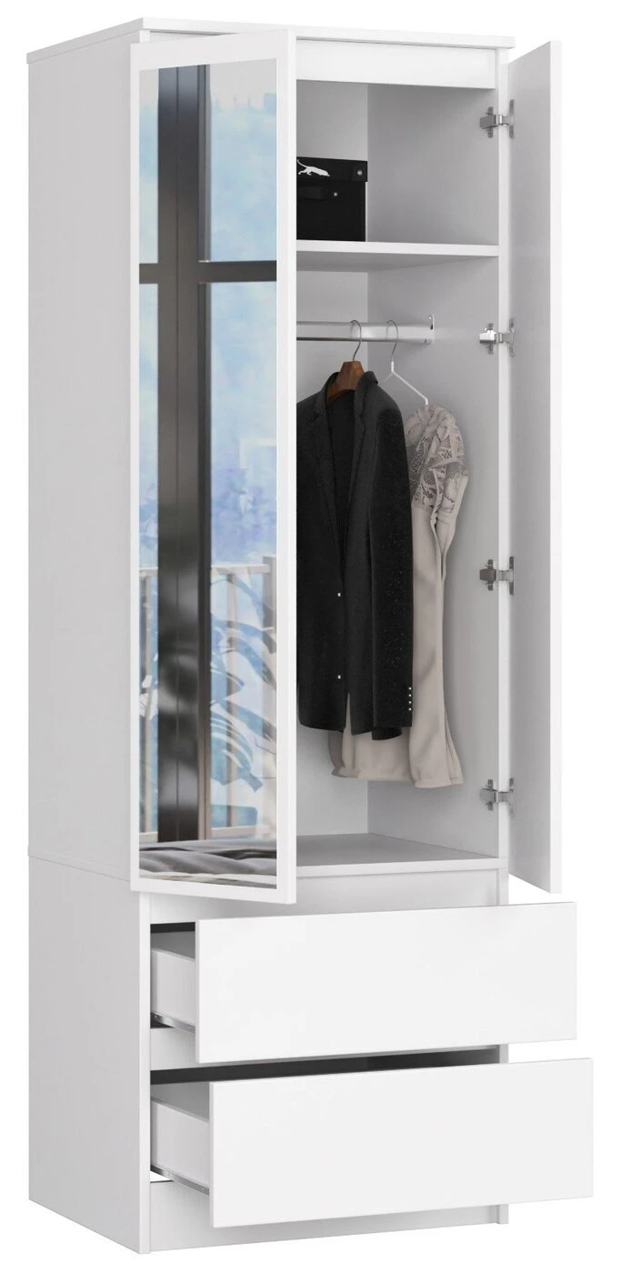 Aprašymas buvo automatiškai išverstas, gali pasitaikyti klaidų. Miegamasis yra kiekvienų namų širdis, vieta, itin svarbi namų ūkio nariams. Būtent čia jie pradeda kiekvieną dieną, kurdami įvairius stilius. Norint gerai išdėstyti drabužius ir avalynę, jums reikės 2 durų spintos su stalčiais, kurią turime išpardavimas. Baldai sukurti madinga, balta spalva, kuri puikiai dera su visais atspalviais. 60cm spinta su veidrodžiu neužima daug vietos ir geba sutalpinti visus reikalingus daiktus miegamajame. Galima sėkmingai patalpinti ir kitoje patalpoje, pavyzdžiui, svečių kambaryje ar prieškambaryje. Mūsų internetinėje parduotuvėje rasite baltą 60cm spintą palankia kaina. Klientų susidomėjimą sukelia pajėgumai ir praktinis pritaikymas. Šis įspūdingas baldas puikiai dera su kitais moderniais paprastais baldais, kurie taip pat yra mūsų pasiūlymo dalis. Tikimės, kad funkcionali spinta pateisins visus jūsų lūkesčius. - Spinta iš laminuotos plokštės Kronospan, atspari dilimui - Stalčių fasadai iš laminuotos plokštės - Stalčiai juda ant garsios GTV kompanijos metalinių ritininių kreiptuvų - Kraštai padengti ABS briauna, kad būtų užtikrinta didelė apsauga nuo pažeidimų. /> - Savarankiškai surenkama komoda - Pateikiama instrukcija - Gamintojo garantija 24 mėn.