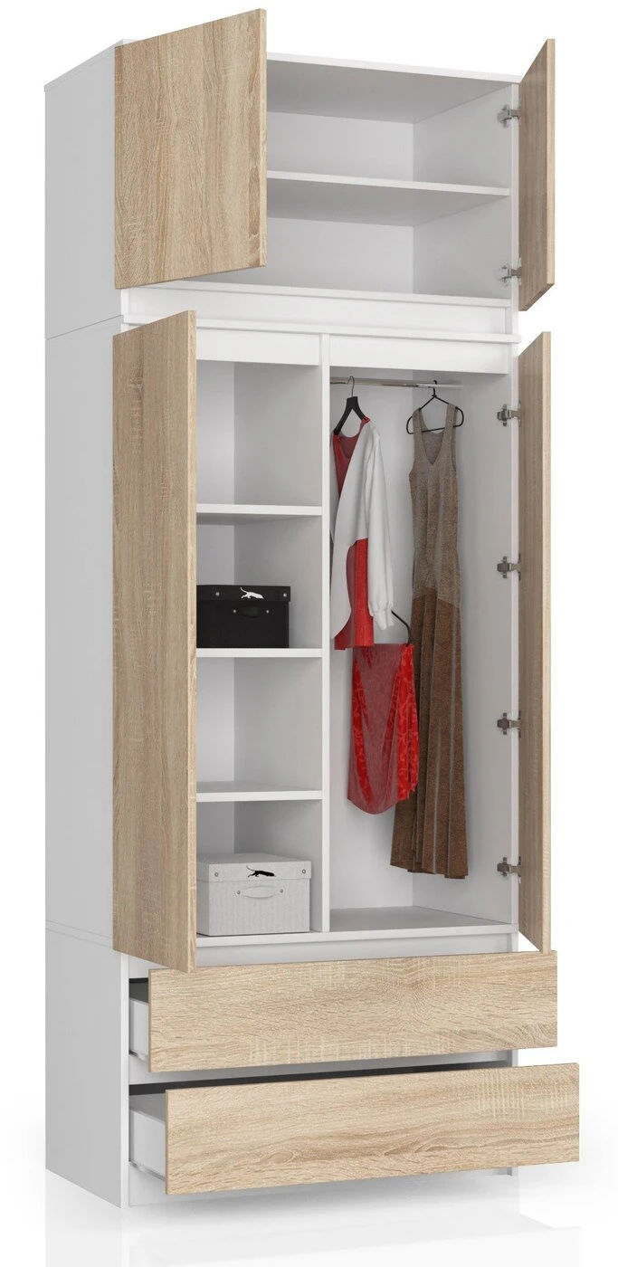 Aprašymas buvo automatiškai išverstas, gali pasitaikyti klaidų. Modernumas ir originalumas – tai dvi svarbiausios savybės, kuriomis galima apibūdinti pristatomas spintas. Jų gamybai naudojamos laminuotos plokštės, pasižyminčios dideliu atsparumu bet kokiems mechaniniams pažeidimams. Krašteliai pagaminti iš ABS tipo briaunų, kurios labai gerai apsaugo jas nuo trinties. Dėl to baldai net ir intensyviai naudojant daugelį metų išlaiko savo estetinę išvaizdą. Jie puikiai tinka svetainei, miegamajam ar drabužinei. Baldai susideda iš trijų pagrindinių dalių: pirmoji pagaminta iš priestato su dviem išilginėmis lentynomis, antroji - spinta su keturiomis mažesnėmis lentynėlėmis. kairėje ir drabužių bėgelis kairėje.dešinėje,trečias -du stalčiai montuojami ant GTV ritinėlių kreiptuvų iš metalo. Pristatytame modelyje išlaikytos ryškios spalvos. Priekinės dalys, naudojant sonoma, turi aiškiai apibrėžtus žiedus ir mazgus ir yra pagamintos kaip šviesus ąžuolas. Dėl to jie atrodo labai natūraliai. Spintos vidus ir kiti korpuso elementai pagaminti iš šiuo metu madingos baltos spalvos, kuri papildomai pabrėžia ąžuolo motyvo grožį ir daro jį išraiškingesnį. Spinta iš Kronospan laminuotos plokštės, pasižyminti patobulintomis techninėmis ir naudingomis savybėmis bei didelėmis vizualinėmis vertėmis. Dėl specialiai sukurtos konstrukcijos spinta yra išskirtinai erdvi: joje yra šešios lentynos, rūbas bėgelis ir du stalčiai. Naudojant ryškias spalvas lengviau išlaikyti švarą. CLP baldų sistema, leidžianti derinti kitus įrangos elementus, leidžia sukurti vienalytės gaminių linijos baldų komplektą.