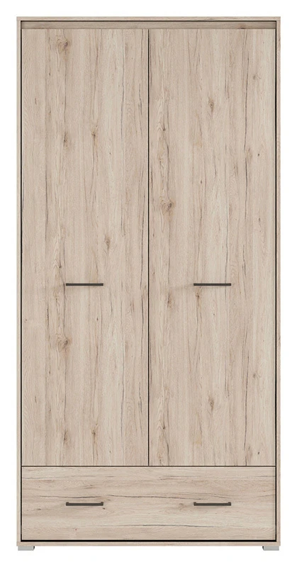 Erdvi 2 durų spinta su vienu stalčiumi.