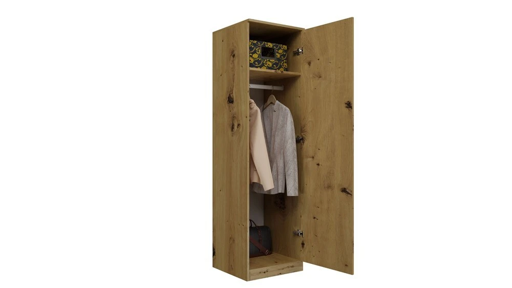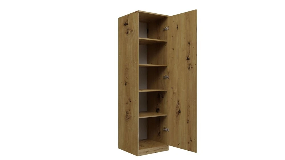 Aprašymas buvo automatiškai išverstas, gali pasitaikyti klaidų.MEDŽIAGA: Korpusas ir fasadai – laminuota medžio drožlių plokštė, 16 mm storio.Kraštai - padengti ABS plastiku (pasižymi dideliu mechaniniu ir cheminiu atsparumu) MATMENYS: Gylis: 50 cmPlotis: 50 cmAukštis: 180 cm IŠSAMIEJI MATMENYS: Priekinės durys: Plotis: 49,5 cmAukštis: 172 cm Cokolis: Aukštis: 6 cm Viršutinė lentyna: - Gylis: 48 cmPlotis: 46,5 cm Kitos lentynos: Gylis: 46,5 cmPlotis: 46,5 cmAukštis tarp lentynų: 33 cm Naudojant TIP-ON , dureles be rankenų galima lengvai atidaryti jas lengvai paspaudus. Durys pasisuka į vartotojui patogią padėtį tolimesniam varstymui. Norėdami juos uždaryti, tiesiog šiek tiek paspauskite priekinę dalį. Naudojimas: Baldo paviršių reikia nuvalyti minkšta šluoste. Venkite naudoti stiprias chemines medžiagas. Pakuotėje: Surinkimo instrukcijos su visais reikalingais surinkimo priedais.