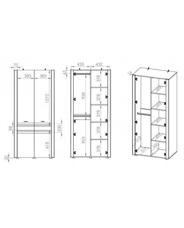 | Medžiaga | Laminuotos baldų plokštės, MDF |